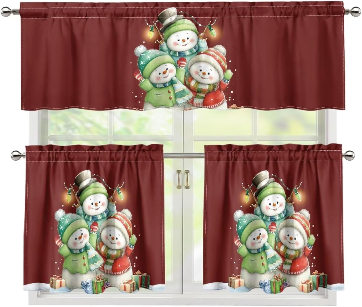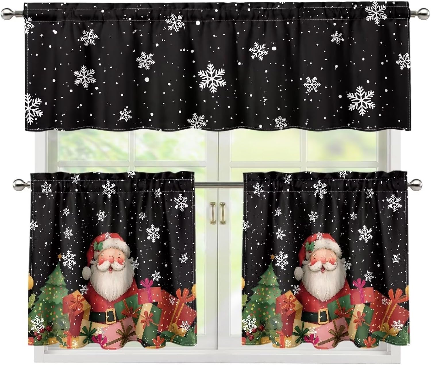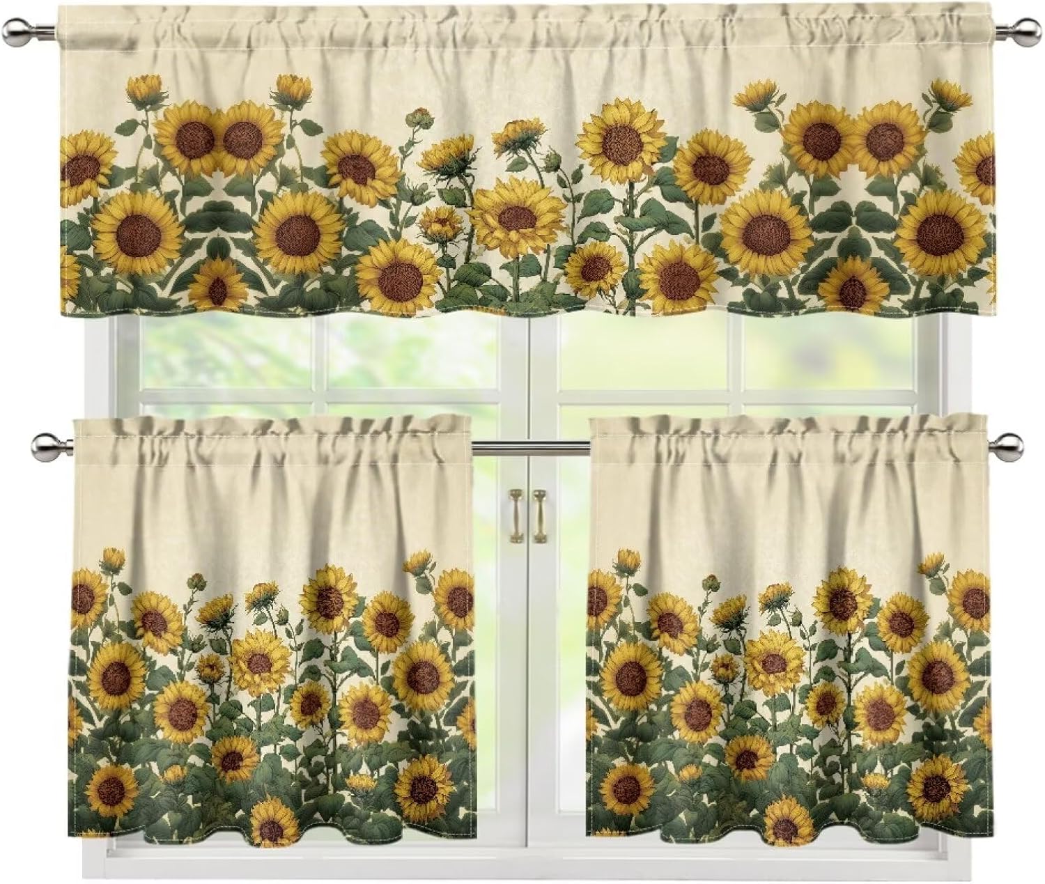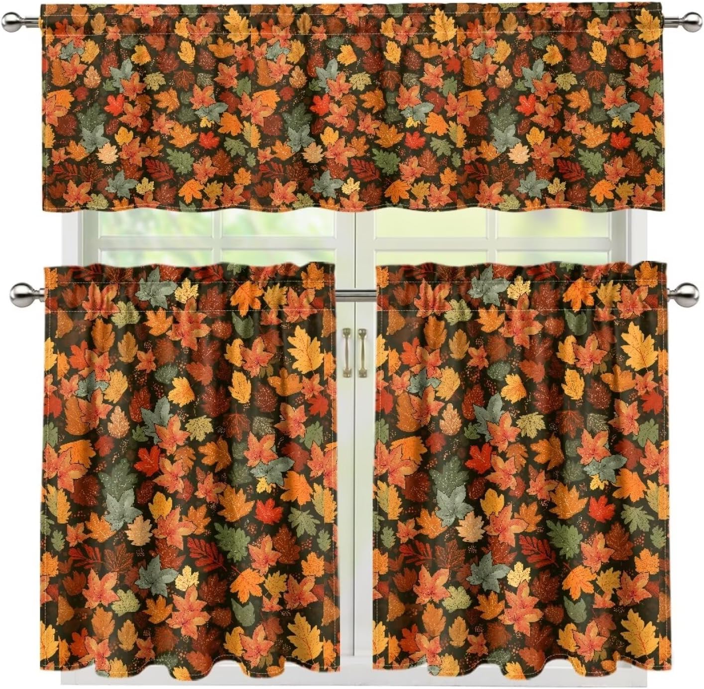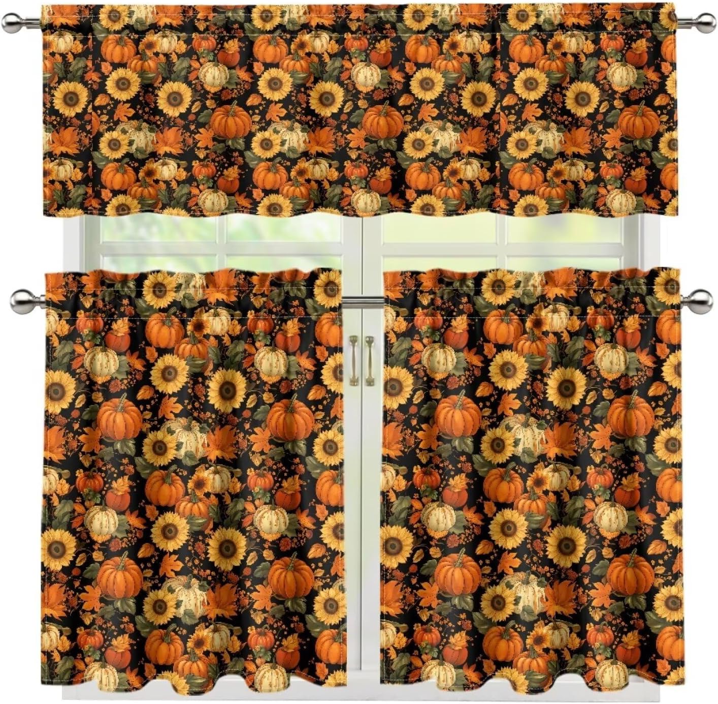 Kitchen Curtain Valance and Tiers Set of 3,Soft Touch Window Curtains for Living Room Farmhouse Bedroom Bethroom Pack: -1 Panel Valance -2 Panel Tier Curtains Per Valance Size:53.9W x 17.7L Inches. Two Tiers Sizes to Choose: Small Size-27.5W x 24L Inches Large Size-27.5W x 35.8L Inches Function: -Polyester. -Energy efficient design reduces energy lost;reduce outside noise;provide privacy protection;protect floor and upholstery from color shading. -Kitchen curtain valance and tiers set are lovely for any season. -Perfect for kitchen,bathroomor,loft,cafe,basement,office room,farmhouse,rustic vountry,laundry room,nursery and more -Using the most advanced digital printing technology,with persistent bold colors and clear images.And there are a lot of fashion personalized cute fashion novel patterns, can make your kitchen or office look new. -Prefect Gift:This is a great gift size for men and women,mom and dad,Valentine's Day,Mother's Day,Father's Day and Christmas.Makes a great house warming gift. Warm Tip: -Due to manual measurement, there may be 1-2cm deviation exist. -Actual color may be slight difference between the monitor display picture because of the light brightness. -Please feel free to contact us if you have any questions. You should know that your satisfaction is important to us.