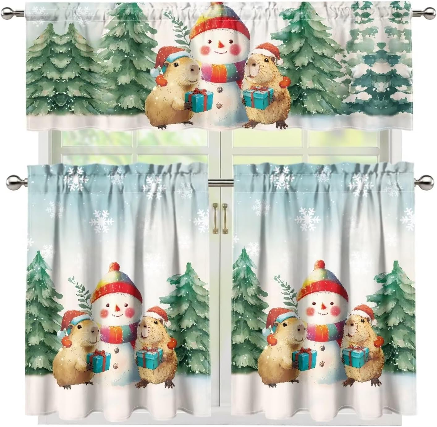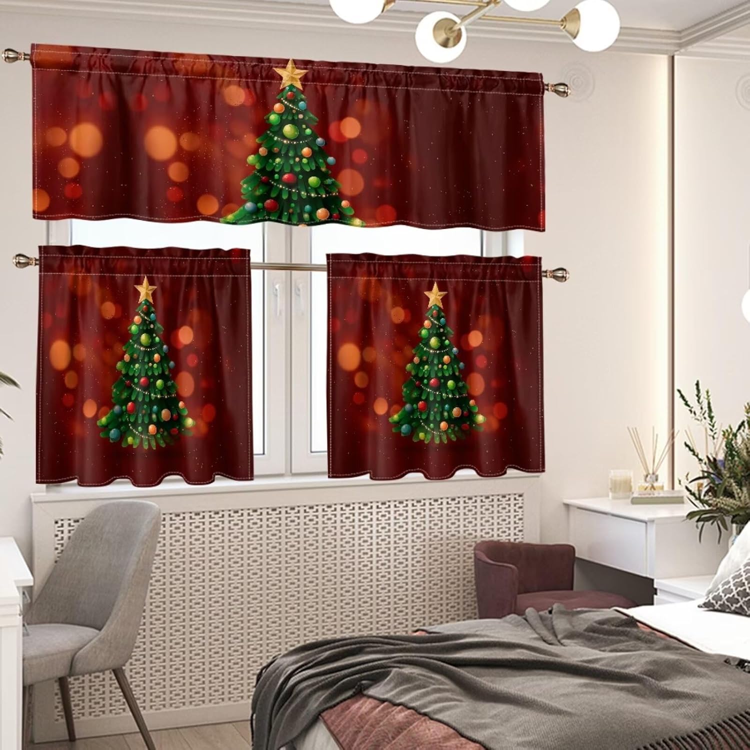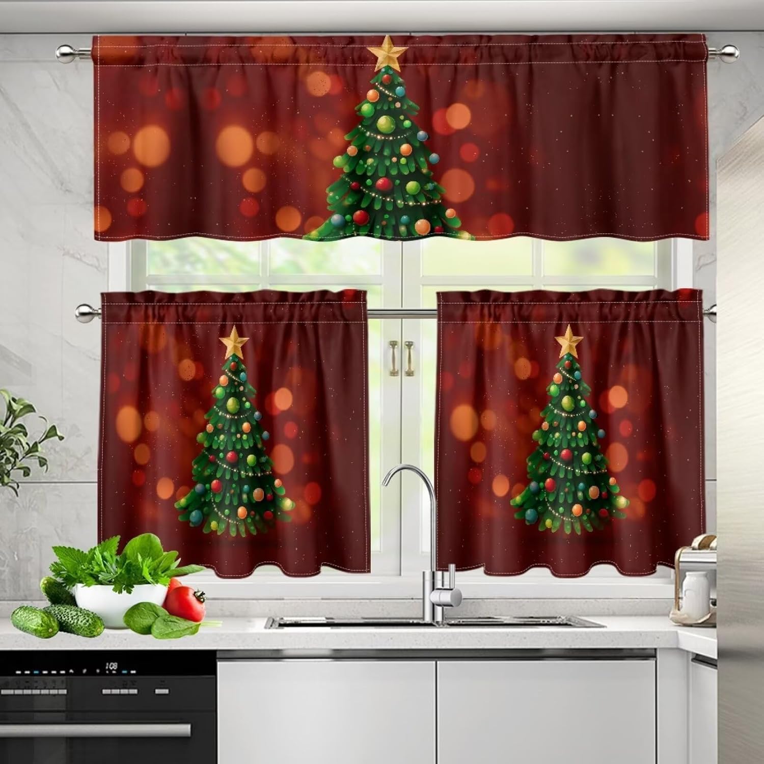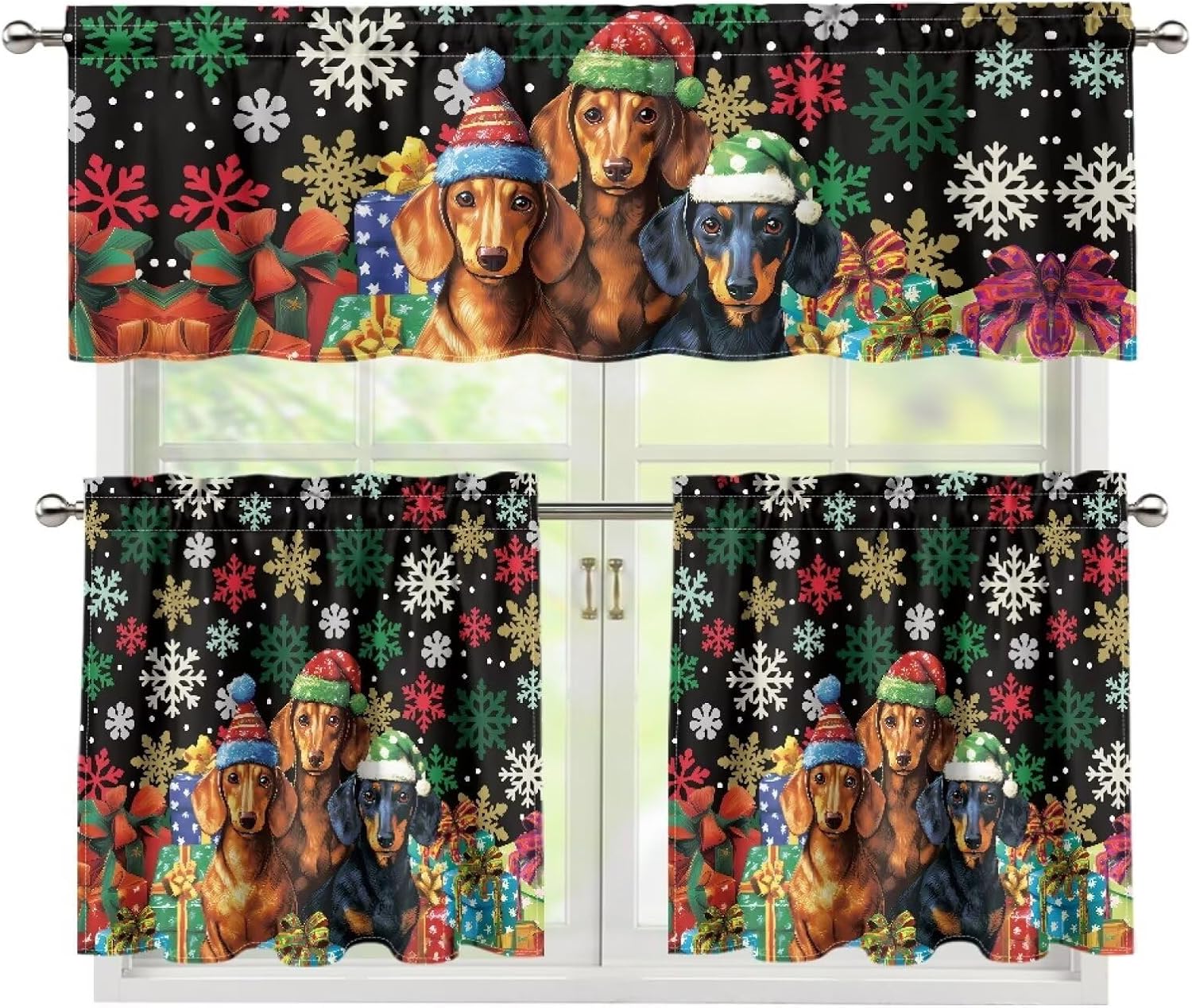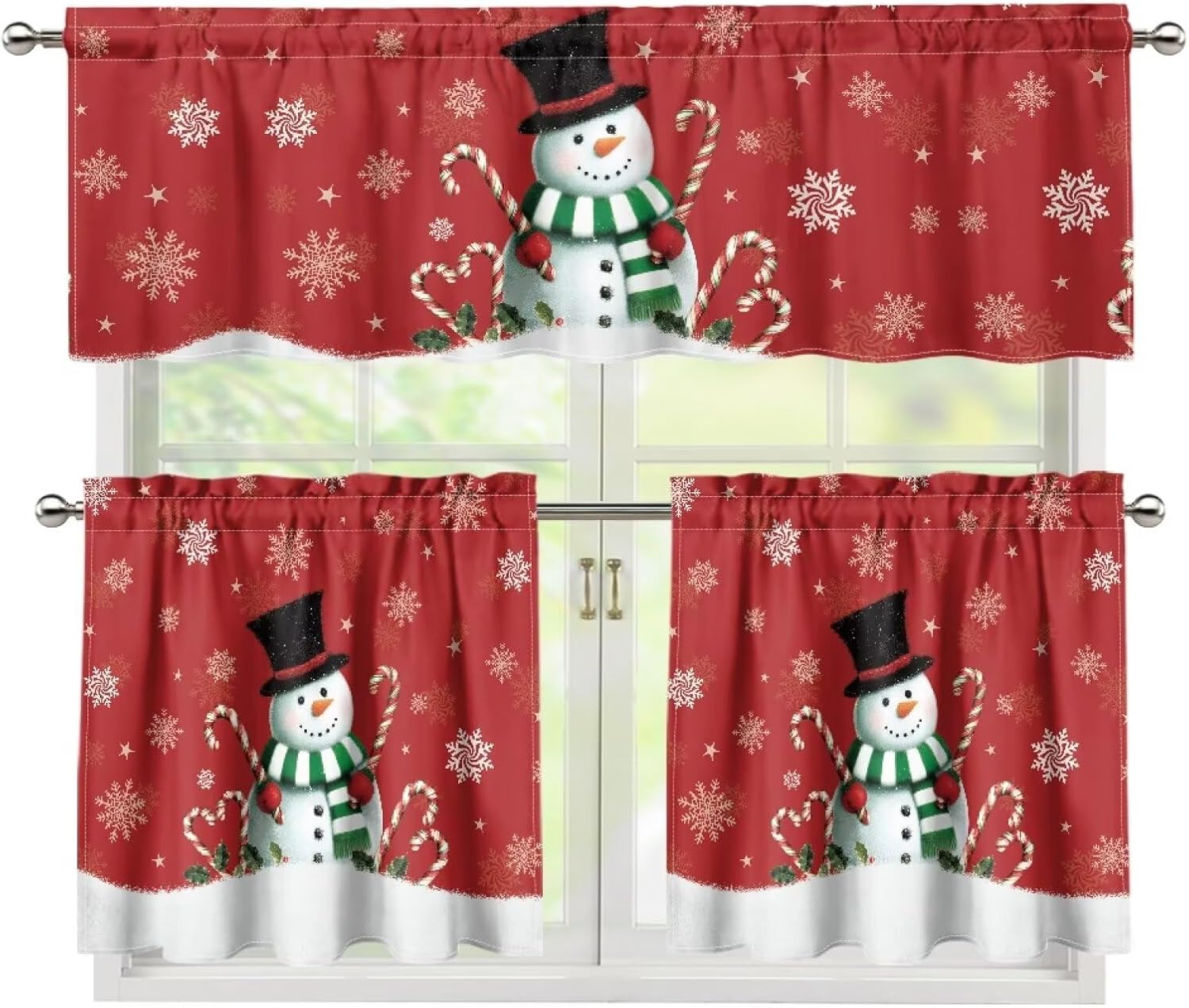 Kitchen Curtain Valance and Tiers Set of 3,Soft Touch Window Curtains for Living Room Farmhouse Bedroom Bethroom Pack: -1 Panel Valance -2 Panel Tier Curtains Per Valance Size:53.9W x 17.7L Inches. Two Tiers Sizes to Choose: Small Size-27.5W x 24L Inches Large Size-27.5W x 35.8L Inches Function: -Polyester. -Energy efficient design reduces energy lost;reduce outside noise;provide privacy protection;protect floor and upholstery from color shading. -Kitchen curtain valance and tiers set are lovely for any season. -Perfect for kitchen,bathroomor,loft,cafe,basement,office room,farmhouse,rustic vountry,laundry room,nursery and more -Using the most advanced digital printing technology,with persistent bold colors and clear images.And there are a lot of fashion personalized cute fashion novel patterns, can make your kitchen or office look new. -Prefect Gift:This is a great gift size for men and women,mom and dad,Valentine's Day,Mother's Day,Father's Day and Christmas.Makes a great house warming gift. Warm Tip: -Due to manual measurement, there may be 1-2cm deviation exist. -Actual color may be slight difference between the monitor display picture because of the light brightness. -Please feel free to contact us if you have any questions. You should know that your satisfaction is important to us.