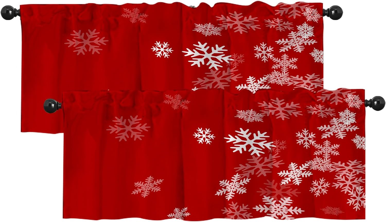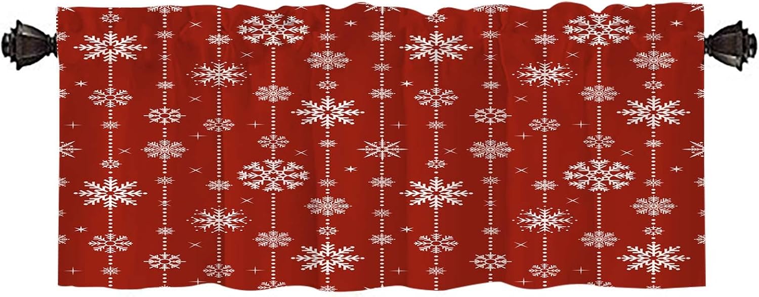 Product Size -- 52 wide x 18 high size christmas valance is designed for most scene windows. Suitable for 2 inch curtain rod.Product Material -- The christmas valance curtains is made of polyester fiber, the pattern is more realistic and the texture is more delicate. Long service life, durable and not easy to fade.Product Features -- With bright colors, clear images and unique stitching design, it can enhance the quality of your home. It is very suitable for illuminating the windows of any bedroom, kitchen, living room, dining room, laundry room.Package Quantity -- Our christmas valances for windows have two options of single and double. For convenience if you want to buy more than one, we have 2 packs. Washing Method -- We can wash by hand or machine. Machine washing in cold water. After washing, dry at low temperature or dry in a cool place.
