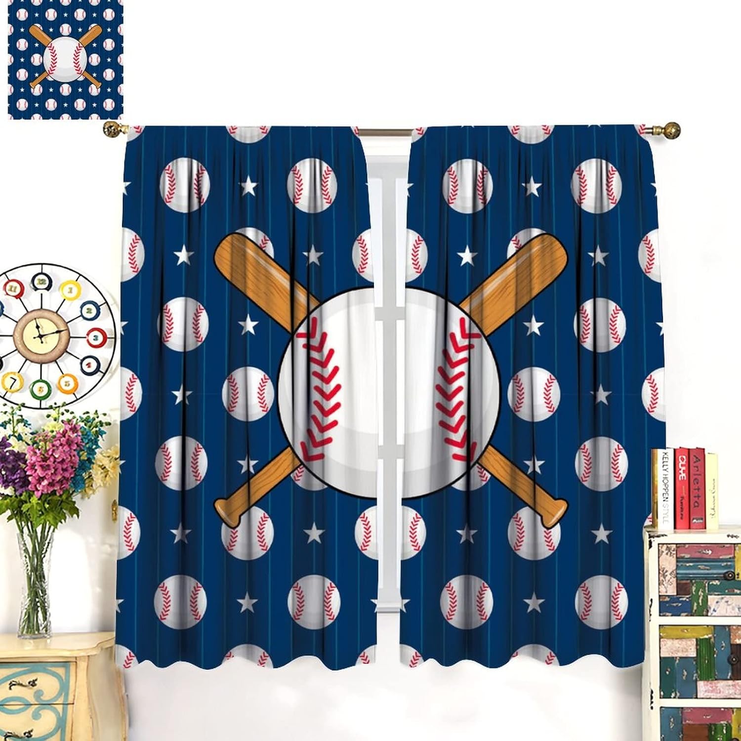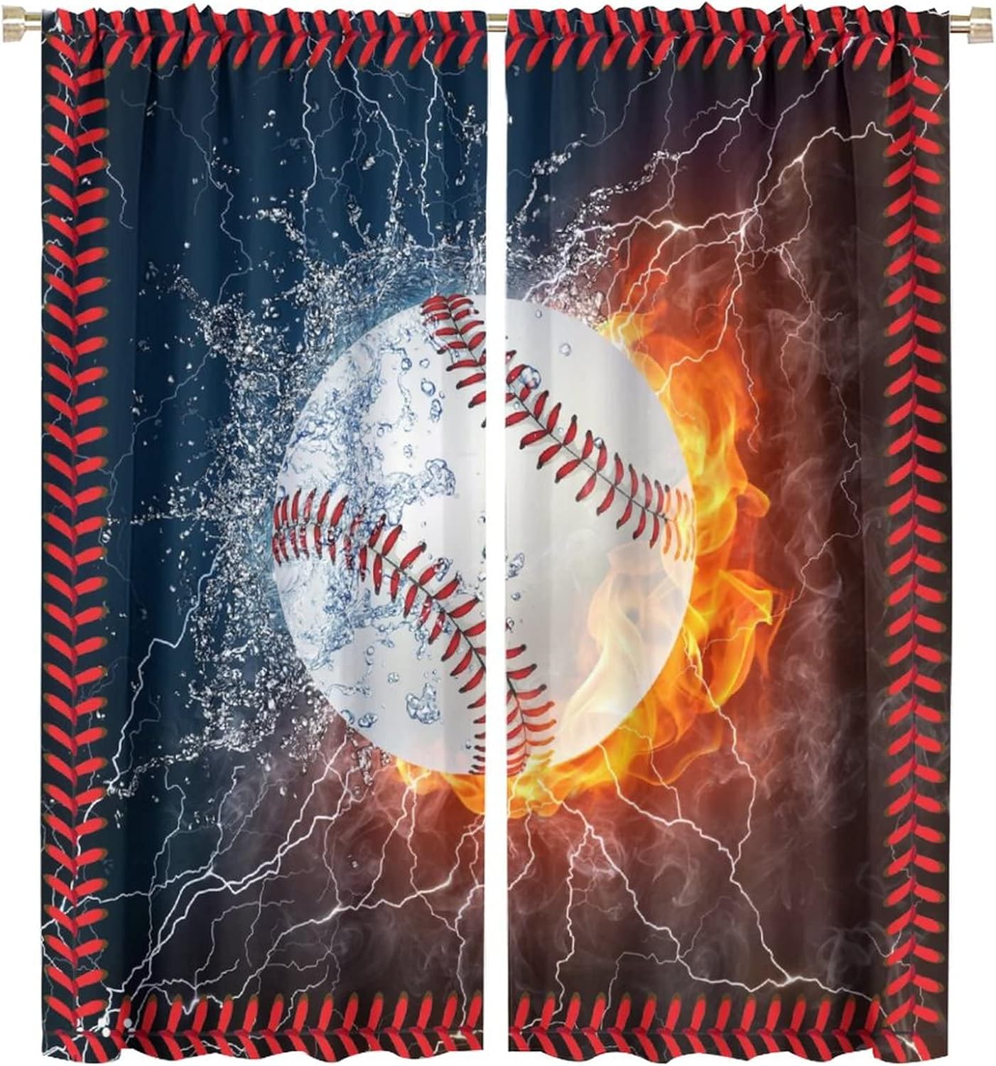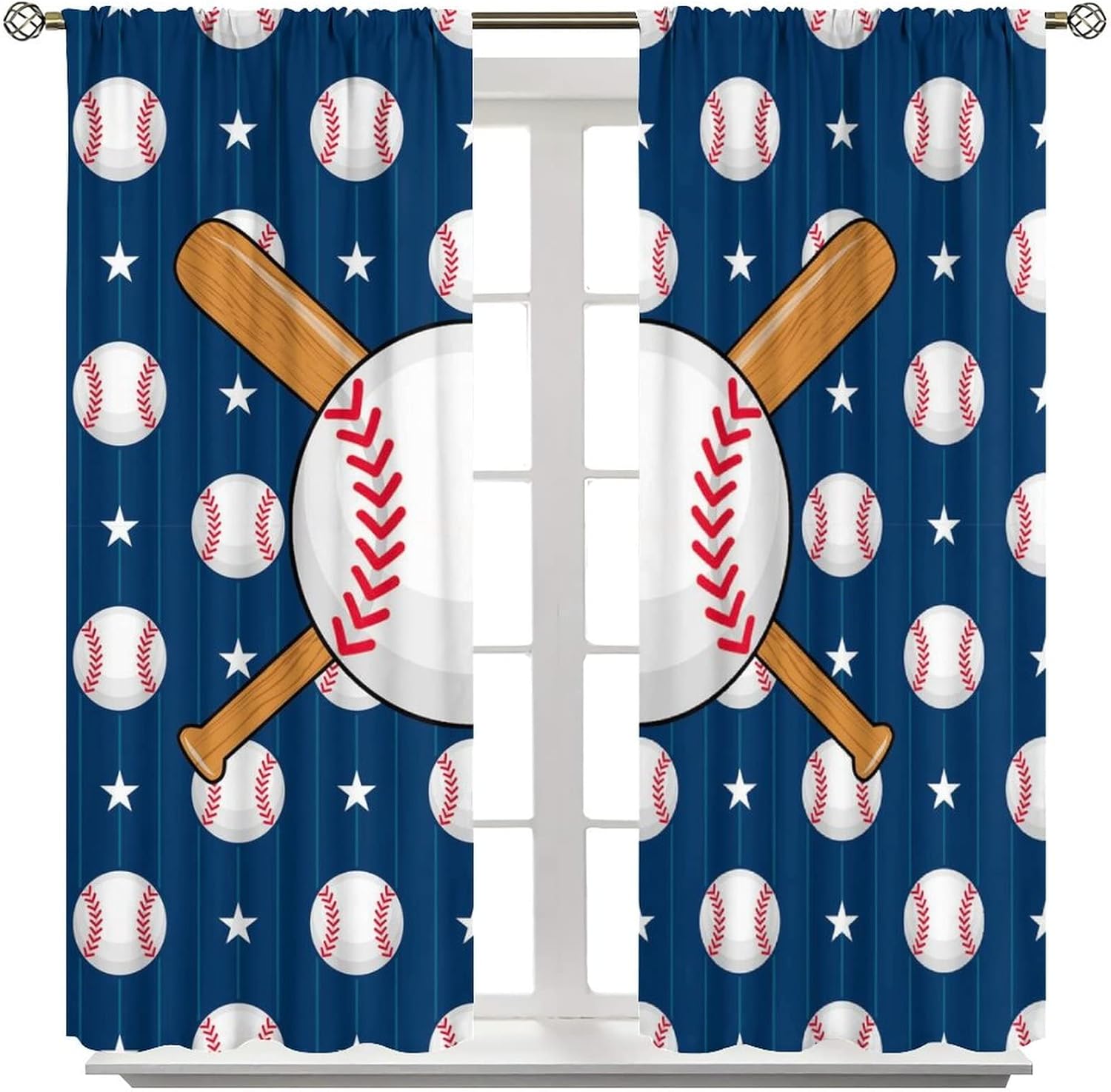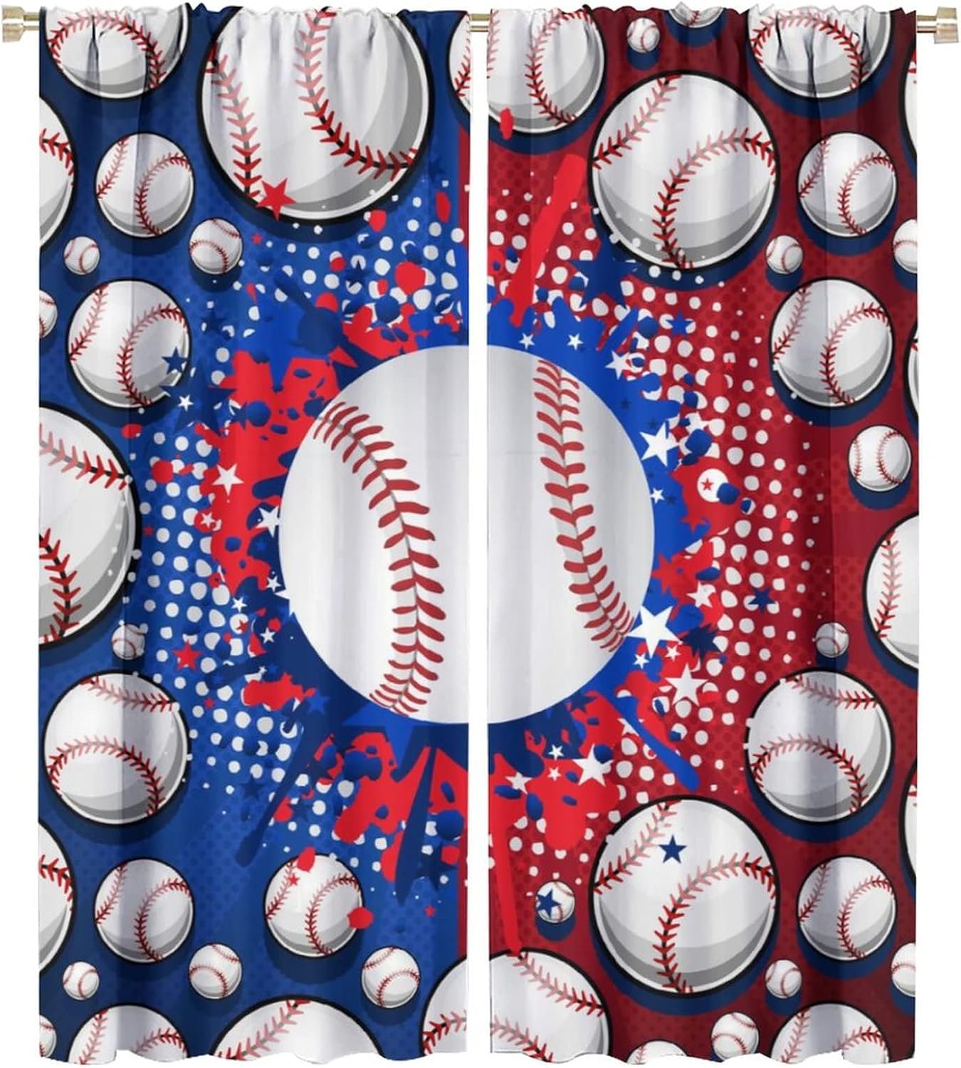 This Funny Baseball Curtains can block out 85%-99% sunlight and UV ray ( Darker colors work better), perfect for late sleepers and afternoon naps. Our energy saving curtains insulate against summer heat and winter chill to balance your room temperature, reduce outside noise .This Funny Baseball Curtains liven up your indoor or outdoor spaces with a sense of airiness and beauty.These Funny Baseball Curtains are suitable for the bedroom, living room, dining room, infant room, kids room, office or other public place.Material:Polyester high quality fabric curtains, warm and interesting, beautifully designed.Kindly Remind:- Don't use sharp things scratching curtains.- For proper fullness panels should slightly larger than the window size the width of your window.- 24 Hours customer support.- As different computers display colors differently, the color of the actual item may vary slightly from the above images.