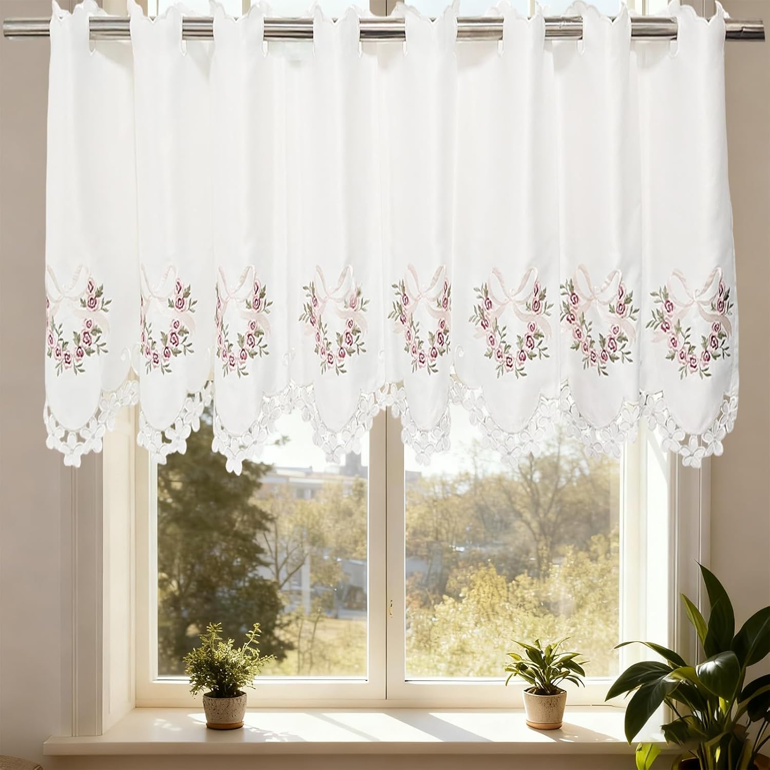 Package included 1 panel curtain. Cafe curtain is necesssary items for your room. it can bring you fashion and romantic style. they are suitable for contemporary, traditional,pastoral, victorian home styles. this items decorate your windows, which are beautiful views without having them draw all the attention away from the rest of the room. Abreeze cafe curtain has exquisite workmanship, fine workmanship, elegant snowflake embroidery, it's your best choice. If you love it? Please Take it home!!! Notes: 1. Please kindly allow 2-3cm discrepancy! 2. Please understand the differences caused by lighting effects and monitor's brightness/contrast settings etc.