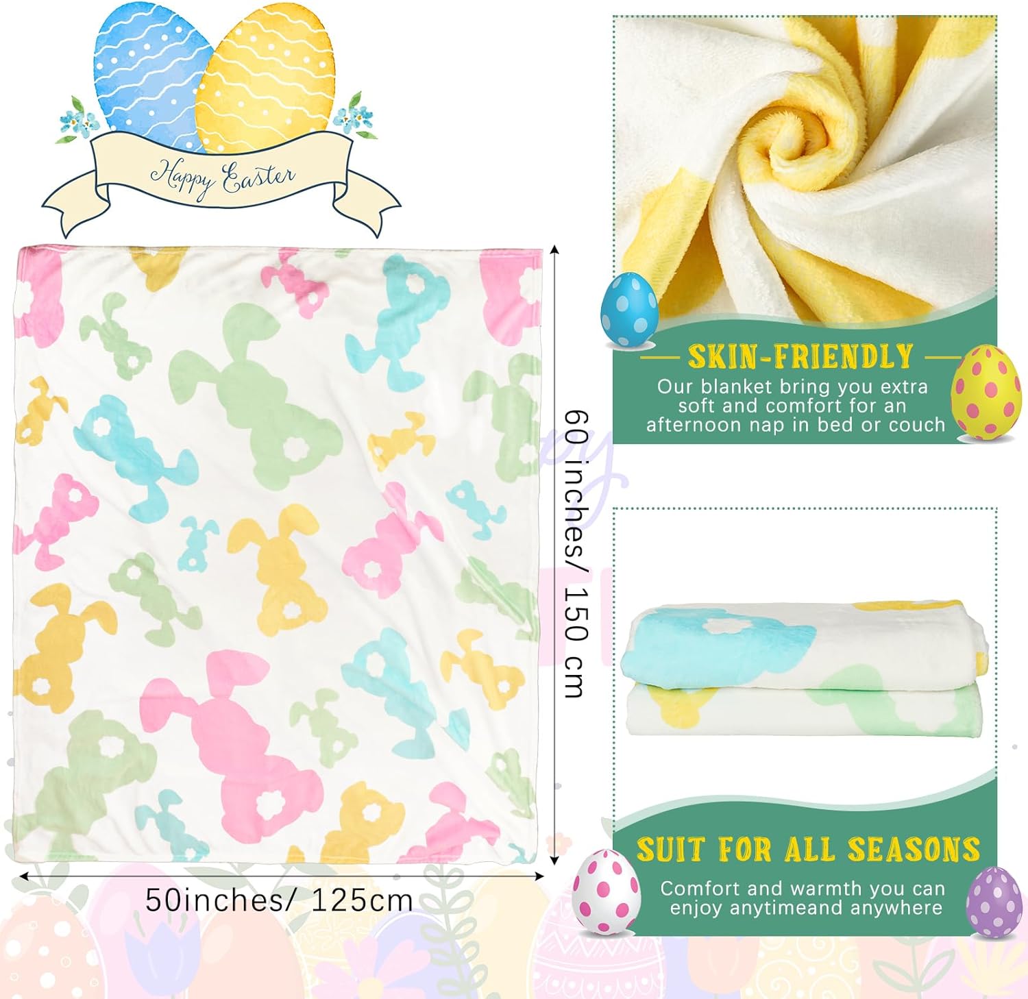 Features: The colorful bunnys pattern on this Easter soft blanket adds a touch of Easter charm to your home decor. It creates a festive atmosphere that will surely bring joy and warmth to your family gatherings, parties, or any Easter themed events. Looking for a thoughtful and practical gift for your loved ones. The Easter throw blanket is an excellent choice. Its nice quality, appealing design, and functional attributes make it an ideal present for family, friends, or colleagues who appreciate comfort and style during the holiday season. Share the warmth and joy of Easter with this beautiful and meaningful gift. Specifications: Material: polyester Color: as the pictures shown Size: about 60 x 50 inches/ 150 x 130 cm Package includes: 1 x Easter blanket Notes: Manual measurement, please allow slight errors on size. The color may exist a slight difference due to different screen displays.