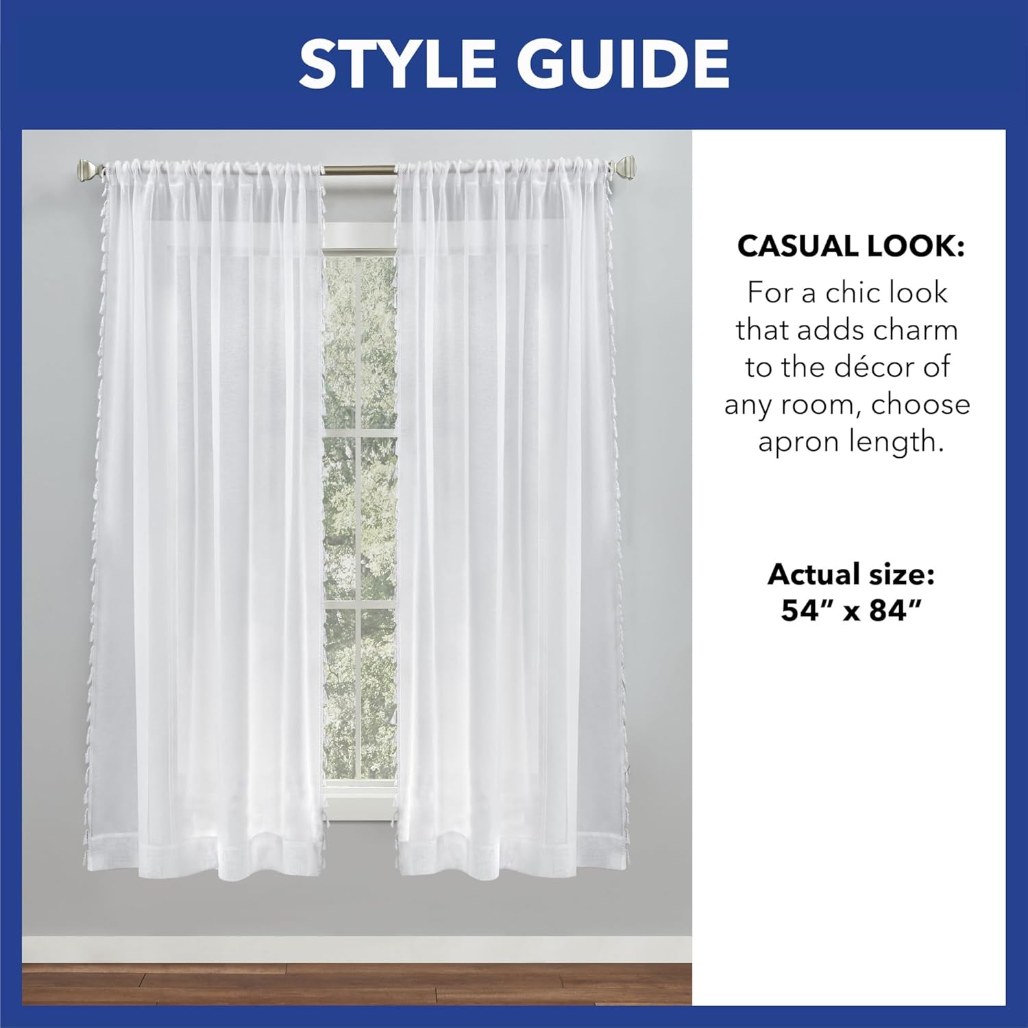 Add a stylish touch to your decor with the Mila window curtain panels by SoHome. Constructed with an elegant, linen like fabric, these sheer white curtains feature a tassel applique border that adds a chic touch. The lightweight, airy sheers allow soft light in while keeping heavy sun glares out. These rod pocket curtains can be hung on your favorite curtain rod or using clips (not included). They're perfect for any living room, family room, dining room, office, kitchen, or as bedroom curtains.
