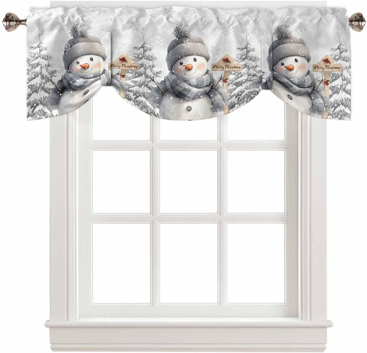 Christmas Cute Santa Claus Red Snowflake Light Filtering Window Valance for Kitchen Bedroom Living Room FEATURES: 1. MULTIPLE SIZE: 42"W x 12"L 42"W x 18"L 54"W x 18"L 60"W x 18"L Please measure the window size before confirming the order, it is recommended to buy a larger size for adjustment 2. EASY TO INSTALL: The size of rod pocket for valance is 3 inches, fitting most straight rods on the market. And it is easy to install and remove so you just need to simply hang window valances onto rods less than 1.5 inches in diameter 3. 2 WAYS OF HANGING: The two shapes of the curtain can be switched freely, including tie up valance and straight valance, meeting your needs to decoration and illumination 4. LIGHT FILTERING AND PRIVACY PROTECTION: Our valance is able to filter out unwanted sunlight, keeping your room breathable and ventilated. Meanwhile, it can also protect your privacy and prevent your furniture and floor from blinding sunlight 5. CHRISTMAS THEMED DECORATION: These short topper valances are printed with a red funny Santa Claus and pink snowflake patterns, which can bring a strong Christmas festive atmosphere to you and your families. It can decorate many styles of rooms, such as kitchen, bathroom, laundry, bedroom, living room and so on. And this kitchen valance for windows is an ideal holiday present for family and friends CARE INSTRUCTIONS: Our kitchen valance can be machine washable in cold water. In order to extend its durability, please do not bleach and do tumble dry with low heat
