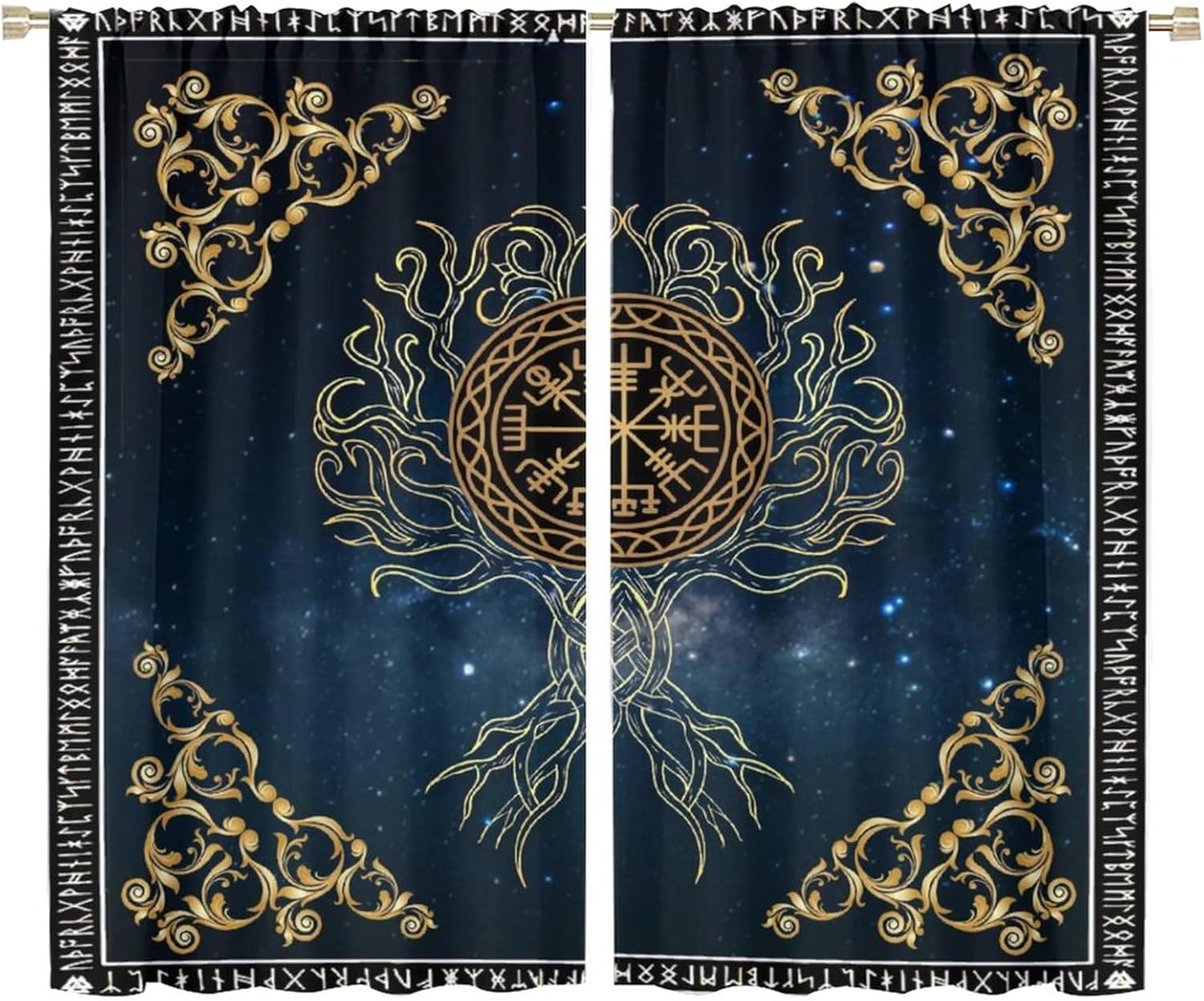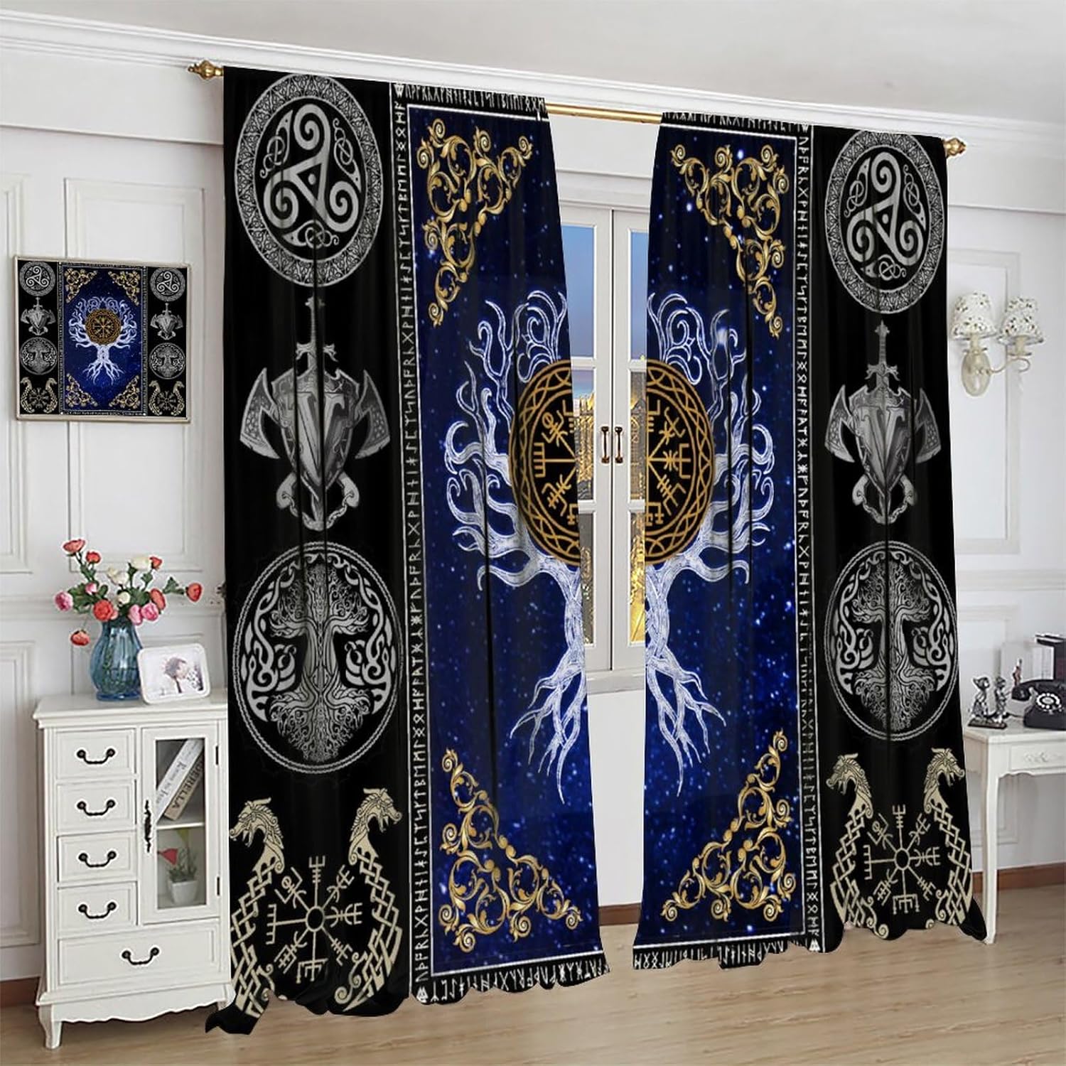 Welcome to our store. Total size: 45" L × 42" W (114cm × 107cm),Includes two pieces,each of which measures:45" length × 21" width (114cm × 53.5cm). Total size: 54" L × 42" W (137cm × 107cm),Includes two pieces,each of which measures:54" length × 21" width (68.5cm × 53.5cm). Total size: 63" L × 42" W (160cm × 107cm),Includes two pieces,each of which measures:63" length × 21" width (160cm × 53.5cm). Total size: 63" L × 55" W (160cm × 140cm),Includes two pieces,each of which measures:63" length × 27.5" width (160cm × 70cm). Total size: 63" L × 63" W (160cm × 160cm),Includes two pieces,each of which measures:63" length × 31.5" width (160cm × 80cm). Total size: 72" L × 63" W (183cm × 160cm),Includes two pieces,each of which measures:72" length × 31.5" width (183cm × 80cm). Total size: 63" L × 72" W (160cm × 183cm),Includes two pieces,each of which measures:63" length × 36" width (160cm × 91.5cm). Total size: 84" L × 84" W (214cm × 214cm),Includes two pieces,each of which measures:84" length × 42" width (214cm × 107cm). People always prefer using some decor to highlight the visual aesthetic. The brebasf Abstract Ancient Vikings curtains is the beautiful choice for bedroom.Good and Healthy materialOur Retro Norse Mythology Mystical Symbol Tree of Life curtain is made from a safe and durable polyester fabric ,a healthy choice for any living room.★ 95% polyester fabric.★ Easy to install. Easy to hang.★ Various style theme design,so that the bathroom is full of color and fun.Note1. Please allow a little bit of size deviation due to manual measurement.2. Due to differences in computer monitors,please allow a little bit of color difference between the picture and the object.