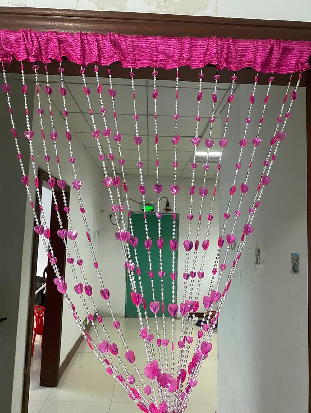 18 rows 100% Acrylic heart shape beaded. Approx. 100cm by 195cm ( 39.3 in by 76.7in ) , can easily cut your required size. A hole on the top for rod to hang it. Max suit approx. 8cm ( 3in ) diameter rod. Package: 1 pieces curtain. One curtain may be too thin to your expect, we suggest order two or more. Can be used as door curtain or window curtain, décor café, restaurant, bedroom or dining divider curtain , background for mall galss window or wall. Safety instructions: Not suitable for children under 10 years, for use under adult supervision. To prevent possible injury by entanglement, do not let child try to bind its on hands or neck or knees or Chew and Swallow the beaded. Suggest remove or hang this curtain when the child start playing.