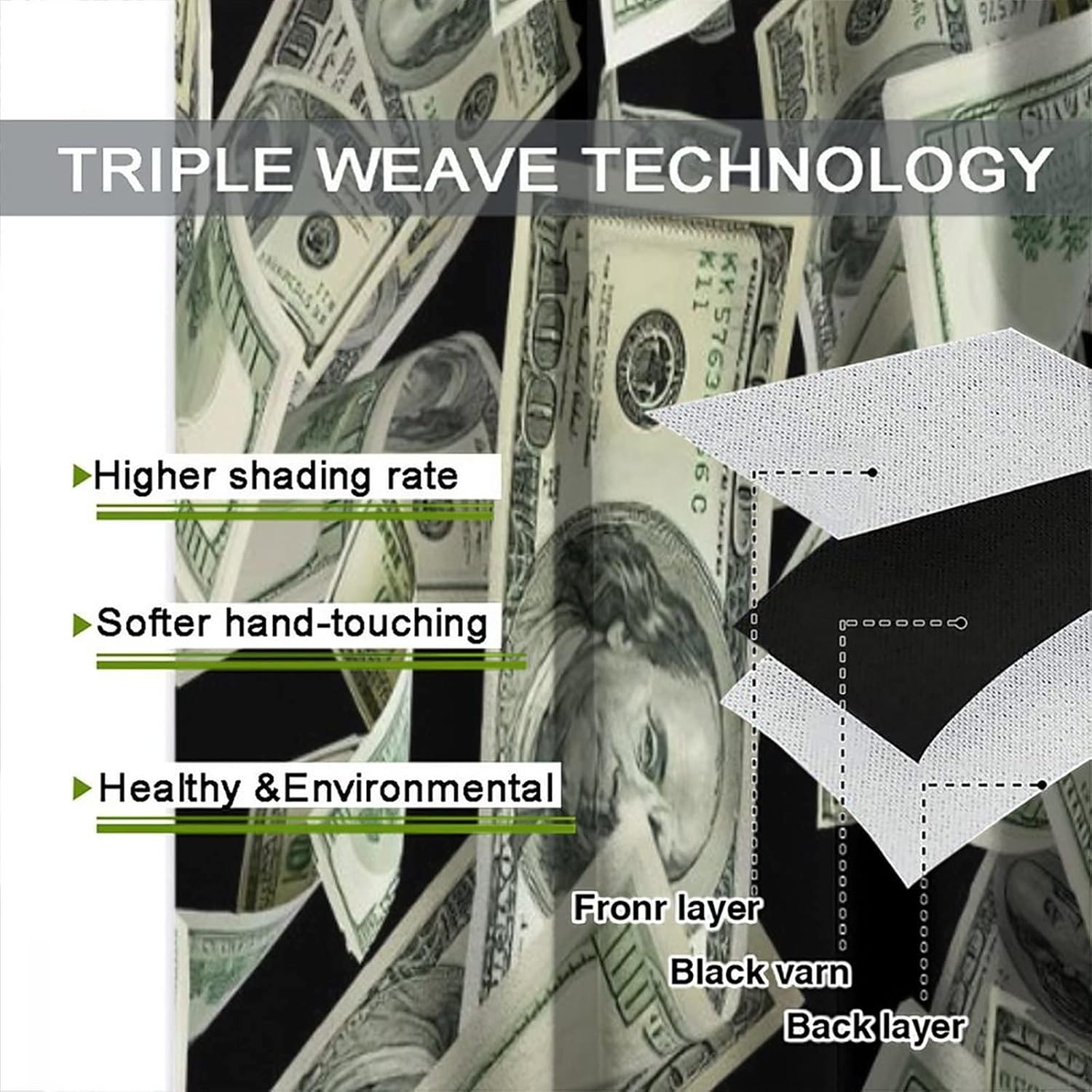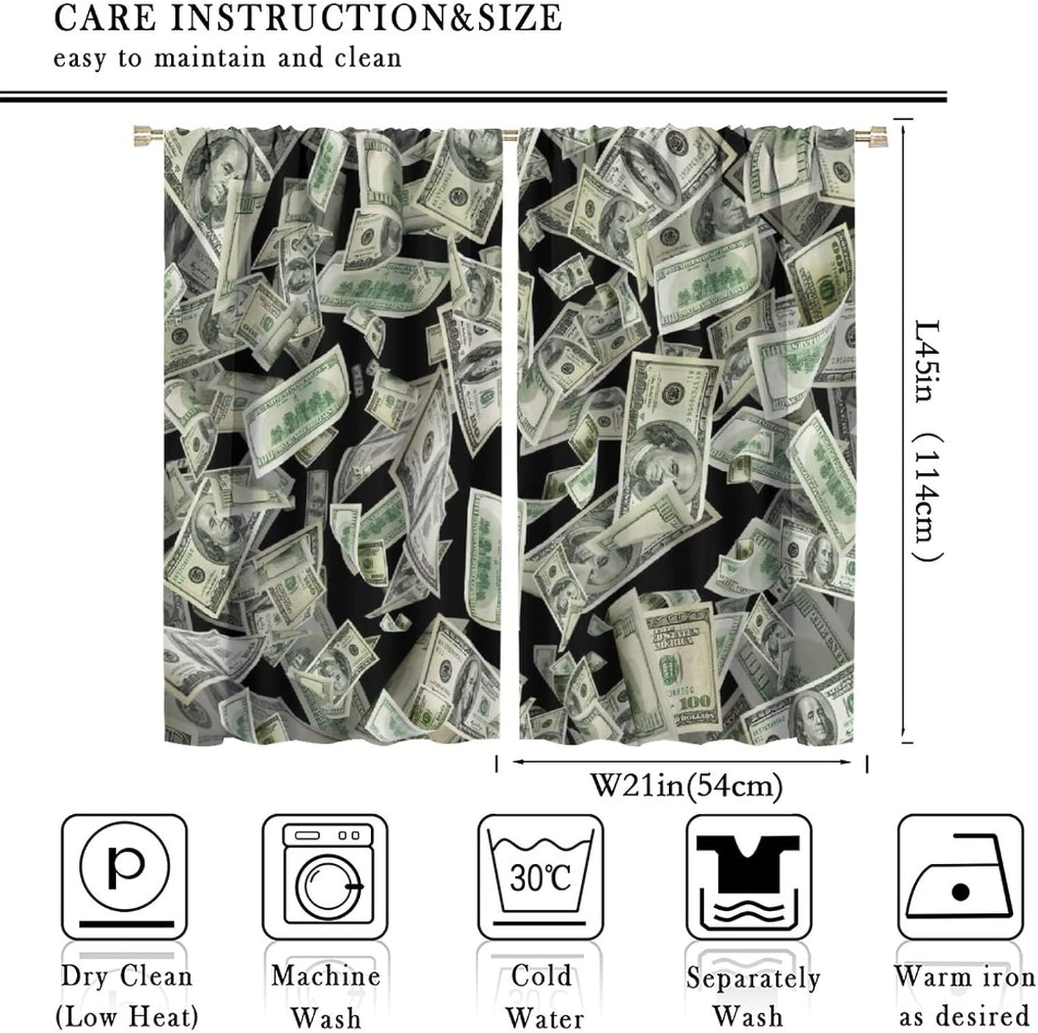 This Funny Money Print Curtains can block out 85%-99% sunlight and UV ray ( Darker colors work better), perfect for late sleepers and afternoon naps. Our energy saving curtains insulate against summer heat and winter chill to balance your room temperature, reduce outside noise .This Funny Money Print Curtains liven up your indoor or outdoor spaces with a sense of airiness and beauty.These Funny Money Print Curtains are suitable for the bedroom, living room, dining room, infant room, kids room, office or other public place.Material:Polyester high quality fabric curtains, warm and interesting, beautifully designed.Kindly Remind:- Don't use sharp things scratching curtains.- For proper fullness panels should slightly larger than the window size the width of your window.- 24 Hours customer support.- As different computers display colors differently, the color of the actual item may vary slightly from the above images.