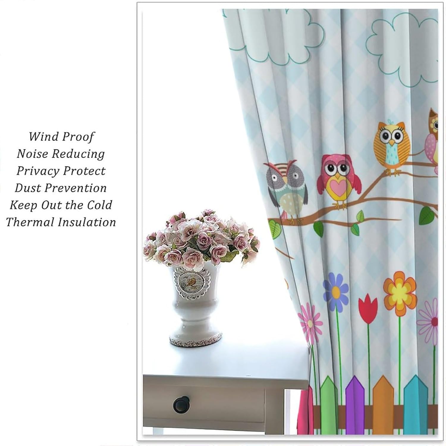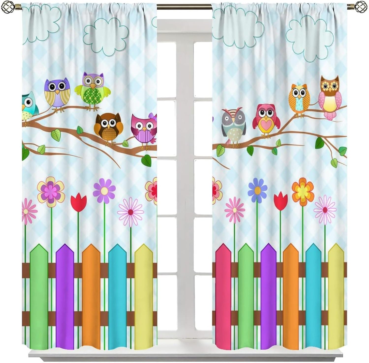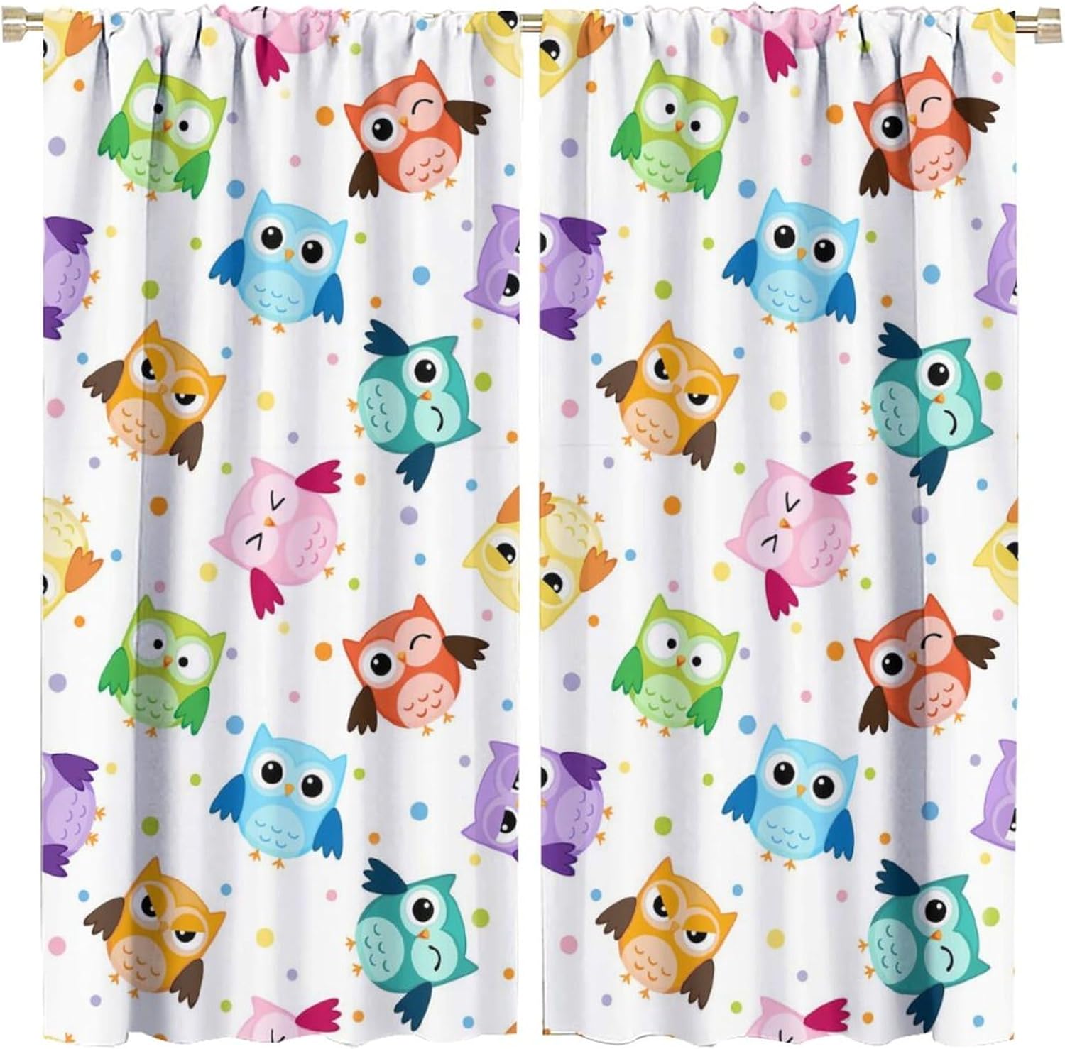 Welcome to our store. Total size: 45" L × 42" W (114cm × 107cm),Includes two pieces,each of which measures:45" length × 21" width (114cm × 53.5cm). Total size: 54" L × 42" W (137cm × 107cm),Includes two pieces,each of which measures:54" length × 21" width (68.5cm × 53.5cm). Total size: 63" L × 42" W (160cm × 107cm),Includes two pieces,each of which measures:63" length × 21" width (160cm × 53.5cm). Total size: 63" L × 55" W (160cm × 140cm),Includes two pieces,each of which measures:63" length × 27.5" width (160cm × 70cm). Total size: 63" L × 63" W (160cm × 160cm),Includes two pieces,each of which measures:63" length × 31.5" width (160cm × 80cm). Total size: 72" L × 63" W (183cm × 160cm),Includes two pieces,each of which measures:72" length × 31.5" width (183cm × 80cm). Total size: 63" L × 72" W (160cm × 183cm),Includes two pieces,each of which measures:63" length × 36" width (160cm × 91.5cm). Total size: 84" L × 84" W (214cm × 214cm),Includes two pieces,each of which measures:84" length × 42" width (214cm × 107cm). People always prefer using some decor to highlight the visual aesthetic. The brebasf Funny Cute Owls curtains is the beautiful choice for bedroom.Good and Healthy materialOur Rainbow Colorful Wooden Boards Cartoon Woodland Flower Owl curtain is made from a safe and durable polyester fabric ,a healthy choice for any living room.★ 95% polyester fabric.★ Easy to install. Easy to hang.★ Various style theme design,so that the bathroom is full of color and fun.Note1. Please allow a little bit of size deviation due to manual measurement.2. Due to differences in computer monitors,please allow a little bit of color difference between the picture and the object.