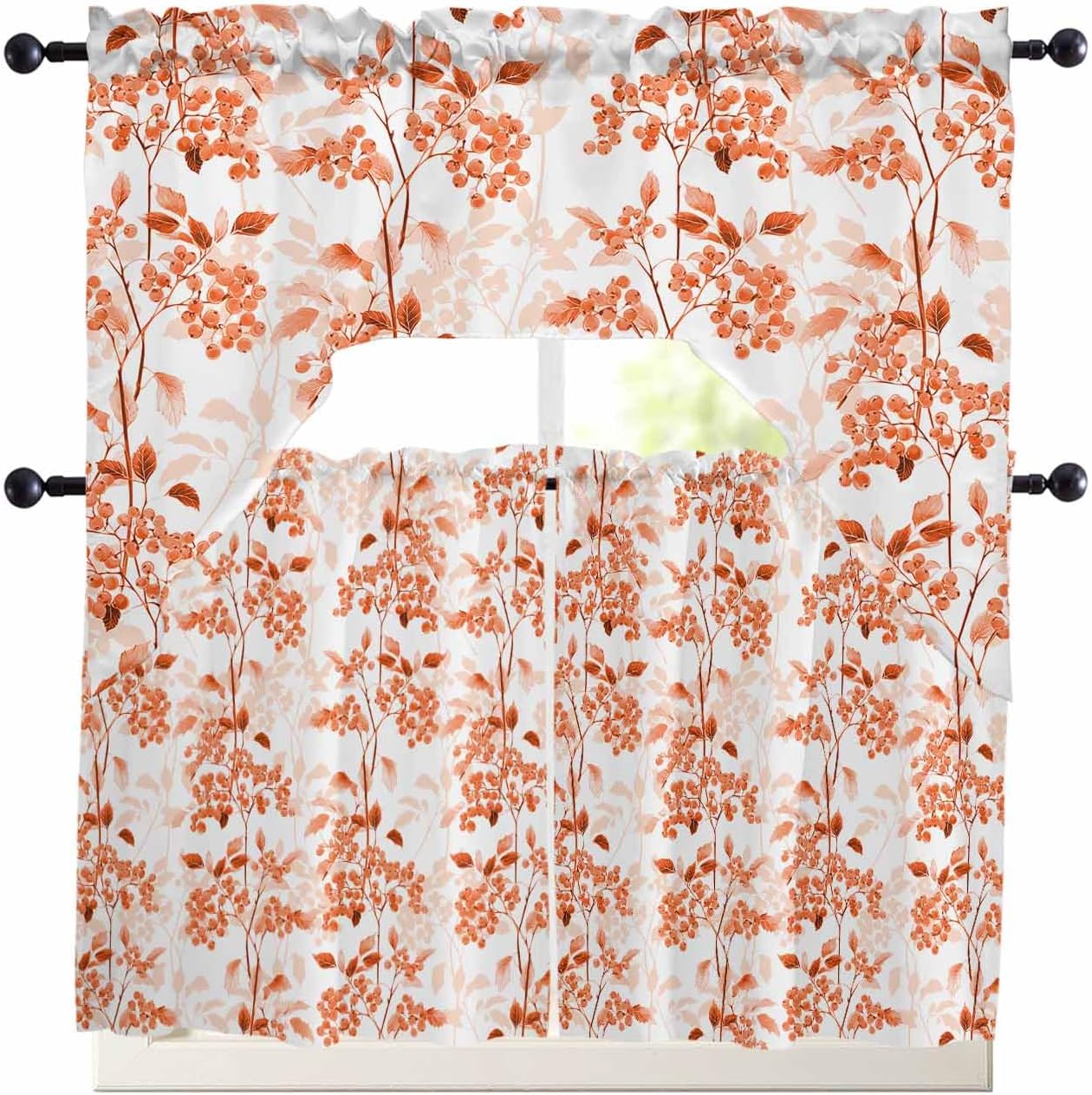 • ✅Reliable Material: The window curtain tier and swag set are made of high-quality polyester. Soft, lightweight and good drape. Kitchen curtain swag and tier set with excellent workmanship, nice edge and exquisite craftsmanship stand out from other swag curtains for bathroom window, durable and long-lasting. High-quality kitchen curtain valance tiers are not easy to tear or deform, and can add beauty and vitality to your home space.