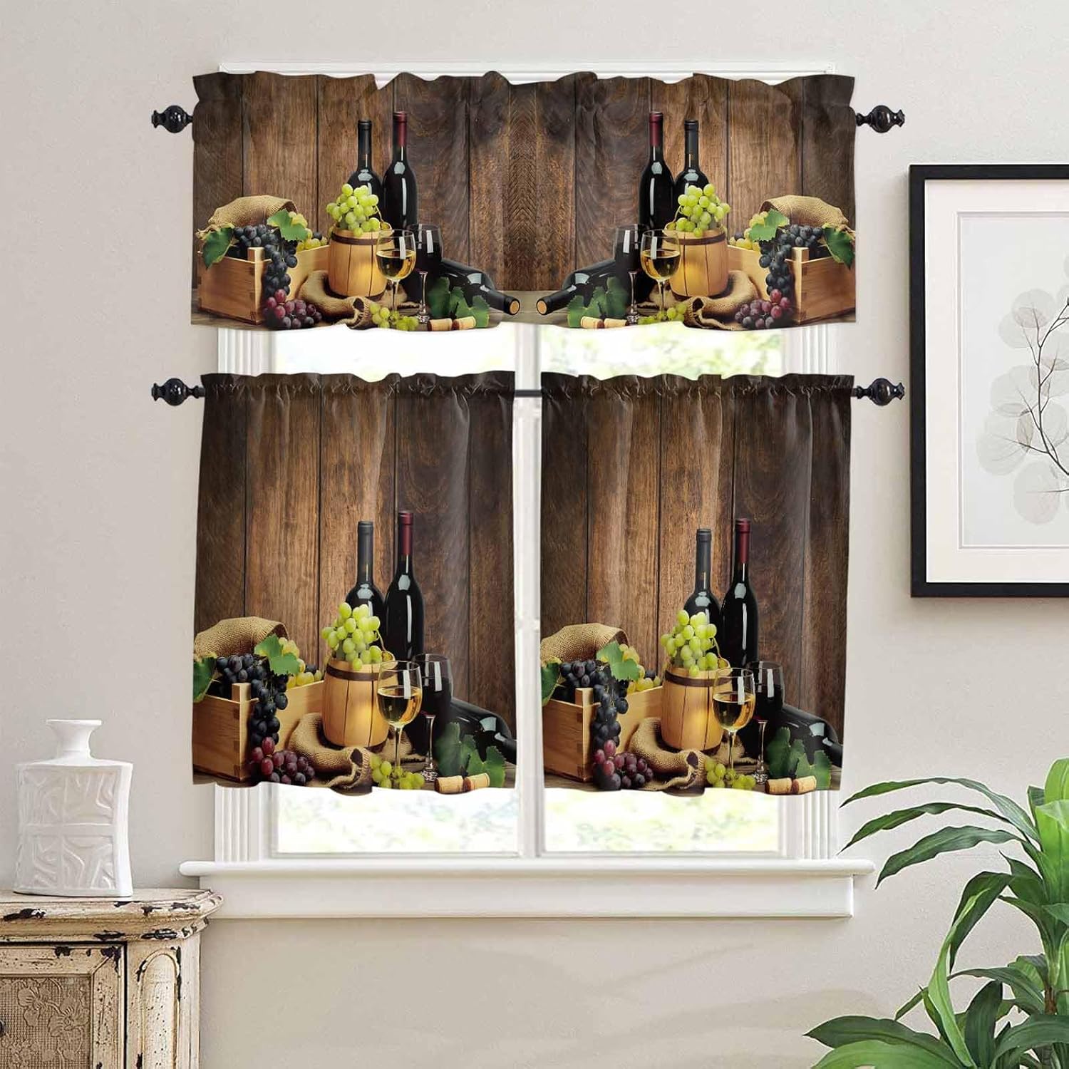 Kitchen Valance and Tiers Curtains Set, Half Short and Small Valance Curtains Package: 1x valance and 2 x tiers curtains Size: Valance: 54 x 18 inch Tiers Curtains: 27.5"x36" Material: Polyester Touched comfortable, high stability, with colorfastness properties. Rod Pocket: 3 inch rod pocket and 1 inch header Easy to hang with a standard or decorative curtain rods up to 1.5 inch diameter. Semi Sheer: Filter unwanted light Protect furniture and provide privacy. Occasion: Any place with small windows kitchen, living room, dining room, kid's room, nursery, home closet/shelf, basement, office, cafe, hotel or other place. Home Decor: Fits well for traditional, vintage RVs, modern, glamour, shabby chic or farmhouse house decor. Care Instructions: Machine or hand washable in cold water; Tumble dry low; Iron if needed; Do not bleach Service: We provide 30 days return service, please rest assured to buy. Any question, please feel free to contact us. We will help you solve it within 24 hours.