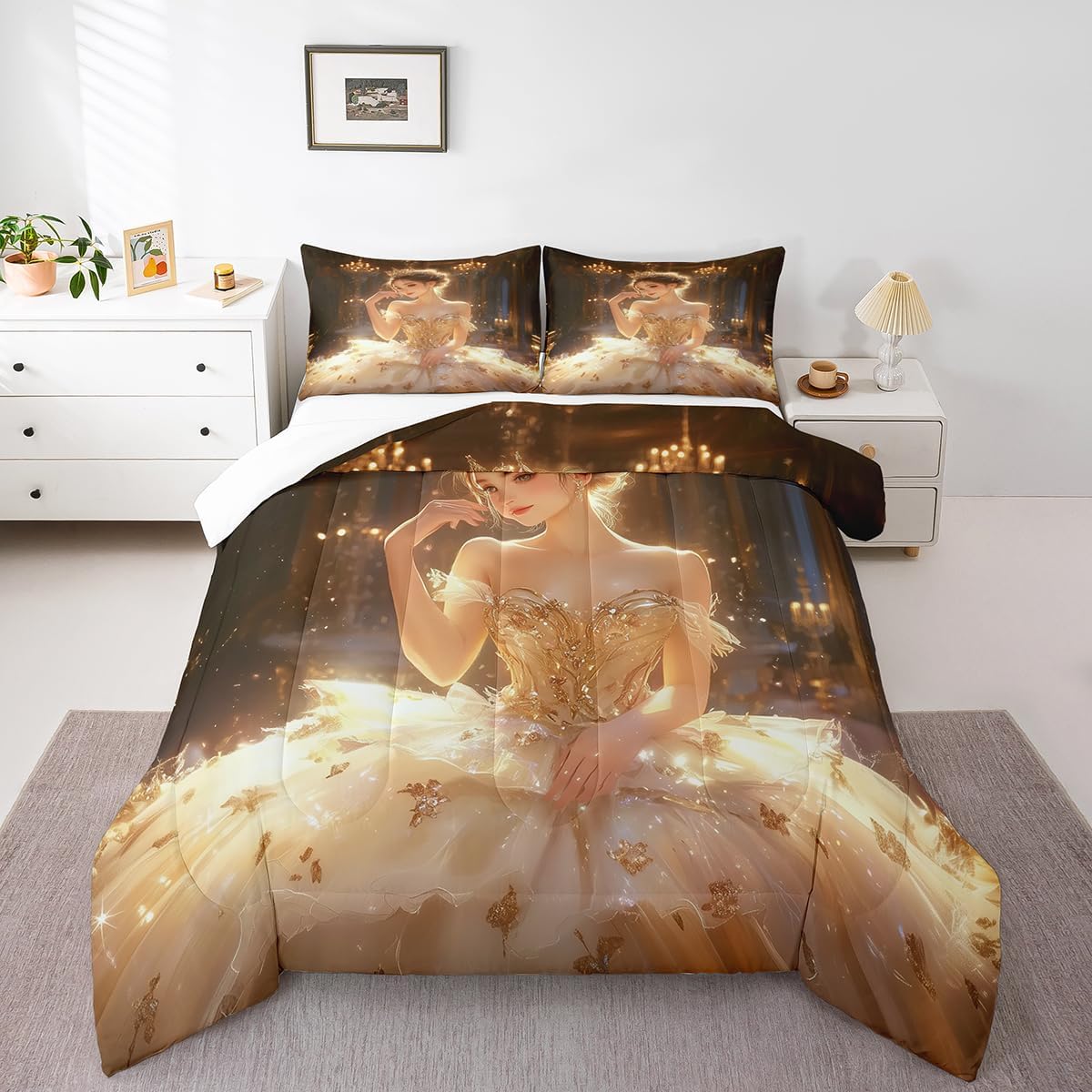 Package Include: Comforter and Pillowcase. Makeover your bedrooms every season with our Comforter sets. Perfect item for your room, girls boys youth room, master bedroom. Size Information: Twin size down comforter 68"W x 90"L and 1 pillow case 30"W x 20"L. 2pcs with 1 Bed Comforter and 1 Pillowcases in A Bag Full size down comforter 79"W x 90"L and 2 pillow cases 30"W x 20"L. 3pcs with 1 Bed Comforter and 2 Pillowcases in A Bag Queen size down comforter 90"W x 90"L and 2 pillow cases 30"W x 20"L. 3pcs with 1 Bed Comforter and 2 Pillowcases in A Bag King size down comforter 104"W x 90"L and 2 pillow cases 36"W x 20"L. 3pcs with 1 Bed Comforter and 2 Pillowcases in A Bag Useful and practical A luxurious product for homes, dorm rooms, hotels, guest rooms. Practical to use for being polyester, feels like cotton which is Super Soft and Breathable. No chemicals used, No dye substance harming the health of you or your family. Unique design: Vivid Colors won't fade thanks to new 3D digital printing methods. These unique designs match well with various color palettes of your rugs, curtains, headboard, furniture, and all other decor accessories. Personalized: As manufacturers of digital printed home textiles, we follow current trends and bring you the latest home fashion. More Decor: Search our store to get more christmas theme, new year theme, autumn fall theme, any holiday theme, modern abstract, farmhouse rustic theme, simple pattern, garden flowers etc. home decoration. Warm Tips: 1. Please allow 1-3cm error due to manual measurement. 2. Actual color may vary from the color on your screen due to monitor color restrictions.