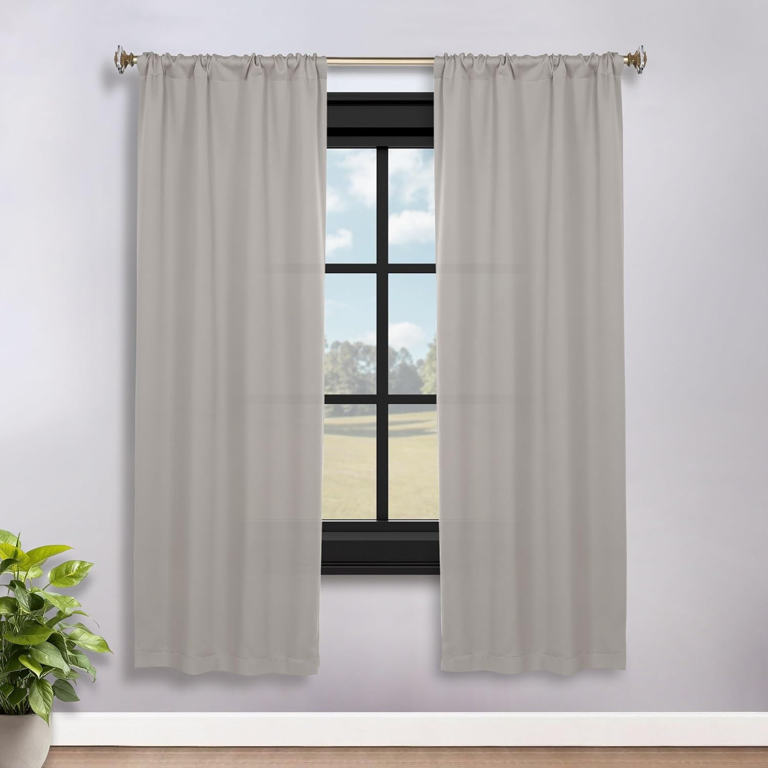Elevate the style of your windows with the Modern Solid Room Darkening Blackout Curtains by Blue Nile Mills. Crafted from 100% polyester with a rod pocket for easy installation, this panel set is durable and modern in design. Our blackout curtains block out 70-80% unwanted sunlight and UV rays, so you can feel cozy in your home. Perfect thermal insulators, each panel in this set reduces room heat and cold loss through your windows to help you save energy and maintain the ideal temperature. These curtain panels feature a solid pattern that is versatile and will effortlessly accent your existing home decor.