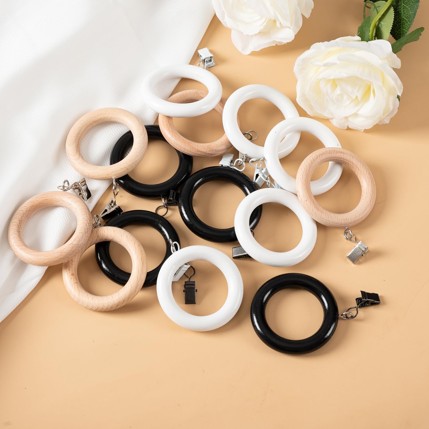 Complete 24-Pack Set with Balanced Engineering:Includes 24 pack wooden rings (1.81-inch inner diameter) and metal clips. Rigorously tested for optimal weight