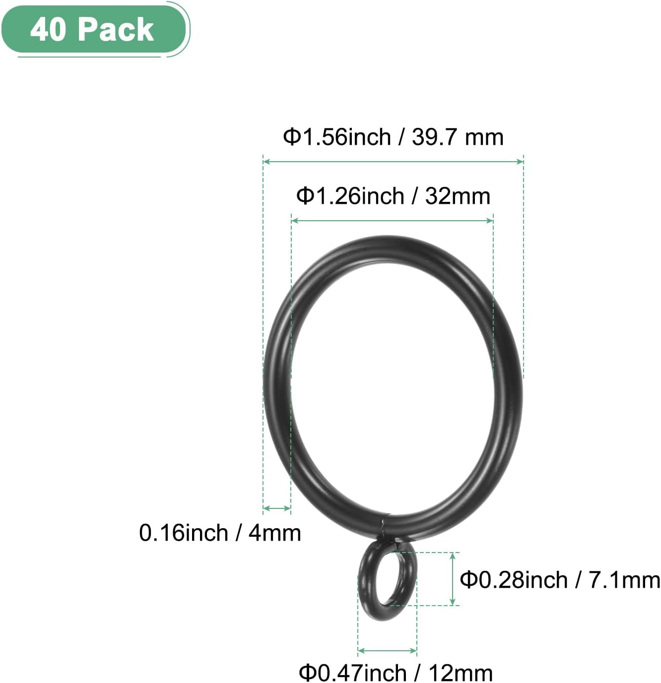 PRODUCT APPLICATIONSThe curtain rings with eyelet is suitable for hanging curtains in living rooms, bedrooms, dining rooms, kitchens, offices, and cafes. You can also add extra hooks to hang other small things to make your room tidy.PRODUCT DETAILS & INCLUDE√ Material: Carbon Steel√ Color: Silver/Black/Gold/Green Bronze/Red Bronze√ Interior Diameter: 32 mm / 1.25 inch√ Outer Diameter: 40 mm / 1.6 inch√ Wire Diameter: 4 mm / 0.16 inch√ Small Ring Size: 12 mm / 0.5 inch (O D), 7.5 mm / 0.3 inch(I D)√ Package Includes: 40 Pcs X Drapery Rings PRODUCT ADVANTAGES1. The rings for curtain rods are made of high-density metal material, and the surface is durable electroplated, which has long-lasting anti-rust performance. The appearance is low-key and elegant, enhancing the overall beauty and texture of the room.2. These pinch pleat curtain rings are first passed through the curtain rod, and then the curtain hooks or clips are hung on the small rings, which can slide freely on the rod to easily open or close the curtains.ATTENTIONPlease confirm the size of the pinch pleat curtain rings before ordering. All rods are not the same size, please measure the actual size of the rod to ensure it will fit.