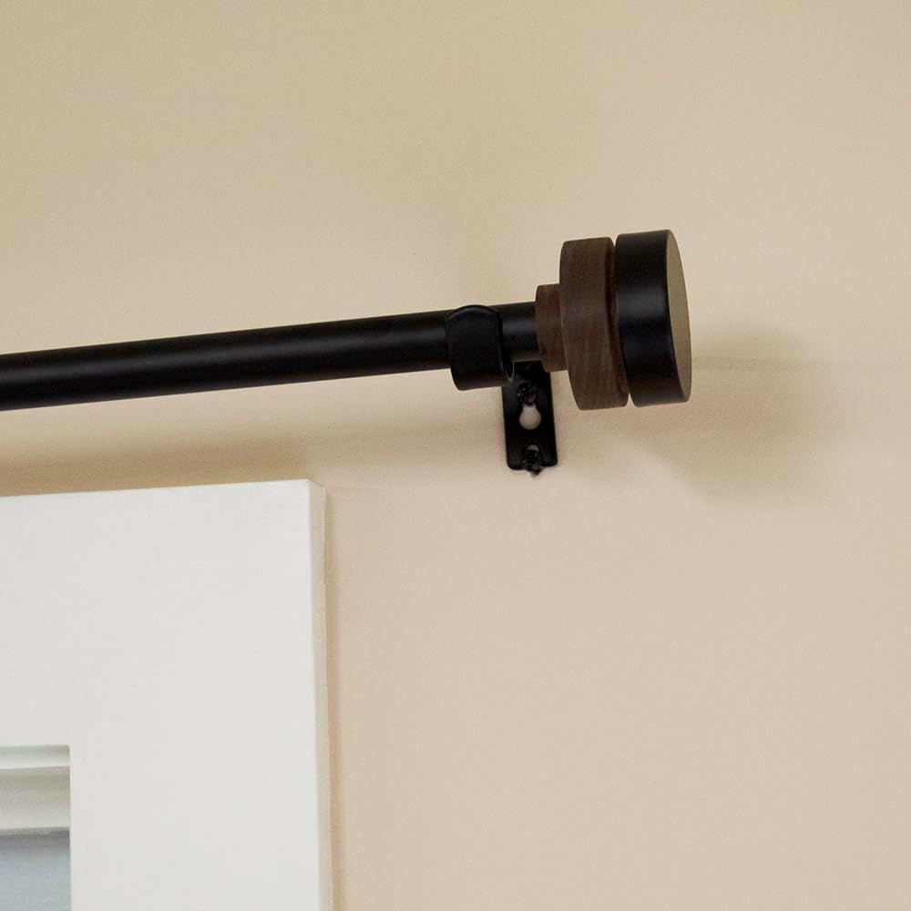 Elevate your decor effortlessly with the distinctive Lumino 3/4-inch diameter single drapery rod, beautifully combining matte black and wood finishes to add a touch of style to any room. Spanning from 28 to 48 inches, this versatile rod set ensures a perfect fit for your windows. The included finials feature a captivating mixed material knob design, seamlessly blending wood and matte black finishes for a unique touch. Comprehensive and complete, this set comprises a 3/4-inch metal single rod, paired with two mixed material knob decorative end pieces. For secure installation, three sturdy mounting brackets, screws, drywall anchors, and clear instructions are thoughtfully included. Assembling your ideal window treatment is a breeze, requiring only basic tools like a pencil, tape measure, and a drill or screwdriver. With the Lumino 3/4-inch drapery rod, transforming your space becomes an effortless endeavor. The harmonious blend of matte black and wood finishes exudes sophistication, while the adjustable size ensures a seamless fit. Enjoy a hassle-free setup experience that enables you to create a stylish atmosphere with ease.
