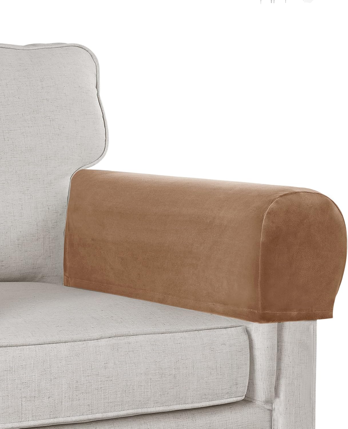 ORIGINAL VELVET PLUSH L.VICTEX armrest cover brings a highly valuable addition to any shape of sofa arm. No matter what your sofa is a square arm, curved arm or recliner arm, it will fit perfectly. Made with real velvet plush fabric that is thickened, softer, and more flexible stretch. Keeping your couch arms away from daily wear and tear, stains, and scratches. A necessity for homes with kids and pets.SUITABLE MEASURING INSTRUCTIONMake a exact measurement before your going to purchase.Each armrest cover measures: 20-23 inches length, 6.5-8 inches width and 8.5-10 inches height. OUTSTANDING FUNCTIONMade of durable original velvet fabric, super soft, smooth and comfortable.High stretchy fabric makes the armrest cover easy to cover sofa armrest comprehensively, to fit your sofa armrest more perfectly and to prolong its service life.Easy to put on and off, armrest covers feature for better staying in place, adhesive velcro could fix the armrest both on FABRIC and LEATHER furniture.MULTIPE CHOICEPackage Choice: 2 Pack in Each package, 4 Pack in Each package.Variety Colors Choice: Solid in Grey / Brown / Navy / Off White / Taupe / Camel / Deep Teal / Burgundy / Stone Blue /Black and more new coming color.CARE INSTRUCTIONWrinkle free for easy maintenance. Machine washing in cold, do not bleach, tumble dry low and no iron.Warm reminder that always wash before initial use, especially for dark color covers.