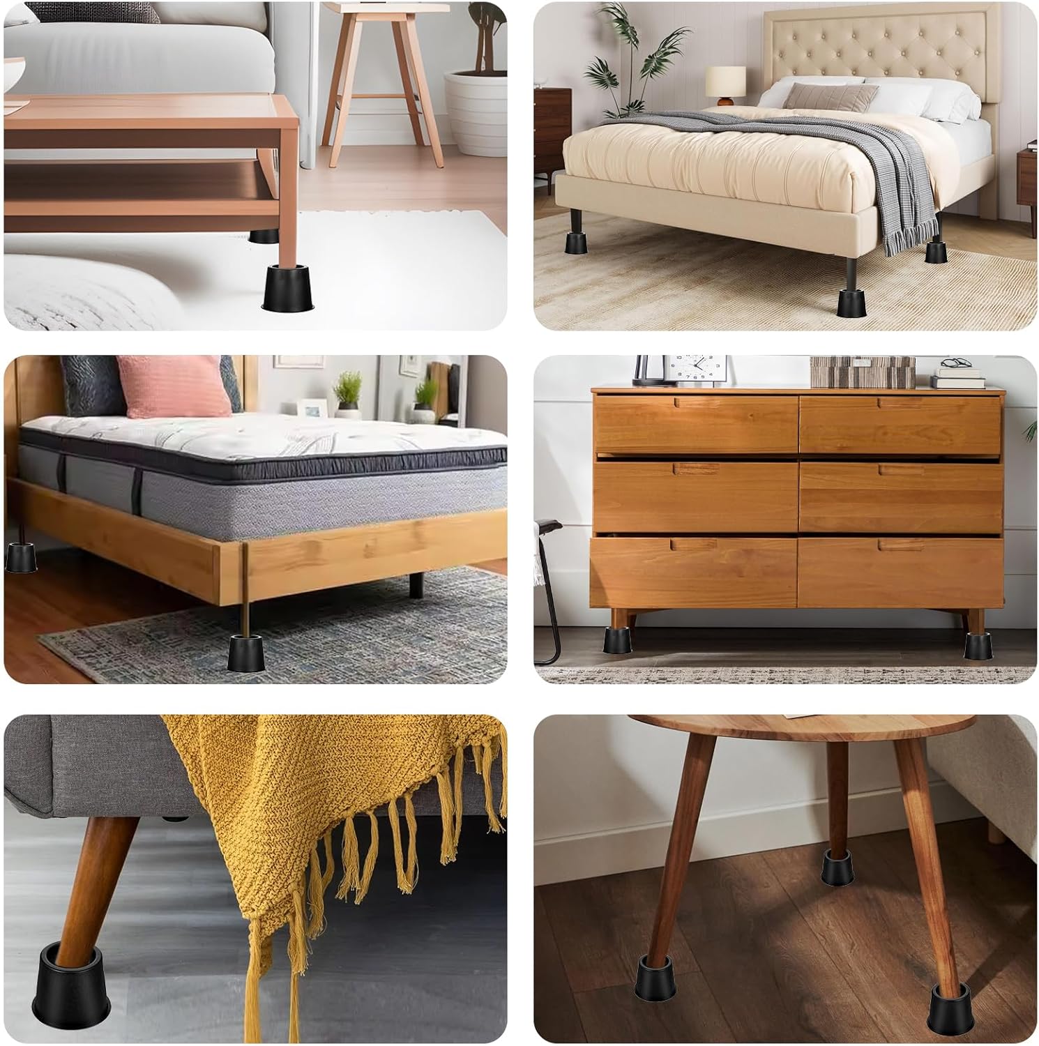 【Non-Slip & Stable】Bidding farewell to the old cushions,We have replaced the old pads with built-in rubber pads. Ensure the chair legs is protected, increased stability, and an aesthetically pleasing look. No more worries about cushions slipping off during movement.【Occasion Used】Round bed risers heavy duty can lifts to 3.3 inch height . So that there will be more storage space under the bed frame, and also easy to clean. It is also suitable for tables, chairs,desk, dessers, headboard, nightstand, sofa etc.Specifications:Material: PP plasticColor: BlackSize: about 5 x 3.9 inchesPackage includes:6 x Black Bed RisersNotes:Manual measurement, please allow slight errors on size.The color may exist a slight difference due to different screen displays.
