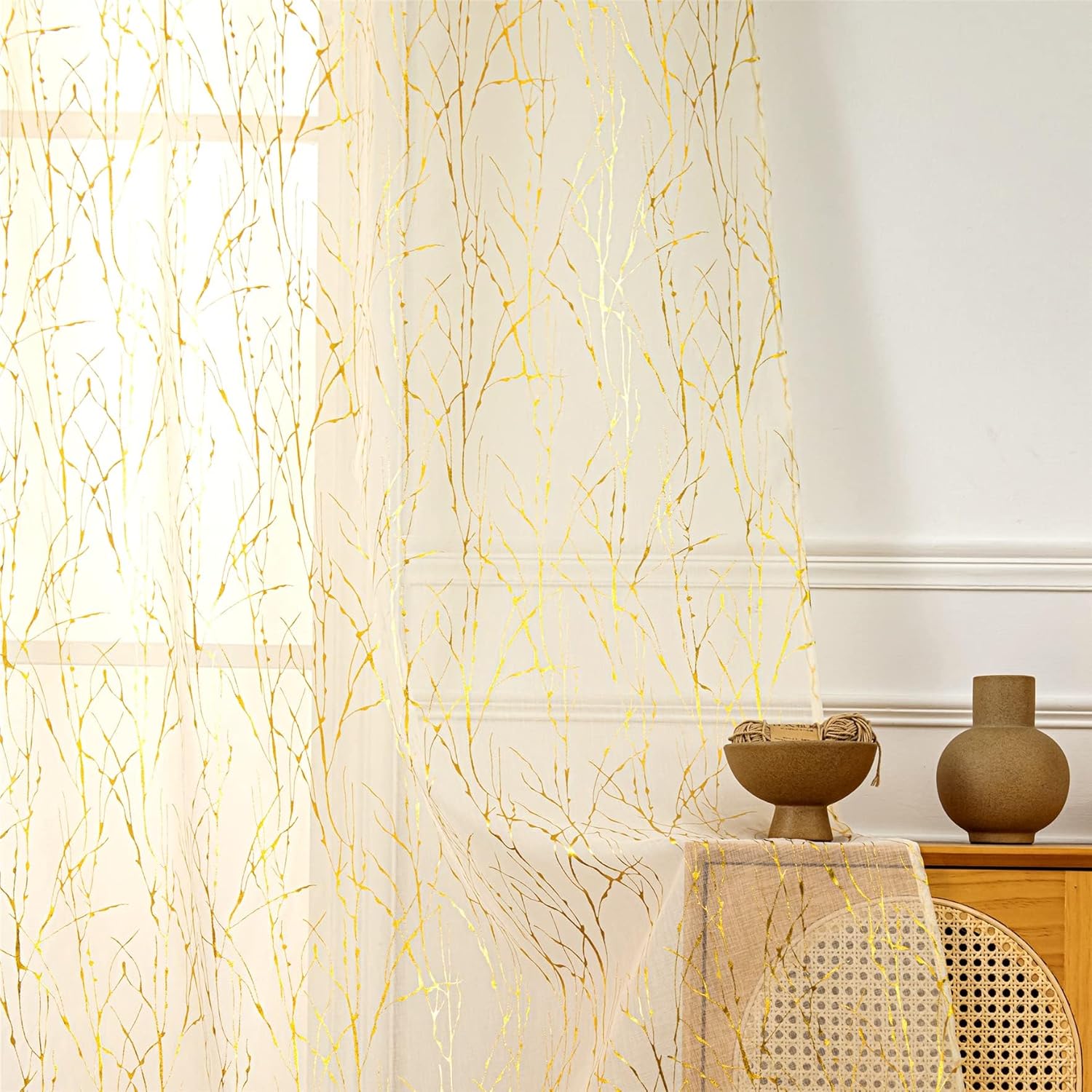| Style Name | Branch Gold Sheer Curtains-Cream 72 |