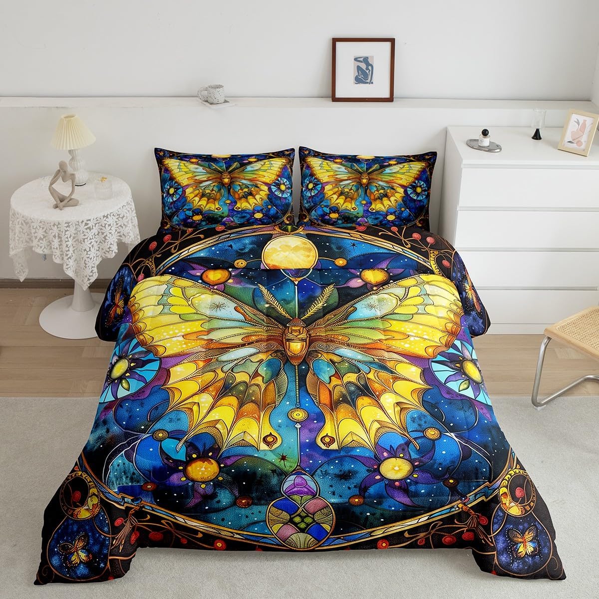 Best blessings: Makeover your bedrooms every season with our Comforter sets. Perfect item for your room, girls boys youth room, master bedroom. Also can order it for your mom, dad, sister, brother, grandma, wife, husband, daughter, son and all other beloved. Size Information: 1 x Twin size down comforter 68"W x 90"L, 1 x quilted pillow case 30"W x 20"L, 2pcs. 1 x Full size down comforter 79"W x 90"L, 2 x quilted pillow cases 30"W x 20"L,3pcs. 1 x Queen size down comforter 90"W x 90"L, 2 x quilted pillow cases 30"W x 20"L,3pcs. 1 x King size down comforter 104"W x 90"L, 2 x quilted pillow cases 36"W x 20"Lx,3pcs. Useful and practical: A luxurious product for homes, dorm rooms, hotels, guest rooms. Practical to use for being polyester, feels like cotton which is super soft and breathable. No chemicals used, No dye substance harming the health of you or your family. Unique design: Vivid Colors won't fade thanks to new 3D digital printing methods. These unique designs match well with various color palettes of your rugs, curtains, headboard, furniture, and all other decor accessories. Personalized: As manufacturers of digital printed home textiles, we follow current trends and bring you the latest home fashion. You can give it to your family or friend, relative or boyfriend girlfriend, or to yourself, the item should be interesting and authentic. Note: Machine washed in cold water. Do not bleach, Tumble dry low. The Bedspread and Pillow Shams are printed on the Front Side Only.
