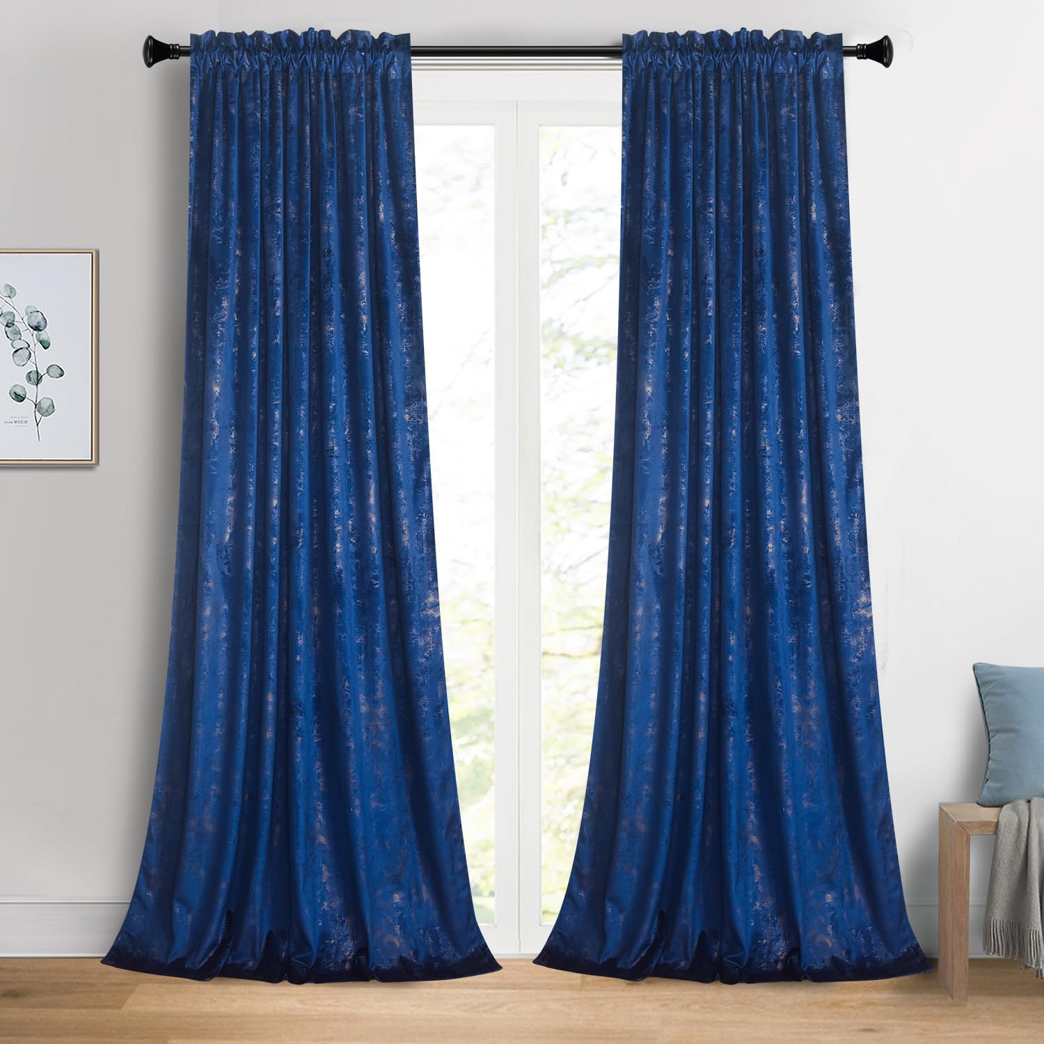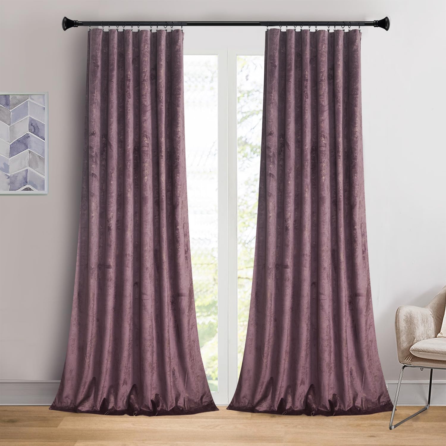 Give your home a decorator’s touch with the roslyn home velvet Window Curtain. Offers a classic look in an array of fashionable colors, It's coordinates well with any room setting Polyester blackout layer provides enhanced light filtration and privacy Room darkening, noise reducing and insulating, help saving heating & cooling cost Machine washable in cold water, tumble dry. Quick ironing or steam clean as needed. Panels are sold in pairs and each measures 52" W