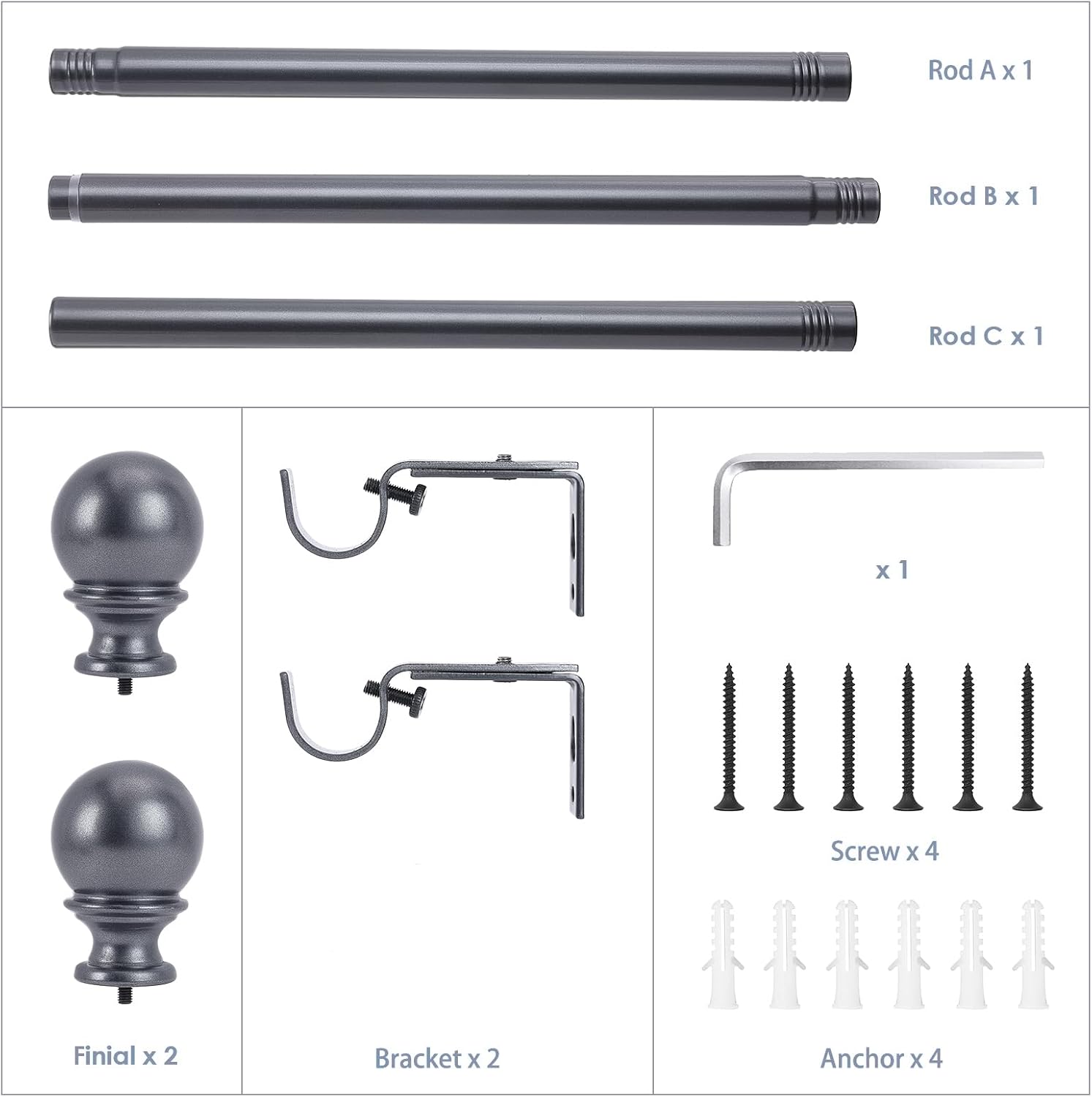 Taking cues from industrial designs. Update your decor with this rustic style curtain rod. 1-inch rod diameter ensure handling heavier fabrics up to 25 pounds. Adjustable-length. Wrap-around design allows panels to touch a wall and block out light while insulating the room. This decorative curtain rods with black finish add a simple and vintage appearance elements to your window style. Ceiling mount and wall mount meet different uses. Complement your window treatments in style with this adjustable curtain rod, showcasing an industrial and rustic design. Versatile curtain rod is ideal for the living room, bedroom, dining room, kitchen, or home office. Provide a visually balance and special appearance, match windows of multiple house styles. It is also easy to install.