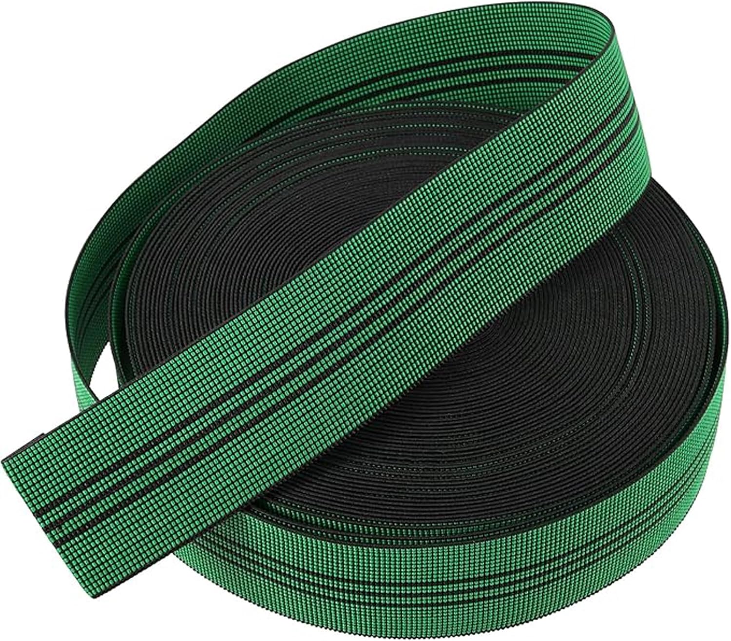 About Us The mission of FUNSUEI is to provide consumers with convenient and practical product. Carefully selected materials and multiple exquisite procedures ensure that the elastic webbing has a longer service life. The unanimous pursuit of all our employees is to help you find the favorite products in FUNSUEI. Why Choosing Us? ● Sit on a soft and comfortable chair to have a drink or read a book, which can make you feel comfortable and spend a pleasant time! ● Our elastic webbing rolls have bright appearance, delicate texture and excellent durability. What are you hesitating about? ● In addition, the elastic webbing is corrosion-resistant, can be washed with water, and can be used indoors or outdoors. ● The 2 inches elastic webbing has enough stretch and support to provide you with a good sense of comfort. So you can sit on the chair for a long time without breaking the webbing or making the webbing sink excessively. Specification: Material: Polyester and Latex Thread Size: Width: 2 inches Length: 65.6 feet (Each Roll) Color: Green and Black Packing Includes Elastic Webbing x 3 Rolls