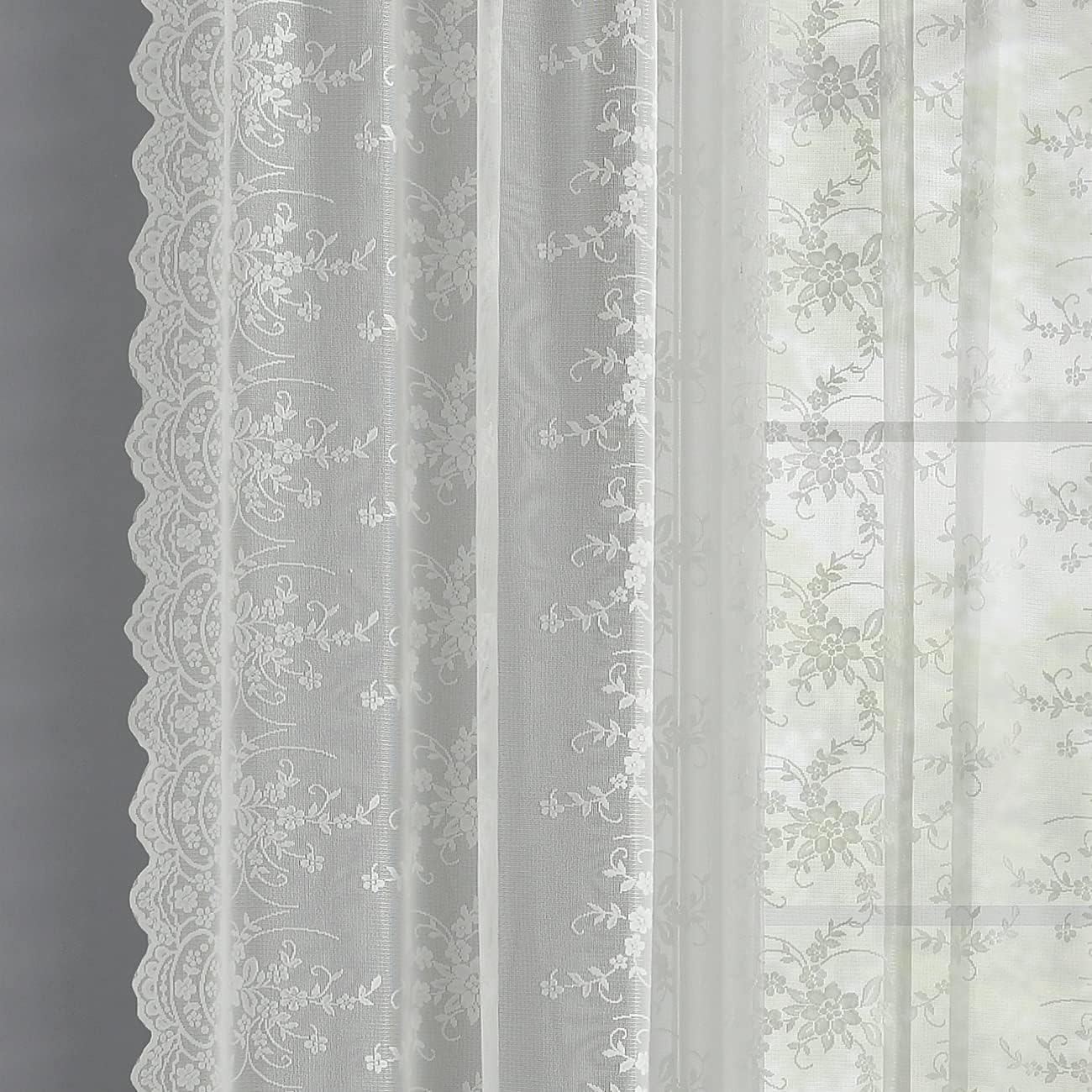 Kotile Blush Lace Curtains 80 Inch Length 2 Panels Vintage Vine Floral Lace Sheer Curtains for Girls Bedroom, Rod Pocket Light Filtering Privacy Sheer Window Curtain, 52 x 80 Inch, Blush PinkTransform your space with the timeless elegance of Kotile Blush Pink Lace Curtains 80 Inch Length. These vintage-inspired feminine lace curtains bring a touch of sophistication and charm to girls bedroom, living room or any windows in your home.Product Quick View: 100% Brand New 100% Durable Polyester Imported Package Includes: Each set includes two panels, each measuring 52" wide by 80" long, for a total width of 104", ensuring a perfect fit for your windows while offering both style and functionality. Easy Installation: The dual rod pocket top (1.2" + 2.8") design ensures a hassle-free installation, allowing these curtains to slide smoothly on most standard curtain rods up to 1.50 inch dia. Function & Design: Crafted with delicate poly tulle and scalloped trim, these coquette lace curtains not only filter light softly but also add a subtle decorative element that elevates your décor. Create a cozy cottagecore aesthetic or enhance a rustic farmhouse look with these blush sheer lace curtains, serving as the perfect finishing touch for any room. The gentle sway of the lace adds a dynamic elegance that breathes life into any space. Easy Care & Maintenance: These feminine sheer curtains are machine washable and tumble dryable on low, requiring minimal upkeep. Kotile Curtains Designed to make any house feel like a home, bringing character and warmth to your living spaces.