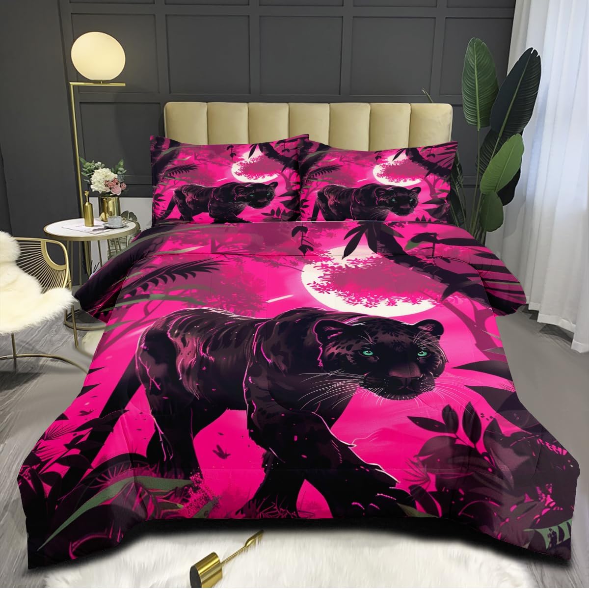 [Material Selection] This Black Panther comforter set queen size is made from super soft microfiber and filled with 250g imported fiberfill. It’s lightweight, breathable, and soft, ensuring you won’t feel stuffy or sweaty during summer or winter. This Black Panther comforter set can adjust your body temperature, providing more comfort and improving your sleep quality. [The Design] Our Black Panther bedding set use the latest 3D printing technology to create crisp, colorfast patterns that won’t fade, using safe odorless dyes. The U-shape stitching ensures the microfiber filler is sewn tightly to prevent clumping or shifting. With a wide range of colors and styles to choose from, these unique patterns are suitable for all types of interior decor, including vintage, modern, farmhouse, ethnic, sports, romantic, and more. Perfect gifts for children and teens during holidays, New Year, Valentine’s Day, and Christmas. [Size] full Size: Wildlife comforter (79" x 90"), 2 pillowcase (20" x 30"). king Size: Wildlife comforter (90" x 104"), 2 pillowcases (30" x 36"). queen Size: Wildlife comforter (90" x 90"), 2 pillowcases (20" x 30"). twin Size: Wildlife comforter (68" x 86"), 1 pillowcases (20" x 30"). Tips The Black Panther comforter set queen size are only printed on the front; the back is soild. [Cleaning Method] Our Wildlife bedding set for girls is machine washable, saving you time and energy. Wash gently in cold water and tumble dry at low temperature. Do not bleach. [Satisfaction Service] We are committed to providing high-quality, comfortable and beautiful bedding set so that everyone can enjoy a quality sleep in their bedroom at home. We offer exchange service. If you encounter any issues, please contact us promptly. We will process your request as soon as possible within 24 hours.