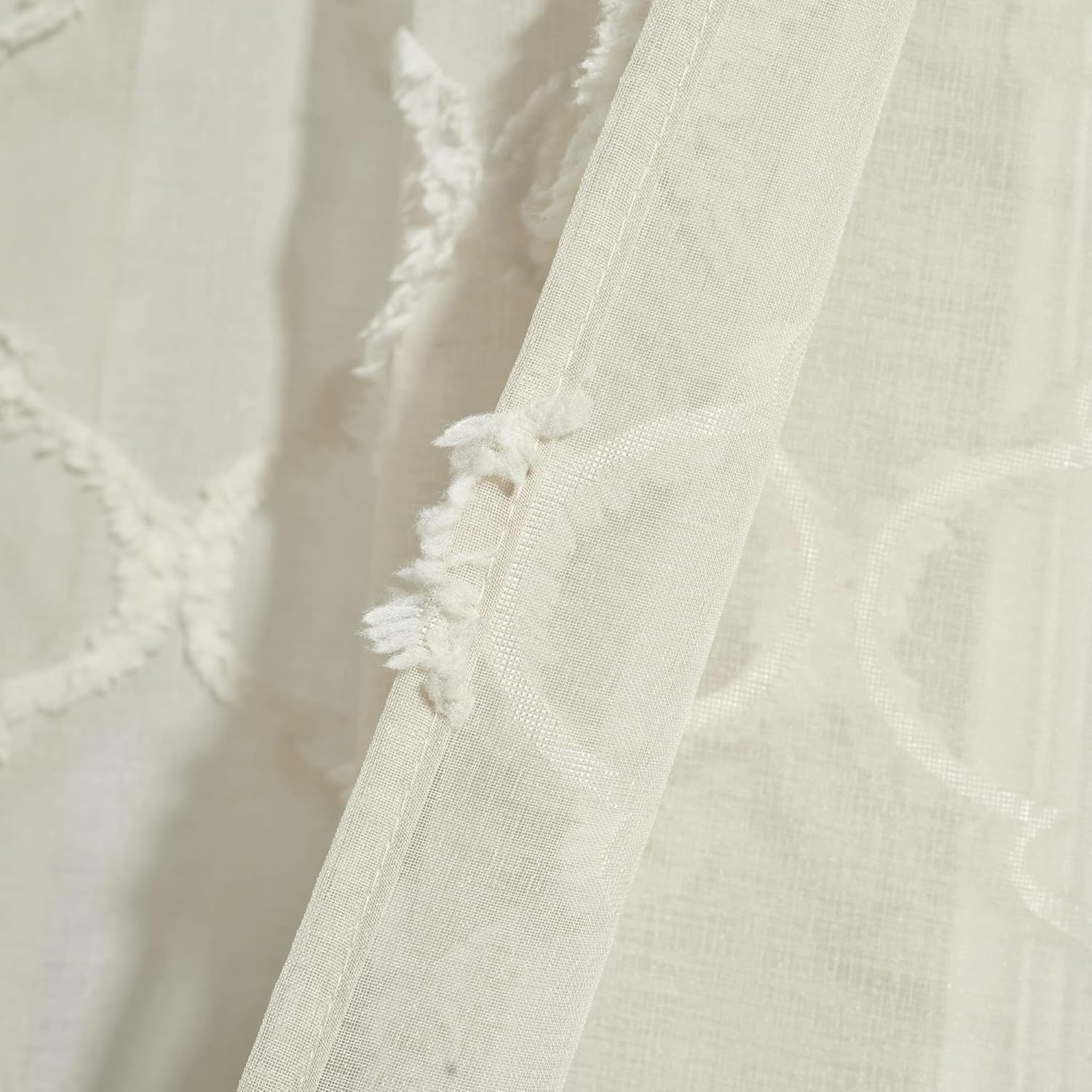 Add subtle texture to your home with the Lush Decor Avon Trellis Grommet Sheer Curtains showcase a subtle tufting detail in a trellis pattern in neutral colors. These farmhouse curtains will make a beautiful statement in your home. These sheer panels add style to your space and let in plenty of sunlight while still providing some privacy. The airy design softens your space with understated elegance. They perfectly complement cottage core, minimalist, contemporary, and modern farmhouse decor styles. These living room curtains are crafted from a 100% polyester fabric and are unlined. Sold as 2 panels, each measuring 38 inches wide in multiple length options. These curtains offer seamless installation with metal grommets measuring 1.65" in diameter, allowing you to easily slide your curtain rod through them. To care for these bedroom curtains we recommend to hand wash cold and hang to dry. Do not wring. Use a steamer to release wrinkles, if needed.