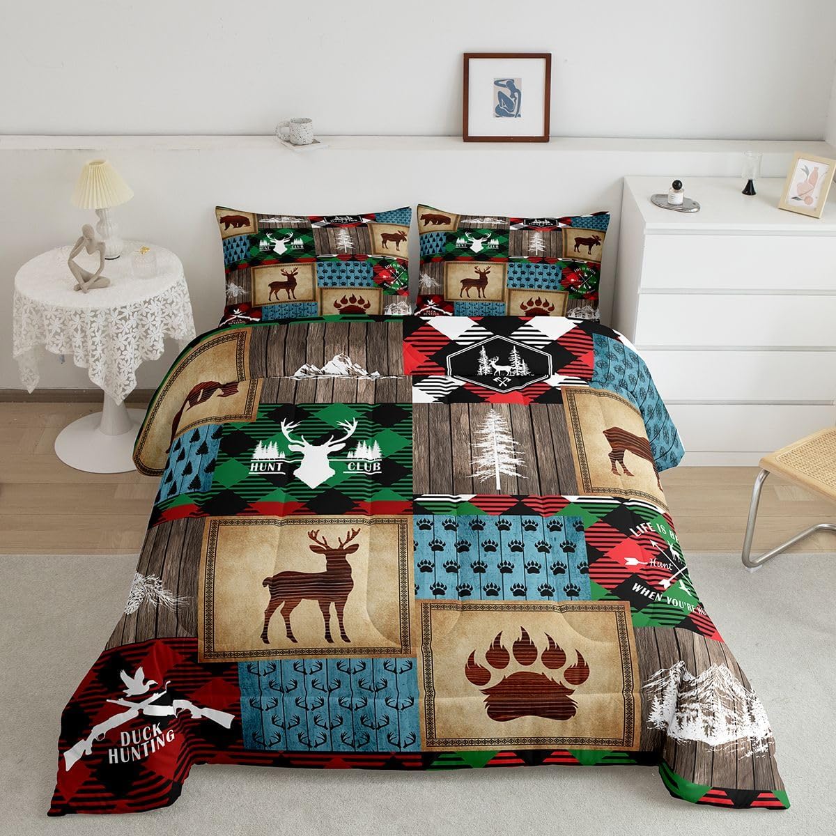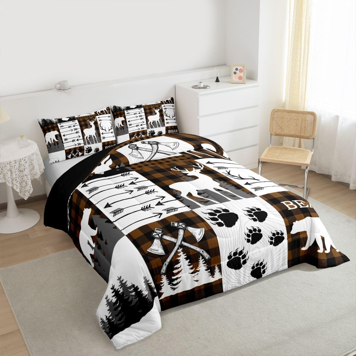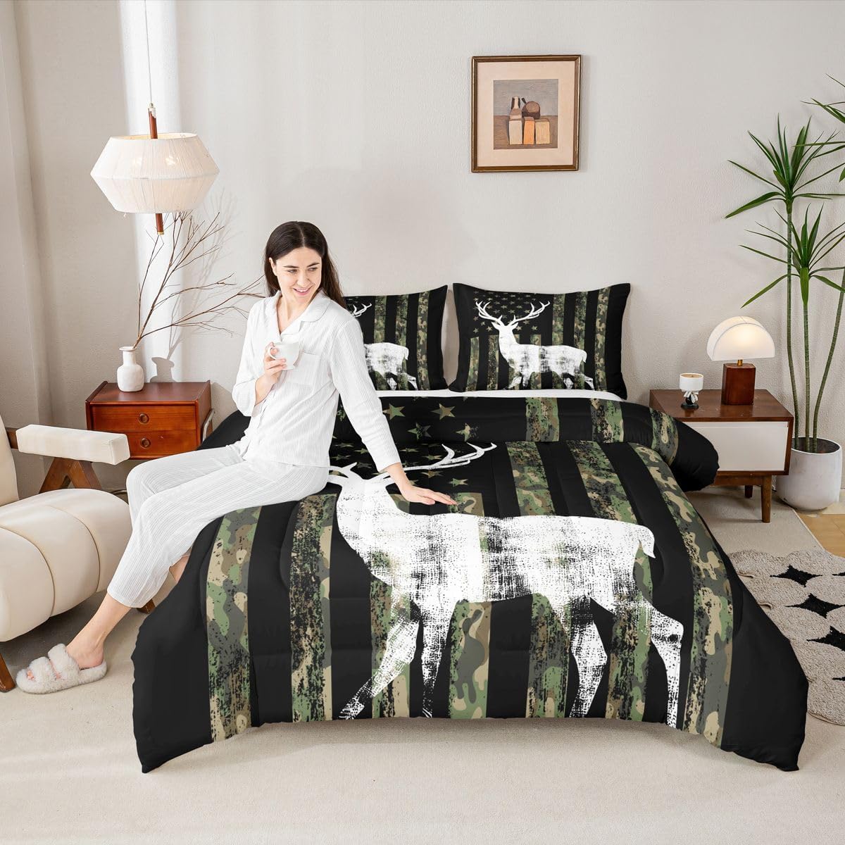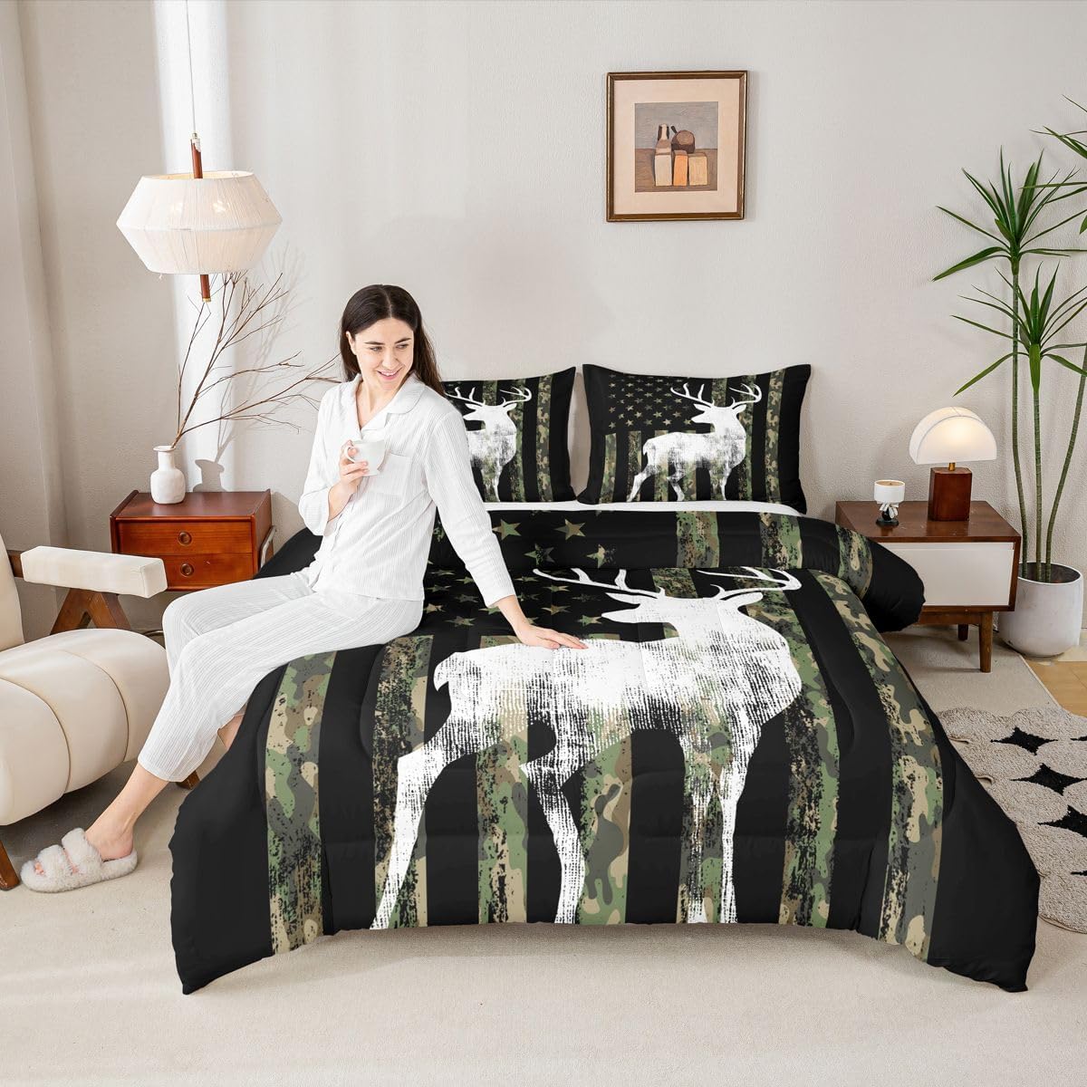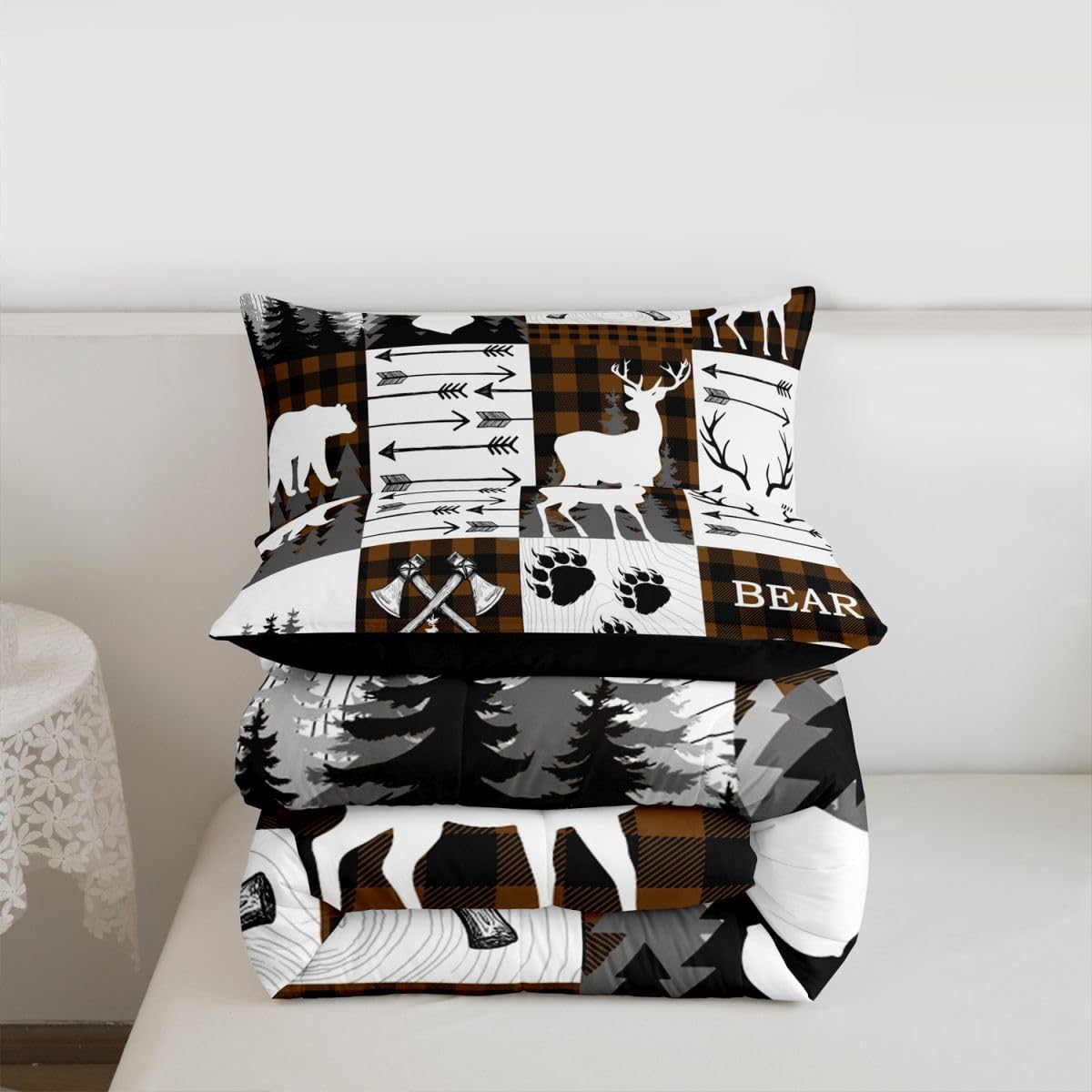 Welcome to our store We have specialized in home textile for many years:We are contribute to provide good customer service and products Size Information Twin size: 1 Down Comforter 68"W x 90"L and 1 Quilted Pillowcase 30"W x 20"L Full size: 1 Down Comforter 79"W x 90"L and 2 Quilted Pillowcases 30"W x 20"L Queen size: 1 Down Comforter 90"W x 90"L and 2 Quilted Pillowcases 30"W x 20"L King size: 1 Down Comforter 104"W x 90"L and 2 Quilted Pillowcases 36"W x 20"L Versatility We have many kinds of styles for you to choose: You can easily find a product that suits the style of your room The item is not only good for your bedroom,guest room,living room or Rv,but also a great Present for holidays or anniversaries for people who you love Modern Design The luxury aesthetic comforter set is made by reactive printing and dyeing process:The pattern is clear, the color is lasting and bright, which will not fade after repeated washing Personalized As a manufacturer of digital printed home textiles,we follow current trends and bring you the latest and stylish home textile products The item will make the room decorated in exquisite taste Our Wish We sincerely hope you'll love the bed set