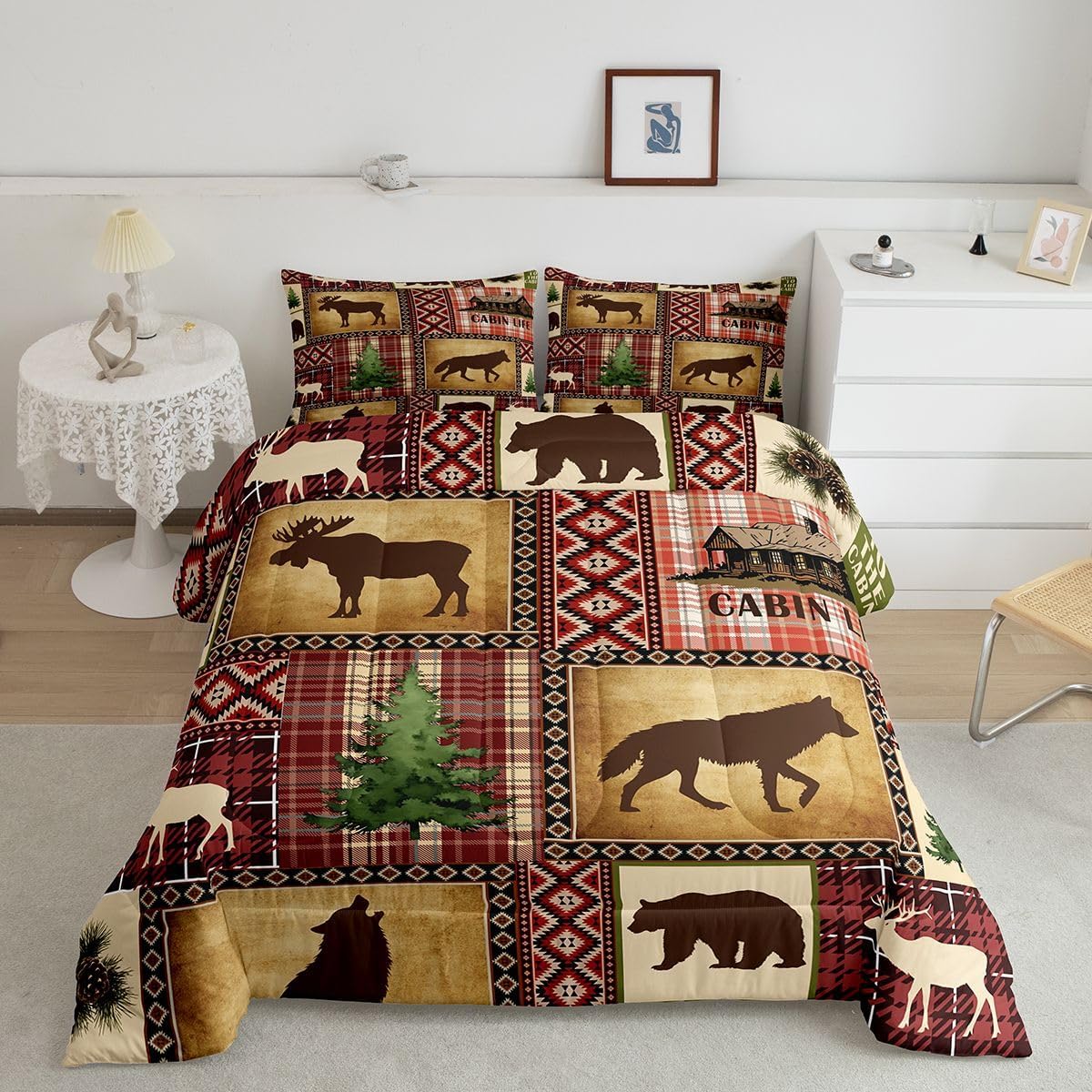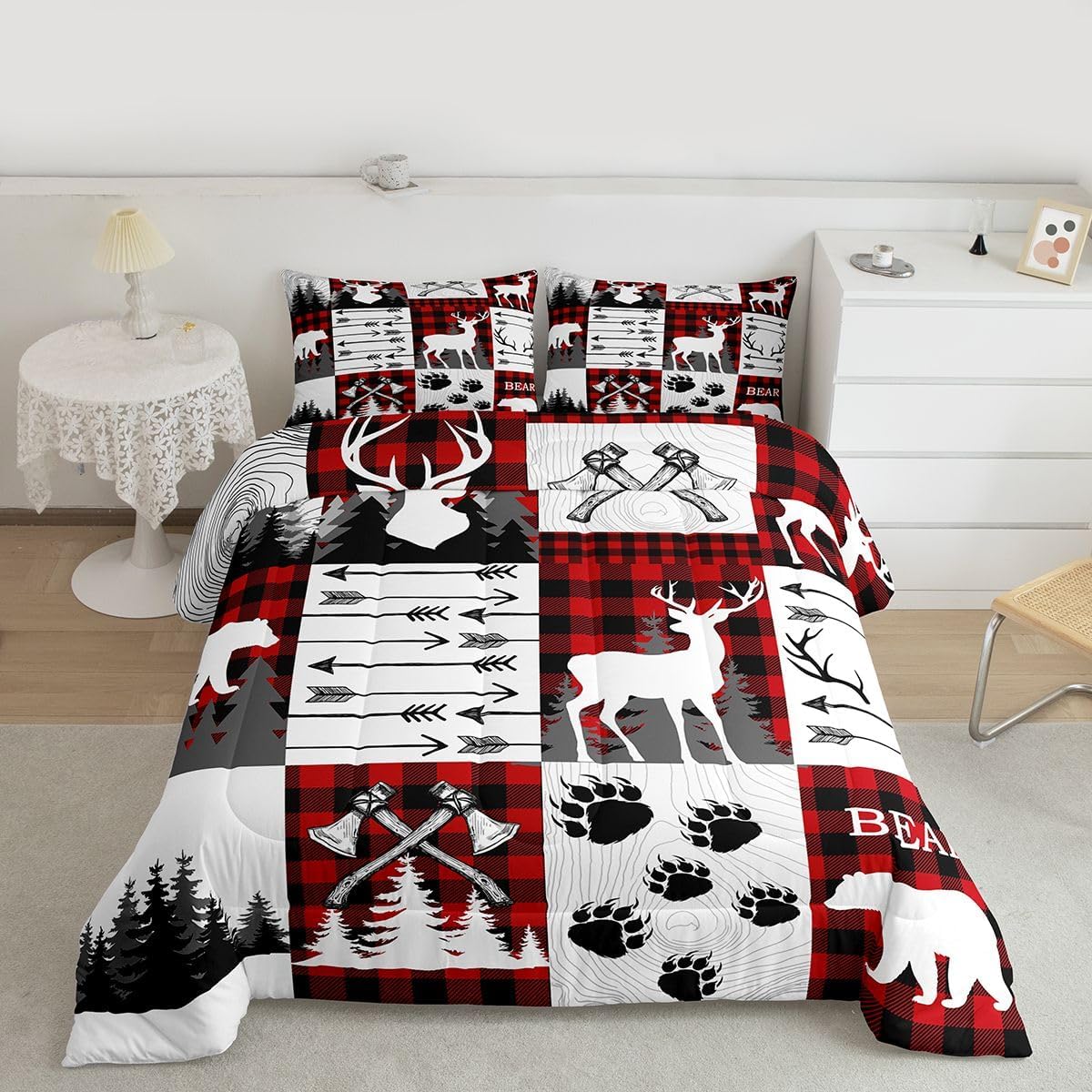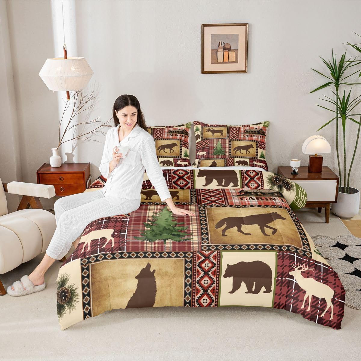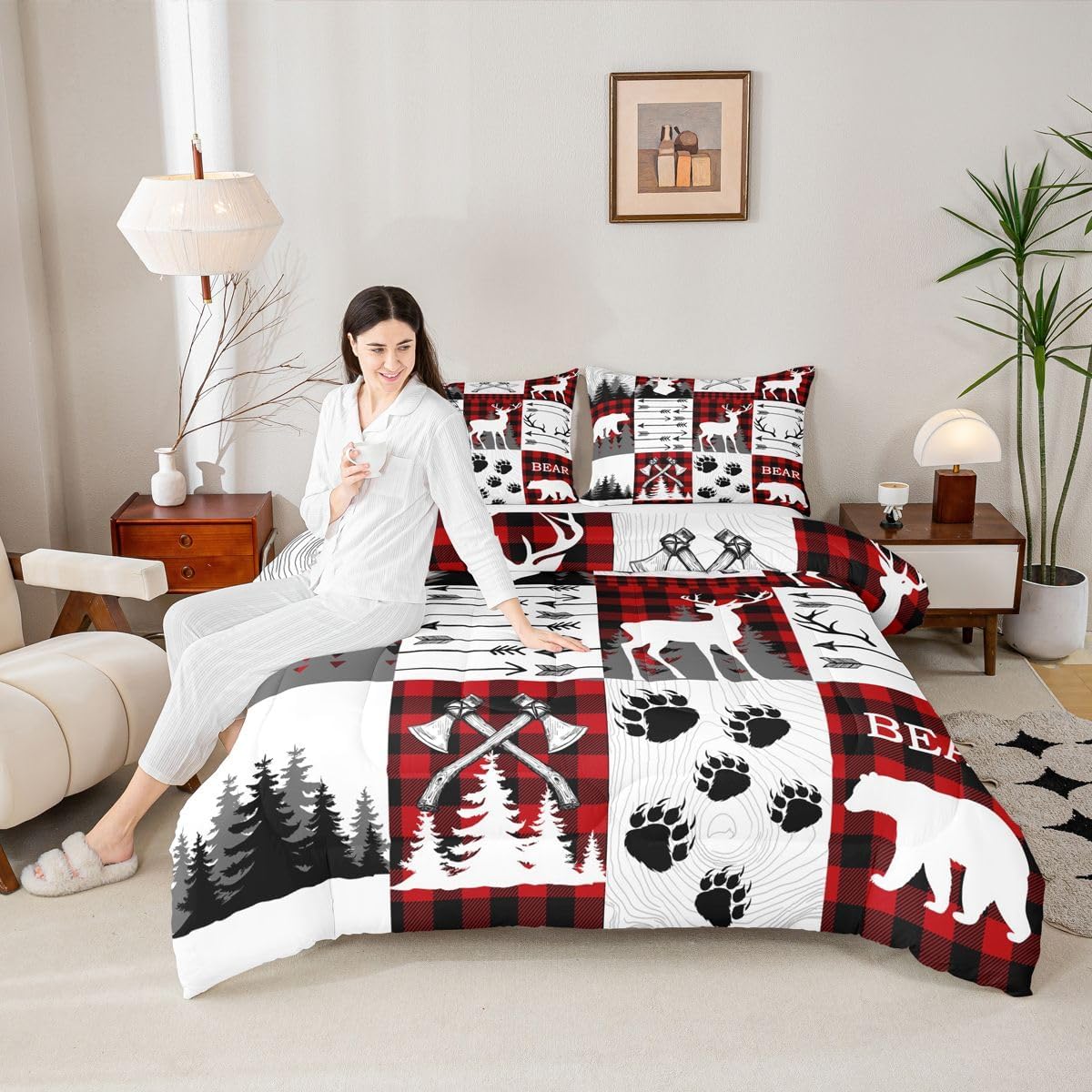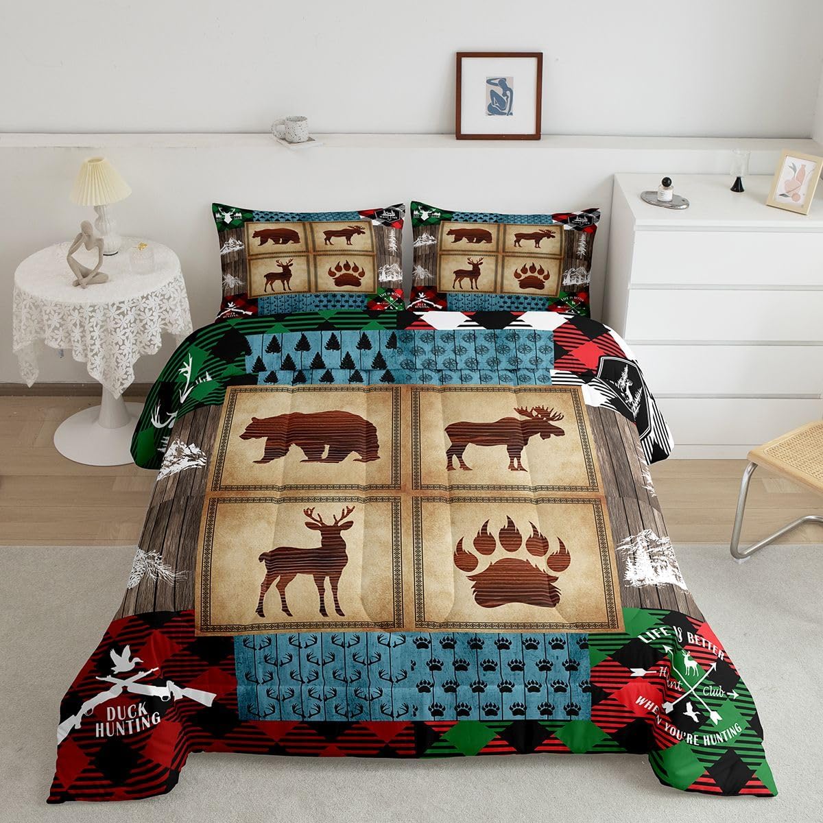 Welcome to our store We have specialized in home textile for many years:We are contribute to provide good customer service and products Size Information Twin size: 1 Down Comforter 68"W x 90"L and 1 Quilted Pillowcase 30"W x 20"L Full size: 1 Down Comforter 79"W x 90"L and 2 Quilted Pillowcases 30"W x 20"L Queen size: 1 Down Comforter 90"W x 90"L and 2 Quilted Pillowcases 30"W x 20"L King size: 1 Down Comforter 104"W x 90"L and 2 Quilted Pillowcases 36"W x 20"L Versatility We have many kinds of styles for you to choose: You can easily find a product that suits the style of your room The item is not only good for your bedroom,guest room,living room or Rv,but also a great Present for holidays or anniversaries for people who you love Modern Design The luxury aesthetic comforter set is made by reactive printing and dyeing process:The pattern is clear, the color is lasting and bright, which will not fade after repeated washing Personalized As a manufacturer of digital printed home textiles,we follow current trends and bring you the latest and stylish home textile products The item will make the room decorated in exquisite taste Our Wish We sincerely hope you'll love the bed set