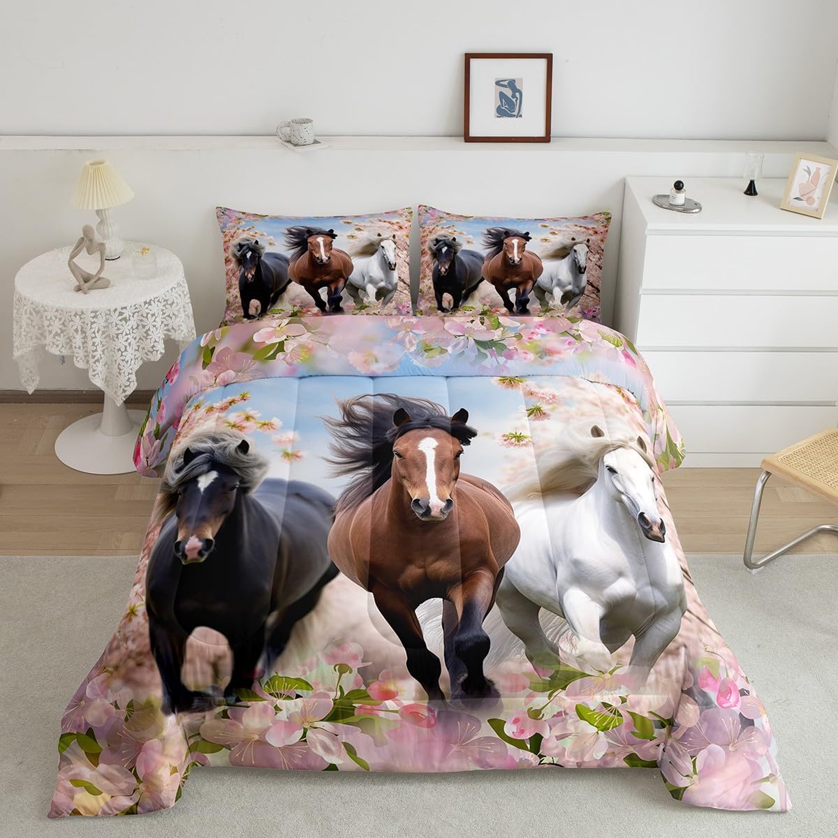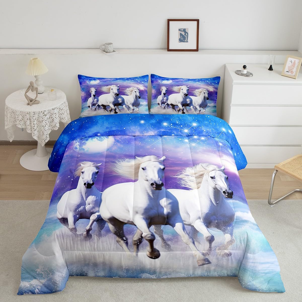 Makeover your bedrooms every season with our comforter sets; good item for your room, girls boys youth room, master bedroom Also a great decoration idea for your mom, dad, sister, brother, grandma, wife, husband, daughter, son and all other beloved Size Information:1 Twin size comforter 68" X 90" and 1 pillowcase 30" X 20"1 Full size comforter 79" X 91" and 2 pillowcases 30" X 20"1 Queen size comforter 90" X 90" and 2 pillowcases 30" X 20"1 King size comforter 104" X 90" and 2 pillowcases 36" X 20"Useful and practical: A practical product for homes, dorm rooms, hotels, guest rooms. Comfortable to use for being polyester which is soft and breathable Unique design:Vivid colors and clear printed with digital printing. These unique designs match well with various color of your rugs, curtains, headboard, furniture, and all other decor accessories Characteristic:As manufacturers of digital printed home textiles, we follow current trends and bring you new home fashion Either a comforter to your family or friend, relative or boyfriend girlfriend, or to yourself, the item should be interesting and authentic Note:The comforter and pillow cases are printed on the front side only, the back of them are white colored