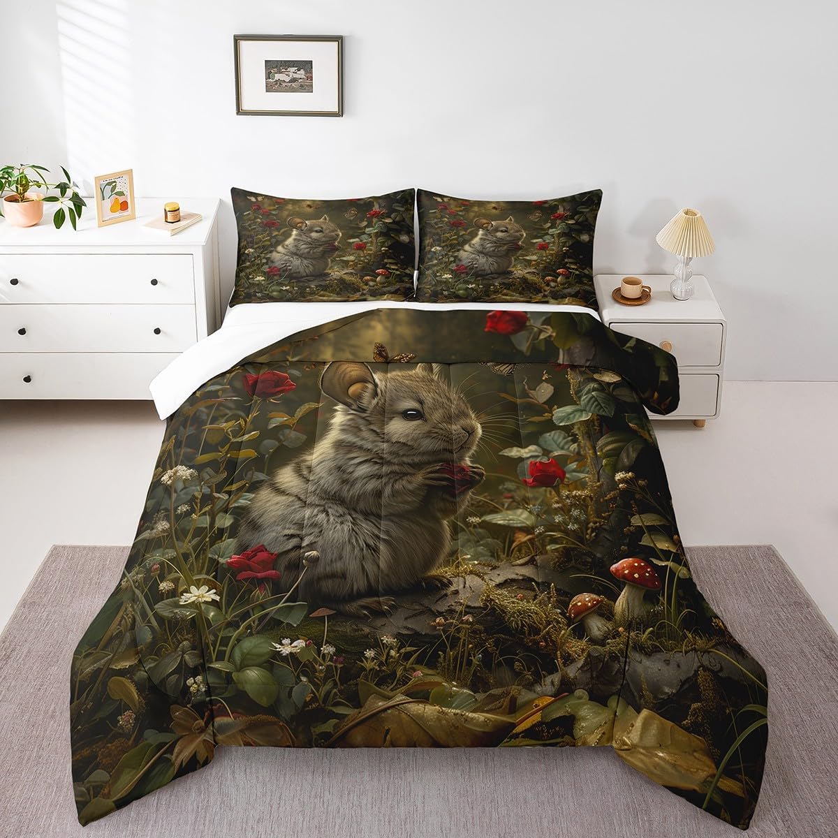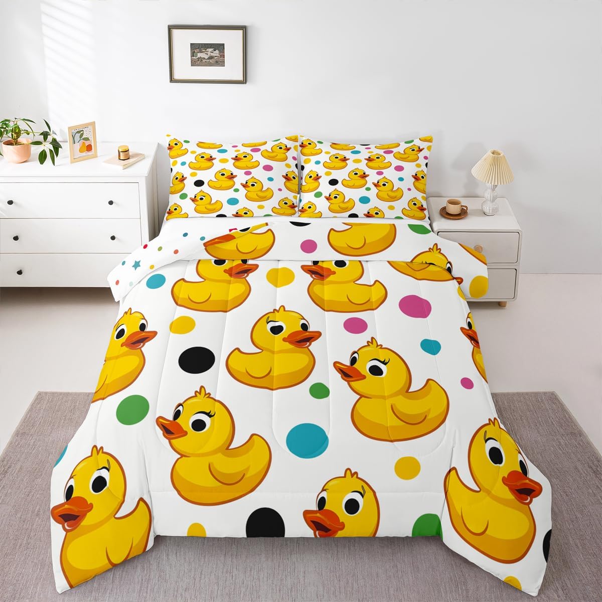 Welcome to our store We have specialized in home textile for many years. We are contribute to provide the excellent customer service and products Size Imformation Toddler Size: 1 Down Comforter 42"W x 58"L and 1 Quilted Pillowcase 30"W x 20"L Twin Size: 1 Down Comforter 68"W x 90"L and 1 Quilted Pillowcase 30"W x 20"L Full Size: 1 Down Comforter 79"W x 90"L and 2 Quilted Pillowcases 30"W x 20"L Queen Size: 1 Down Comforter 90"W x 90"L and 2 Quilted Pillowcases 30"W x 20"L King Size: 1 Down Comforter 104"W x 90"L and 2 Quilted Pillowcases 36"W x 20"L Versatility We have many kinds of styles and themes for you to choose. You can easily find a product that matches the style of your room The item is not only suitable for your home, bedroom, guest room, living room or RV, but also gifts for holidays and anniversaries, such as Christmas, Halloween, Thanksgiving Day, Birthday, Valentine's Day, Wedding Engagement, Housewarming Day Decorations. For your loved ones, such as your kids, mom, dad, wife, husband, boyfriend, girlfriend, friends, relatives Modern Design The luxury aesthetic comforter set is made by reactive printing and dyeing process. The pattern is clear, the color is lasting and bright, which will not fade after repeated washing No harmful chemicals or dye substance Personalized As a manufacturer of digital printed home textiles, we follow current trends and bring you the latest and stylish home textile products The item will make the room decorated in exquisite taste We sincerely hope you'll love the bed set. But if you consider that it is not fit for your home for any reasons, please send an email to us