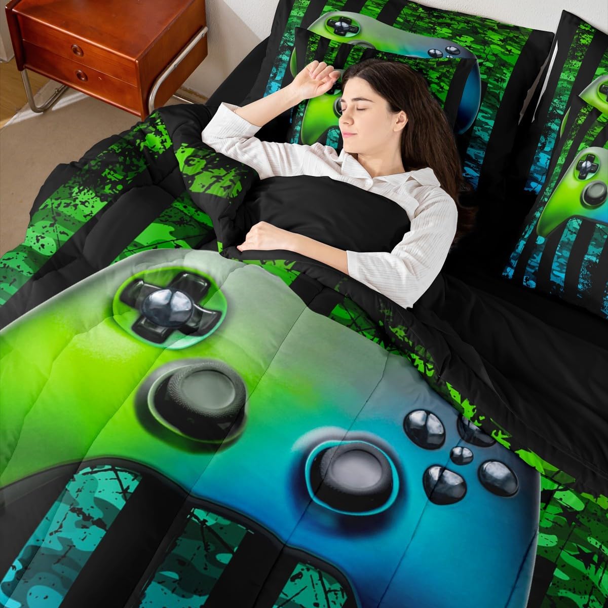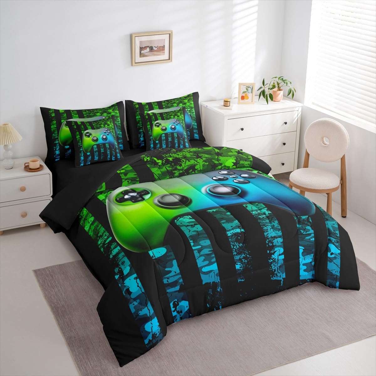 Size Information Twin : 1 Comforter: 68"x90",1x Fitted Sheet 39"x75"x16",1x Flat Sheet 96"x66",2x Pillowcases 20"x30" and 2 Pillow Cover 18"x18" Full : 1 Comforter: 79"x90",1x Fitted Sheet 54"x75"x16",1x Flat Sheet 96"x66",2x Pillowcases 20"x30" and 2 Pillow Cover 18x18" Queen : 1 Comforter: 90"x90",1x Fitted Sheet 60"x80"x16",1x Flat Sheet 102"x90",2x Pillowcases 20"x30" and 2 Pillow Cover 18"x18" King : 1 Comforter: 104"x90",1x Fitted Sheet 78"x80"x16",1x Flat Sheet 106"x90",2x Pillowcases 20"x36" and 2 Pillow Cover 18"x18" Style Variety: Available in multiple styles. Suitable Spaces: For use in bedrooms, guest rooms, living rooms, or RVs. Printing Process: Manufactured using reactive printing and dyeing technology. Design Feature: Diverse pattern options. Care Instructions: Machine washable. Air dry. Low-heat ironing recommended. Not suitable for bleach, dry cleaning, or machine drying. Intended Decor: Designed for home textile applications.