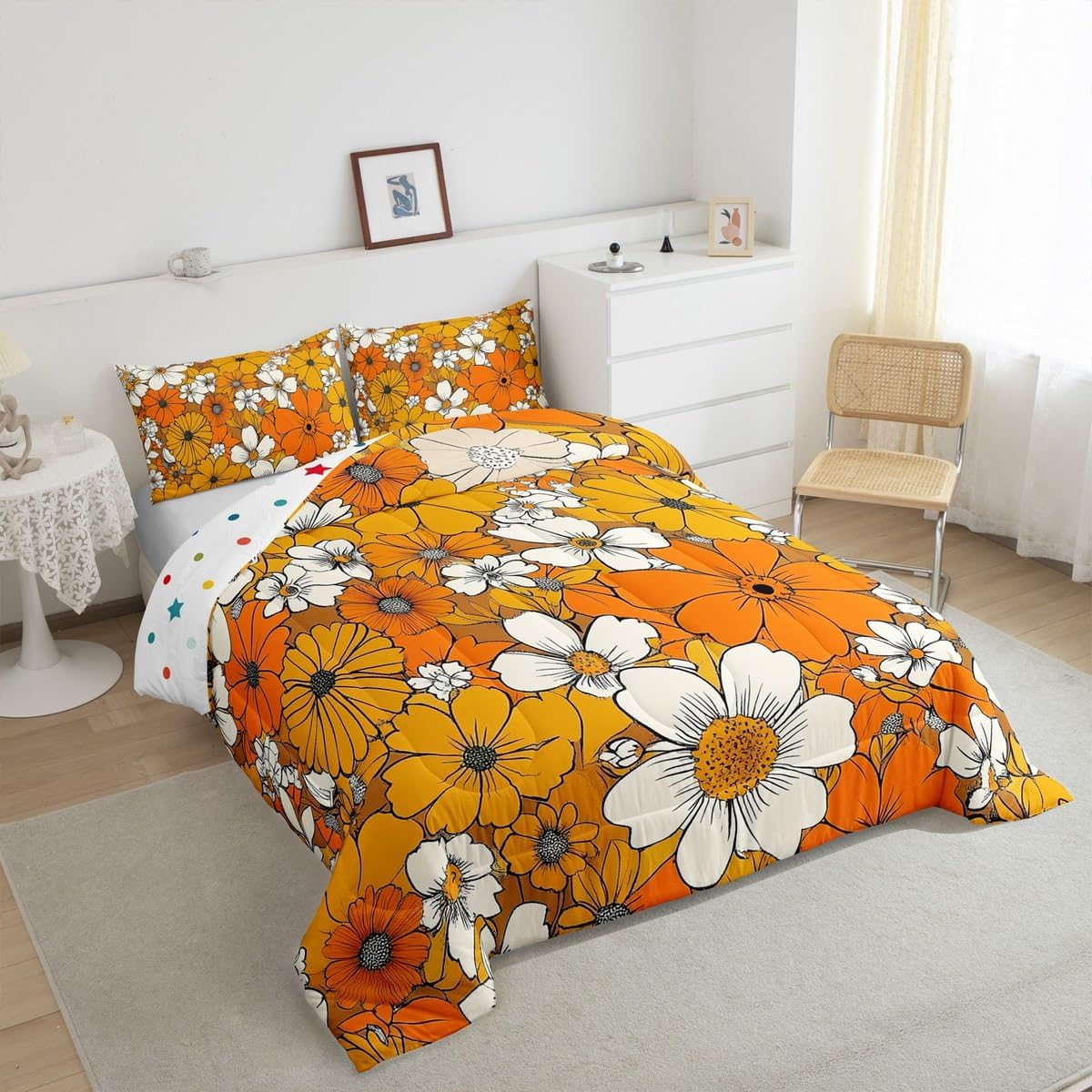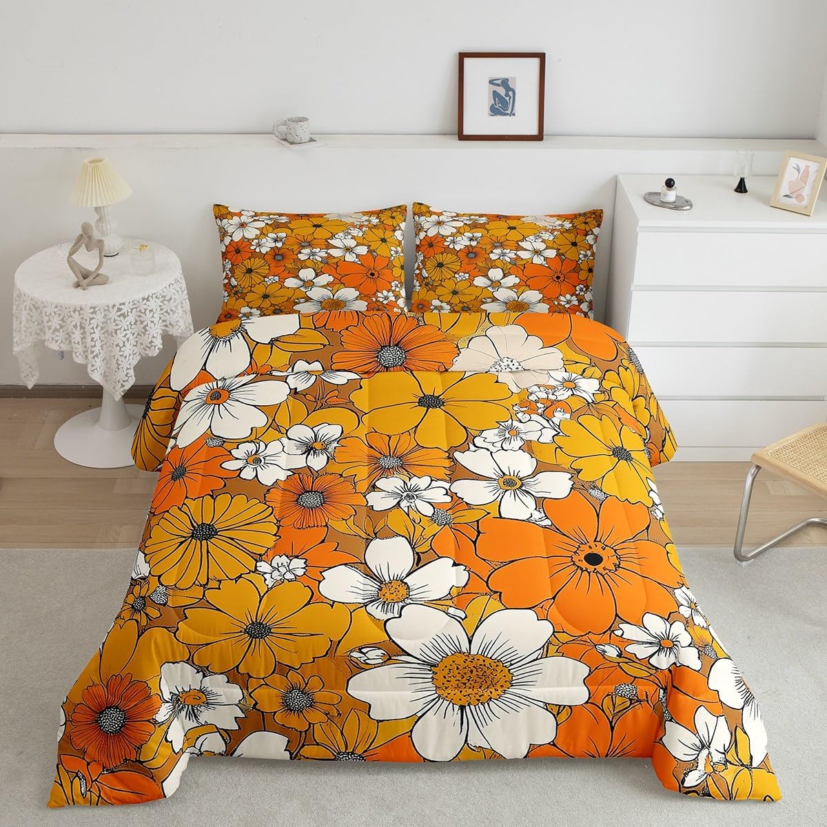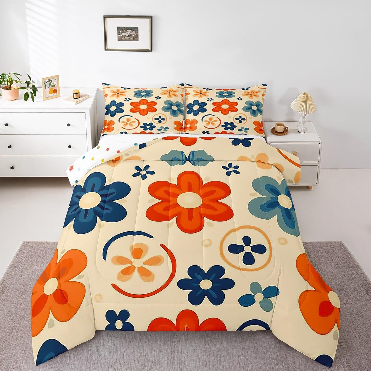 Welcome to our store Size Imformation Twin size: 1 Down Comforter 68"W x 90"L, 1 Quilted Pillowcase 30"W x 20"L Full size: 1 Down Comforter 79"W x 90"L, 2 Quilted Pillowcases 30"W x 20"L Queen size: 1 Down Comforter 90"W x 90"L, 2 Quilted Pillowcases 30"W x 20"L King size: 1 Down Comforter 104"W x 90"L, 2 Quilted Pillowcases 36"W x 20"L Versatility We have many kinds of styles for you to choose. You can easily find a product that suits the style of your room. Modern Design As a manufacturer of digital printed home textiles, we follow current trends and bring you the latest and stylish home textile products.