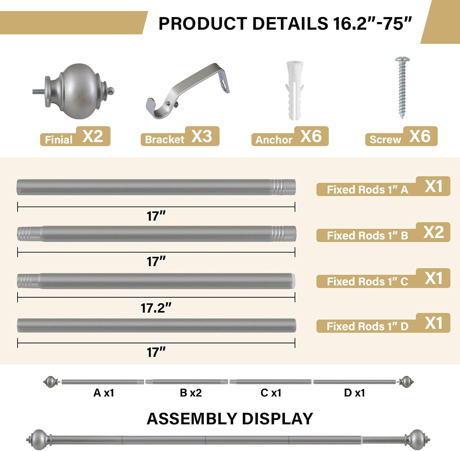 | Included Components | 1 curtain rod set |