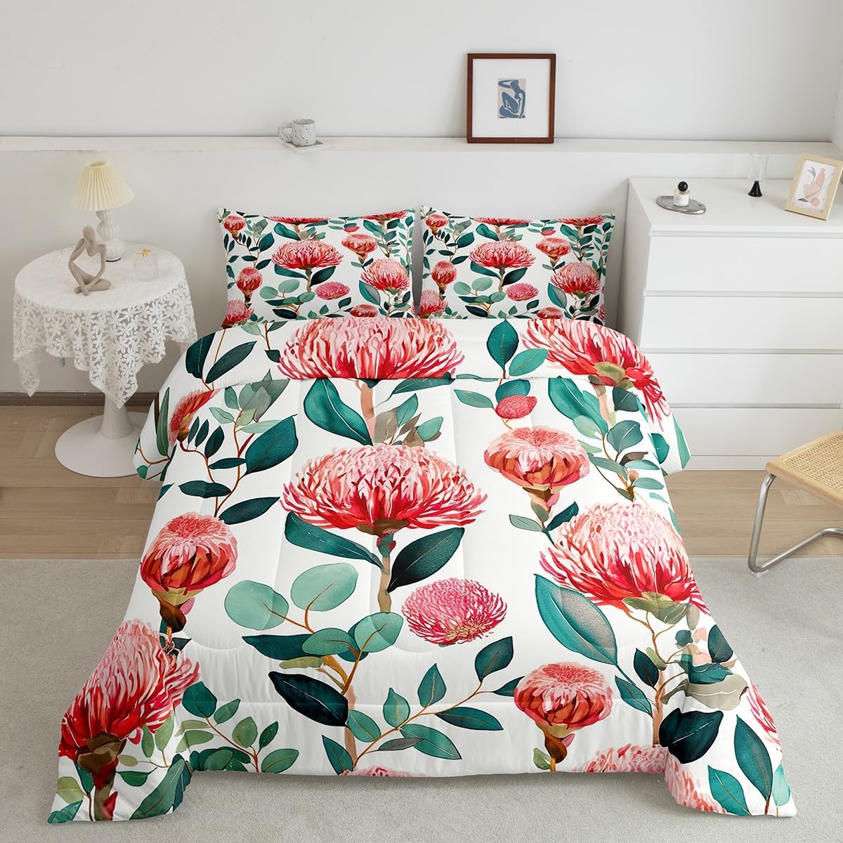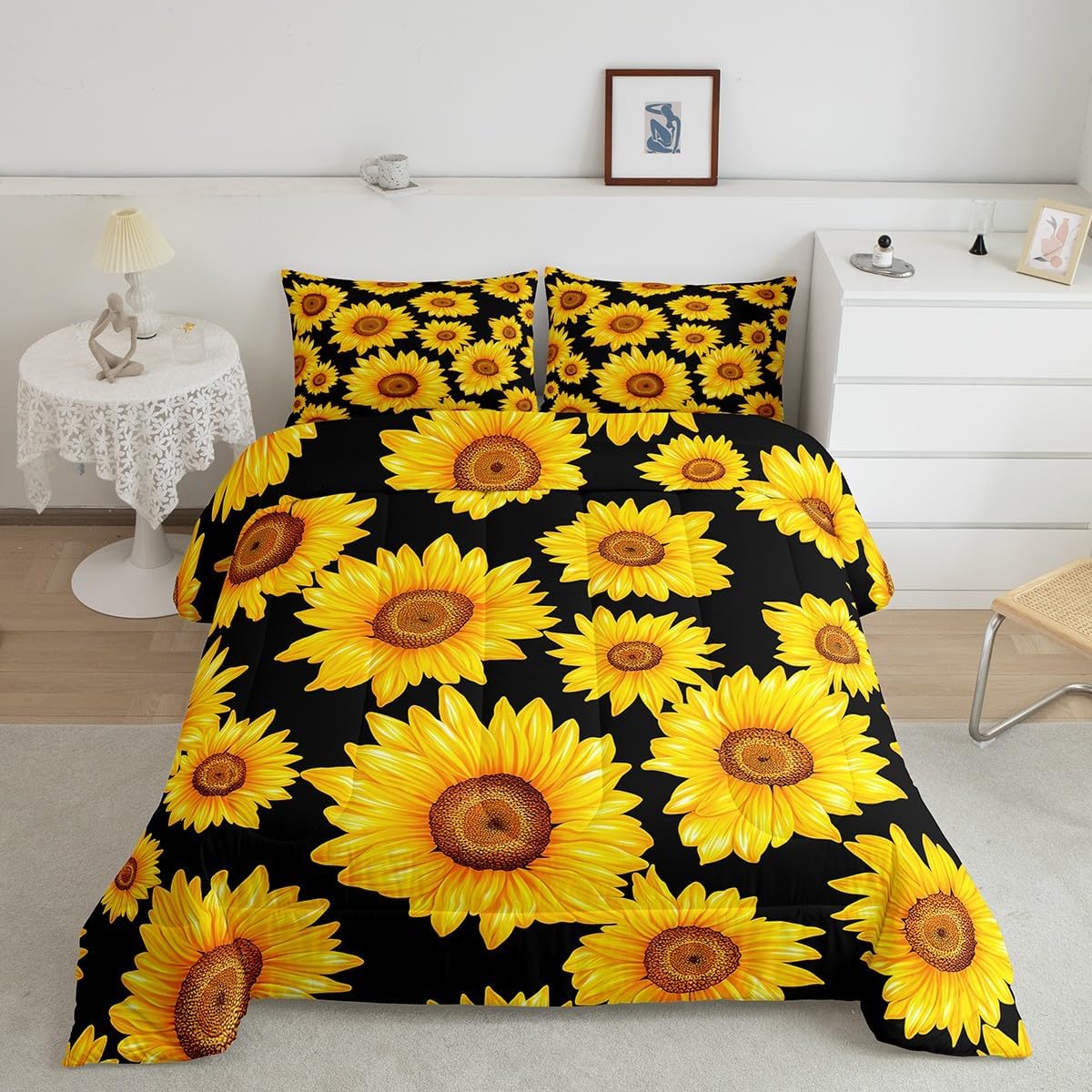 Makeover your bedrooms every season with our comforter sets; good item for your room, girls boys youth room, master bedroom Also a great decoration idea for your mom, dad, sister, brother, grandma, wife, husband, daughter, son and all other beloved Size Information:1 Twin size comforter 68" X 90" and 1 pillowcase 30" X 20"1 Full size comforter 79" X 91" and 2 pillowcases 30" X 20"1 Queen size comforter 90" X 90" and 2 pillowcases 30" X 20"1 King size comforter 104" X 90" and 2 pillowcases 36" X 20"Useful and practical: A practical product for homes, dorm rooms, hotels, guest rooms. Comfortable to use for being polyester which is soft and breathable Unique design:Vivid colors and clear printed with digital printing. These unique designs match well with various color of your rugs, curtains, headboard, furniture, and all other decor accessories Characteristic:As manufacturers of digital printed home textiles, we follow current trends and bring you new home fashion Either a comforter to your family or friend, relative or boyfriend girlfriend, or to yourself, the item should be interesting and authentic Note:The comforter and pillow cases are printed on the front side only, the back of them are white colored