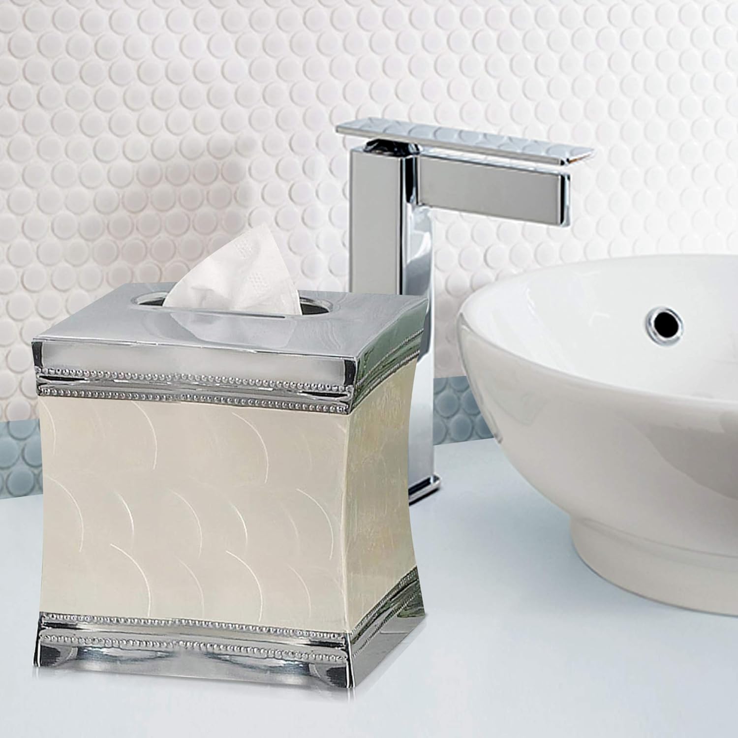Dress up boring, tissue boxes, while adding a decorative touch to your bathroom vanity with the Tissue Box Cover from nu steel. Fits over standard-sized tissue boxes and the open bottom making refilling easy. The opening in the top is large enough to make grabbing tissues easy while tissue boxes. The modern design adds a decorative touch to your decor.