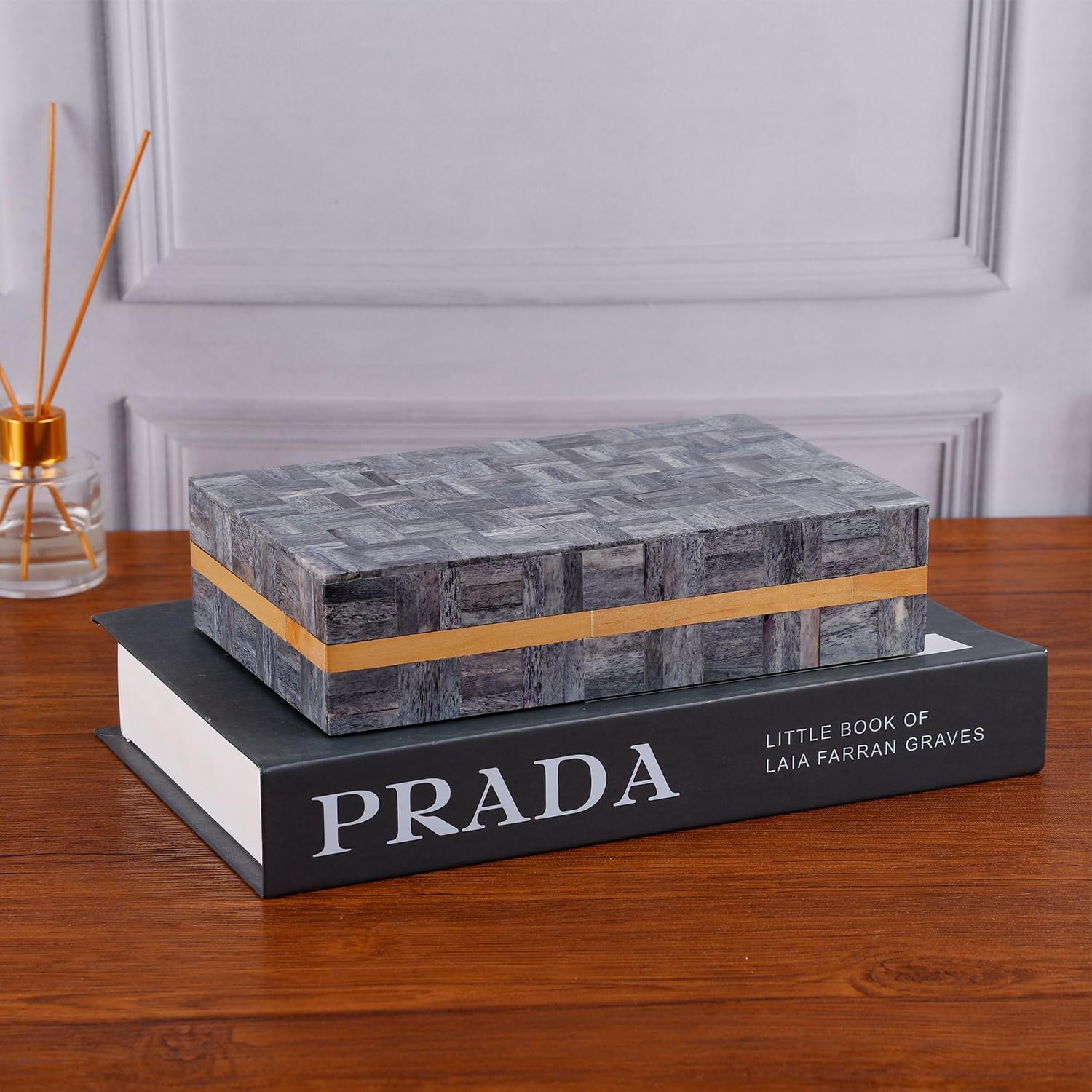 Handicrafts Home Decorative Storage Box - Brick Pattern - Grey Modern Geometric Design – Featuring a sleek, contemporary Brick pattern with clean lines, this handcrafted box adds elegance and style to your coffee table, bookshelf, entryway, or dresser. Multi-Purpose Organizer – Ideal as a jewelry box, memory box, remote holder, trinket box, or photo storage box, keeping your essentials neatly organized while elevating your home decor. Four Convenient Sizes – Available in Large, Medium, Compact, and Small, each box is designed to suit different needs – from storing keepsakes and letters to everyday accessories and small valuables. Decorative Accent Piece – More than just storage, this decorative box with lid doubles as a stylish decor accent for modern, bohemian, vintage, or minimalist interiors. Perfect for coffee table decor or shelf styling. Authentic Artisan Craftsmanship – Designed in the US and handcrafted by skilled Indian artisans, every piece reflects authentic artistry, cultural heritage, and fair-trade values. Product Details: Color/Pattern: Brick (Grey) Material: Bone Inlay & Pine MDF Outer Sizes: 12x8x5, 10x8x4, 9x6x3.5, 8x4x4 inches Inner Size: 9x7x3.5, 9.2x7x3, 8x5x2.5, 7x3.5x3.5 inches Uses: Jewelry Organizer, Keepsake Box, Memory Box, Remote Storage, Coffee Table & Shelf Decor, Mantle Decor, Entryway Decor