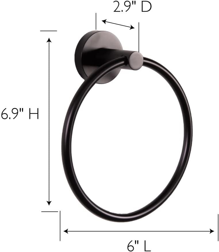 The Design House 582767-BGD Kelton Ring is a contemporary addition to any bathroom. This modern towel ring is constructed with zinc and brass, finished in sleek matte black and measures 6 inches wide. This ring has rounded edges and a sturdy design for hanging medium to larger sized towels. Hang above a toilet, on a door or along a wall. A standard mount and concealed screws are included for easy installation. The Kelton Collection features matching towel bars, a toilet paper holder and robe hook. Complete the look with matte black light fixtures, cabinet pulls, and other accessories. Designed and manufactured by Design House, the trusted source for quality lighting, hardware, plumbing, kitchen, and bath products for every taste and budget.