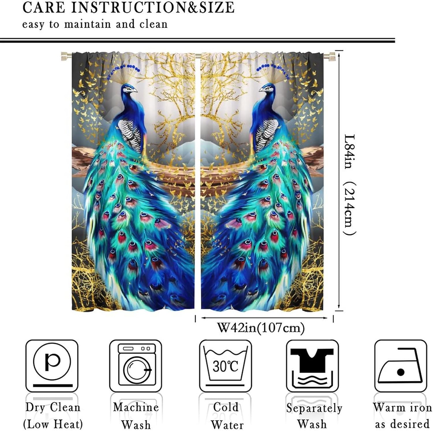 Product descriptionOur curtains liven up your indoor or outdoor spaces with a sense of airiness and beauty.Curtains are an effective and effective way to block unwanted external lights at any time. Blackout curtains provide complete privacy and reduce unnecessary external noise. There are many different styles, sizes and colors to choose from. Suitable for your bedroom, living room, dining room, infant room, kids room, nursery, office, hotel or other public place.Our curtains are perfect for Late sleepers, Shift workers, Seniors, Infants , Students, Computer operators and many more.Material:Polyester high quality fabric curtains, warm and interesting, beautifully designed.Easy to Care:High quality surface treatment can withstand years of use. Machine washable. Mild detergents do not bleach. Low temperature ironing. Don't shave the curtain with sharp things.Kindly Remind:- Don't use sharp things scratching curtains.- For proper fullness panels should measure 1.5-2 times the width of your window.- 24 Hours customer support.- As different computers display colors differently, the color of the actual item may vary slightly from the above images.