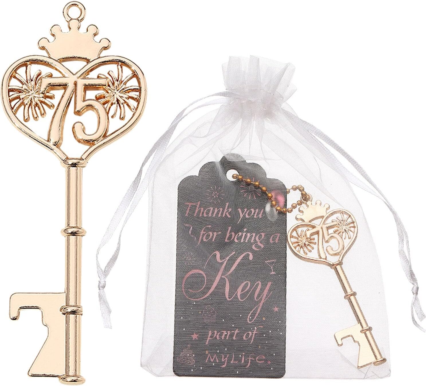 【DIY Thinking 】: The 16th birthday party gift set can fully express your blessings, with a blank design on the back of the card. You can stick stickers on the card or write down what you want to say to friends and guests; Guests who receive DIY gifts will definitely feel your warmth, and your guests will never forget this day. 16th Beer Bottle Openers for 16th Birthday Party Favors or 16th Wedding Anniversary Bottle Openers Souvenirs Decoration for Guests Material:Zinc Alloy Color: Gold Gift Bag Size: 4.0 x 6.0 inches Bottle Opener Size: 3.0 x 1.1 x 0.22 inches Tag Cards Color:Craft Paper. Escort Cards Size: 3.5*2.0inch Package Included: 24 pcs 16th party favors bottle opener Chic design: the 16th bottle opener adopts a golden appearance and fireworks design, which can present a chic and vintage style, when you use it at the party, it just shines at the corner, adding more charm for the party Why Choose Our Key Bottle Opener for Your Birthday Party Favor/Decoration Supplies? 1:Unique design,Durable, thickened material, not easy to rust and deform after long-term use. 2:The handle is ergonomic, comfortable and smooth to hold, and easy to operate, easy to carry. 3:DIY Tag Cards: You can write what you want in the blank space on the card .