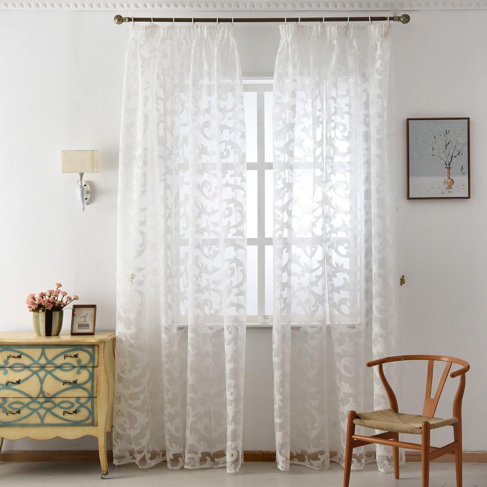 Jacquard design polyester curtain. let the daylight through. Organza sheer fabrics.
