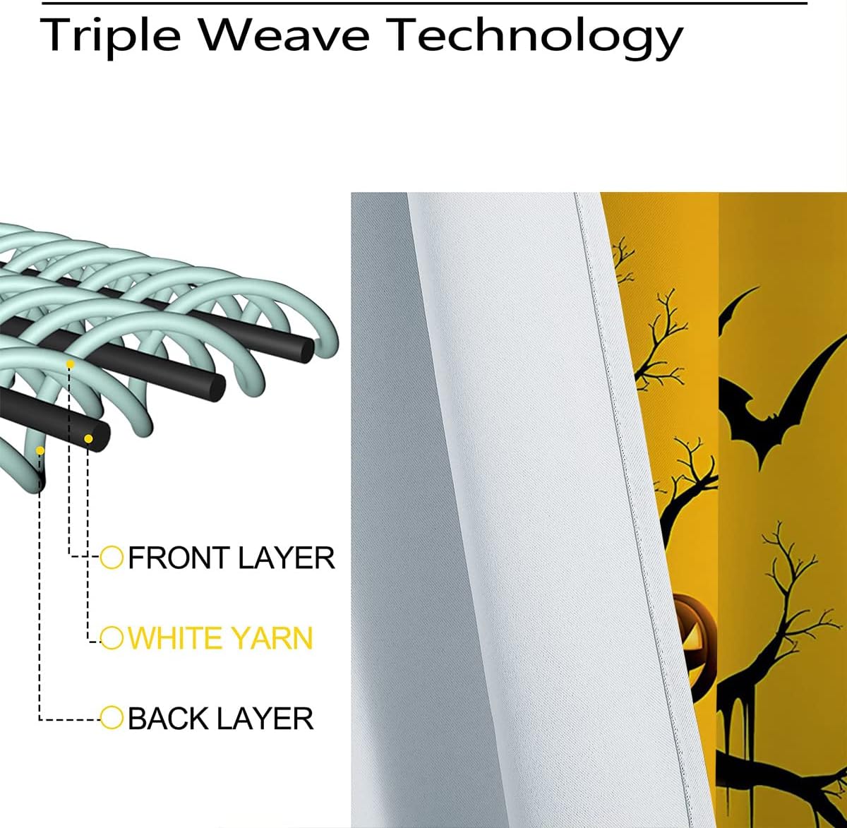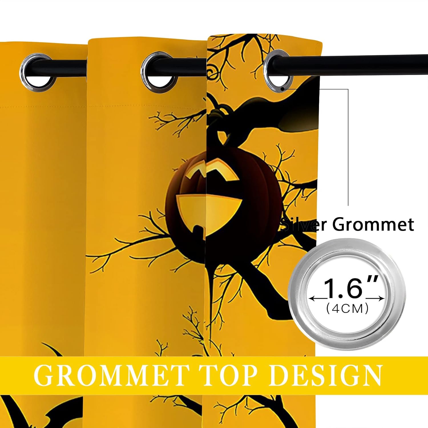 These print curtains are perfect for Living room, bedroom, kids room, kitchen, yard, patio, parlor, sliding door with Halloween,Pumpkin Bats Party Ghost Cute Forest Orange pattern.- Unique design:· Save energy costs by insulating against heat and cold.· Reduce noises from busy streets and high-traffic areas.· Protect furniture from sun damage and fading.· Provides complete privacy when needed· Perfect for any bedroom, office kids room and living room.- Package Included:· Blackout window curtains 2 Pcs set ( two panels).- Material:· Our Blackout Curtain Liners are crafted from a durable soft and thick triple weaved blackout fabric which can block out sunlight and UV rays. The darker color of the fabric, the more light it can block.- Easy Care Instructions:· Machine washable in cold water· Do not bleach.· tumble dry on low· low temperature ironing- Notes:· For your curtains to be more perfect, please choose a size 5-10 Inch larger than the actual window width.· here may be slight differences in colors on different displays. If you have any questions about the product, please feel free to contact us.