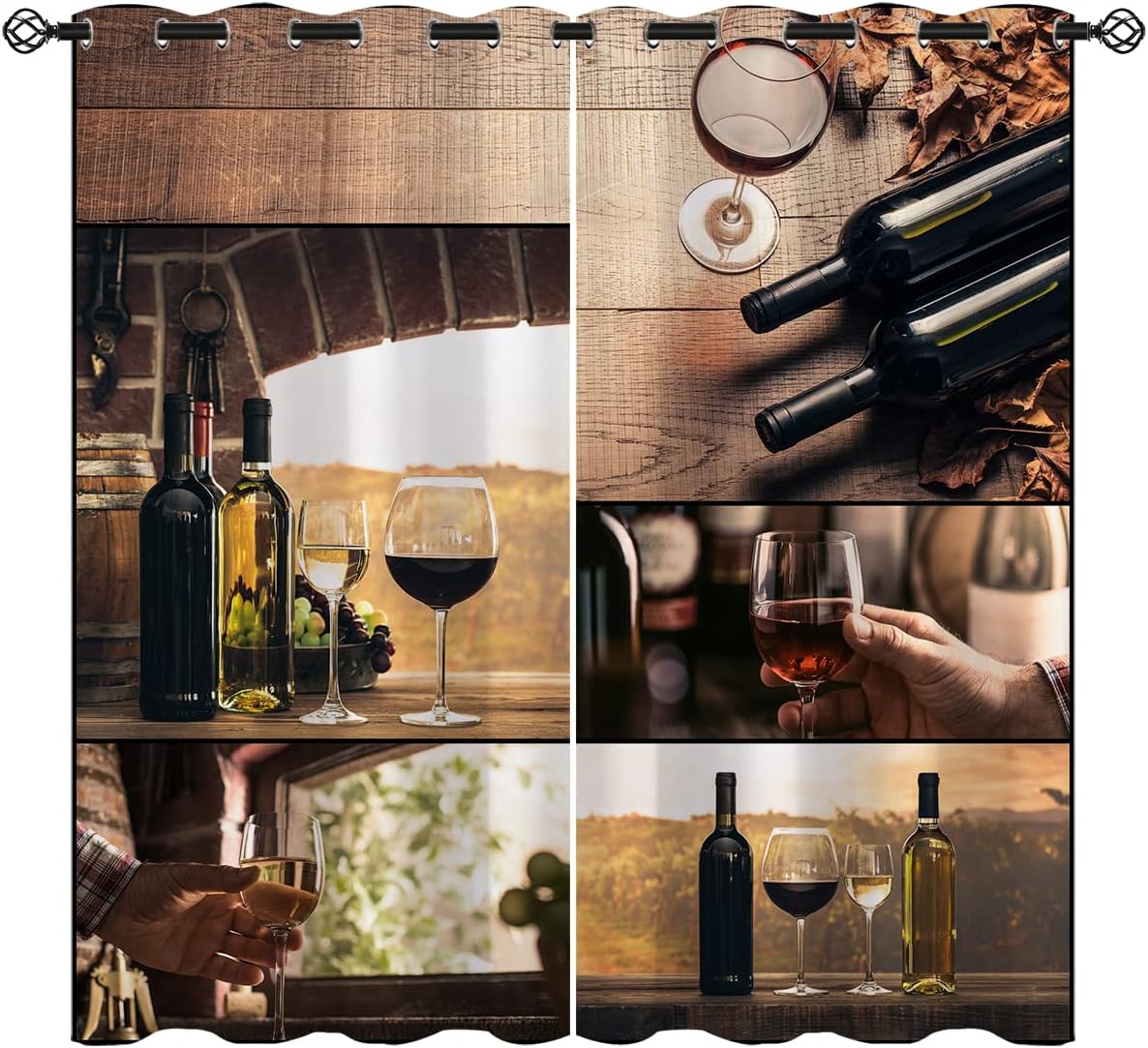 These print curtains are perfect for Living room, bedroom, kids room, kitchen, yard, patio, parlor, sliding door with Wine, Romantic Grapes French Red White Wine pattern.- Unique design:· Save energy costs by insulating against heat and cold.· Reduce noises from busy streets and high-traffic areas.· Protect furniture from sun damage and fading.· Provides complete privacy when needed· Perfect for any bedroom, office kids room and living room.- Package Included:· Blackout window curtains 2 Pcs set ( two panels).- Material:· Our Blackout Curtain Liners are crafted from a Long lasting soft and thick triple weaved blackout fabric which can block out sunlight and UV rays. The darker color of the fabric, the more light it can block.- Easy Care Instructions:· Machine washable in cold water· Do not bleach.· tumble dry on low· low temperature ironing- Notes:· For your curtains to be more perfect, please choose a size 5-10 Inch larger than the actual window width.· here may be slight differences in colors on different displays.