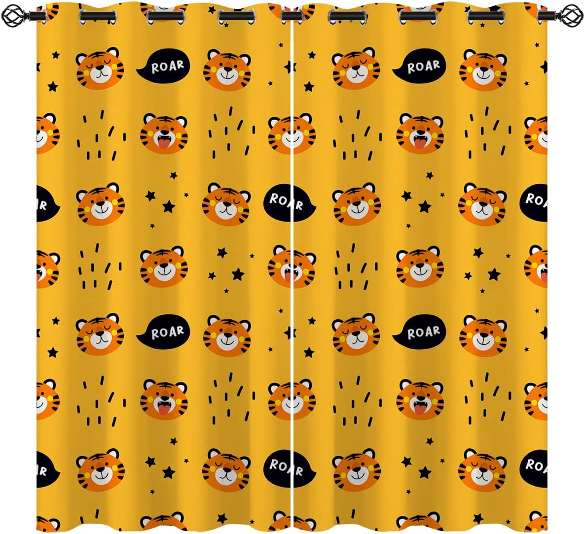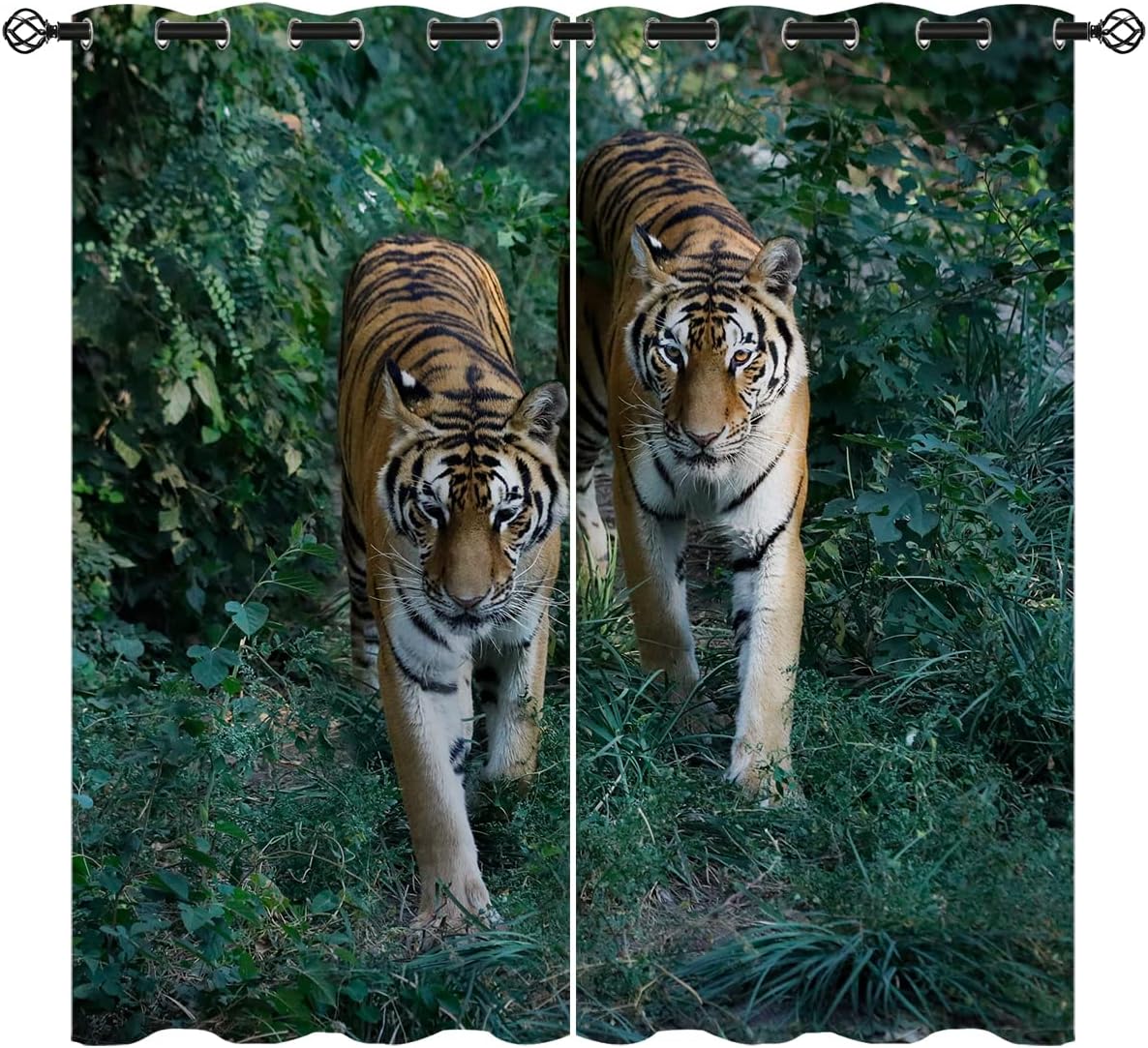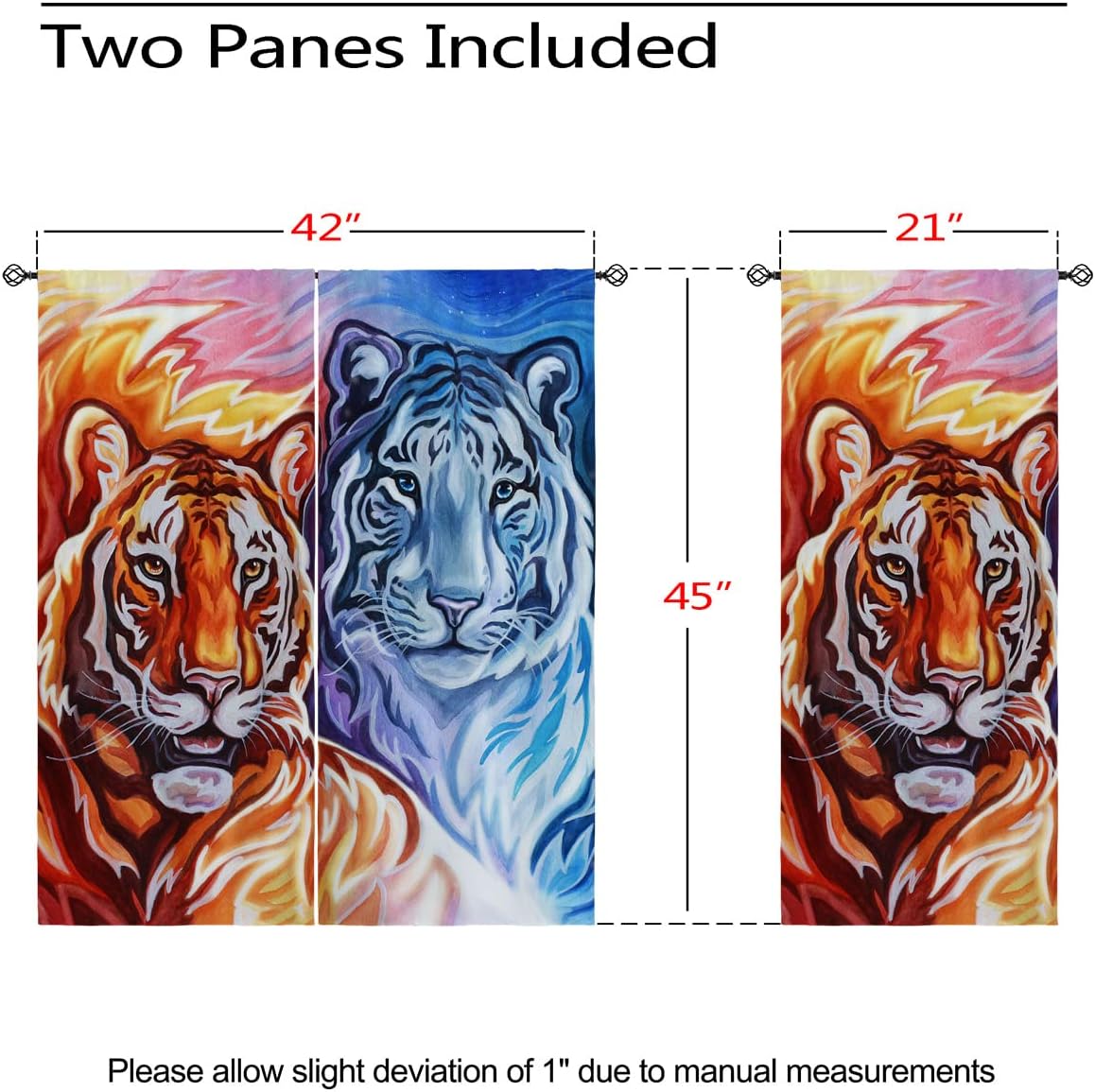 These print curtains are perfect for Living room, bedroom, kids room, kitchen, yard, patio, parlor, sliding door with Tiger, Watercolor Animal Fire Ice Cool Tigers pattern.- Unique design:· Save energy costs by insulating against heat and cold.· Reduce noises from busy streets and high-traffic areas.· Protect furniture from sun damage and fading.· Provides complete privacy when needed· Perfect for any bedroom, office kids room and living room.- Package Included:· Blackout window curtains 2 Pcs set ( two panels).- Material:· Our Blackout Curtain Liners are crafted from a Long lasting soft and thick triple weaved blackout fabric which can block out sunlight and UV rays. The darker color of the fabric, the more light it can block.- Easy Care Instructions:· Machine washable in cold water· Do not bleach.· tumble dry on low· low temperature ironing- Notes:· For your curtains to be more perfect, please choose a size 5-10 Inch larger than the actual window width.· here may be slight differences in colors on different displays.