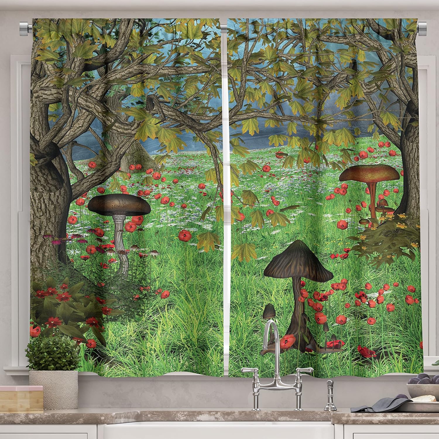 Show off your personality and create a statement with your kitchen decor! Kitchen window curtains serve a variety of functions. They add to the room's visual appeal, increase privacy, and screen natural light. The best technique to keep light from shining off your glass while working in the kitchen is to use drapes that match your decor with good quality. Choose the one that suits your windows with thousands of different color and pattern options. Add more fun with printed window treatments instead of making your home more oppressive and monotonous with plain curtains. The kitchen curtain print transforms your space while still offering the privacy you desire. You can use it as a kitchen curtain, as well as a bathroom curtain for tiny windows or a bedroom curtain. It is possible to create elegance in every part of your home. It maintains the same beauty with its 100% polyester structure. Impactful stitching and a contemporary graphic design distinguish this printed kitchen curtain fabric. Whether used as a dramatic decorative cloth or for beautifying your room, it serves as a multicolored highlight for all of your interior design ideas. You can wash it in a cold delicate cycle and save time. You can have the same elegance in your homes for years. Be stylish, and reflect your character with your curtains!Due to manual measurement, please kindly allow 1-2 cm discrepancy. The digital images we display have the most accurate color possible, however due to differences in computer monitors, we cannot be responsible for variations in color between the actual product and your screen. No hardware is included.