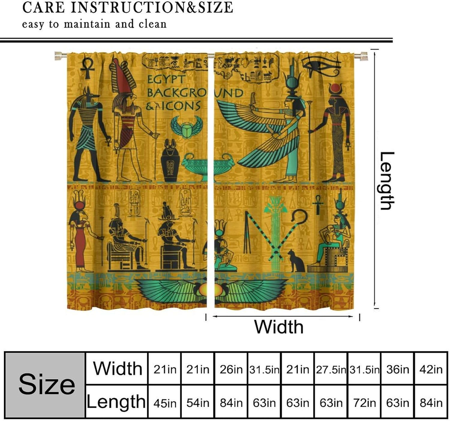 "Package included:2 panels per package. Size:One panel measures 21" (W) x 45" (L). The overall size is 42"(W) x 45"(L). About the material: Made of fiber polyester fabric.Soft touch feeling.Silky and delicate, durable, anti-wrinkle, no ball.Thick, elegant, upmarket.Good Workmanship.No loose threads. HD Printing Technology: Clear and Premier Printing.Toxic free and safe.Fade resistance. About the function: With privacy protection, decoration, and as a room divider, it is very suitable for the privacy of children's bedrooms, living rooms, and nursery rooms.Block most sunlight, ultraviolet rays, and street lights to ensure a good sleep or work in the dark when needed. Our service: We focus on customer satisfaction. If you have any questions or problems, please contact us by email."