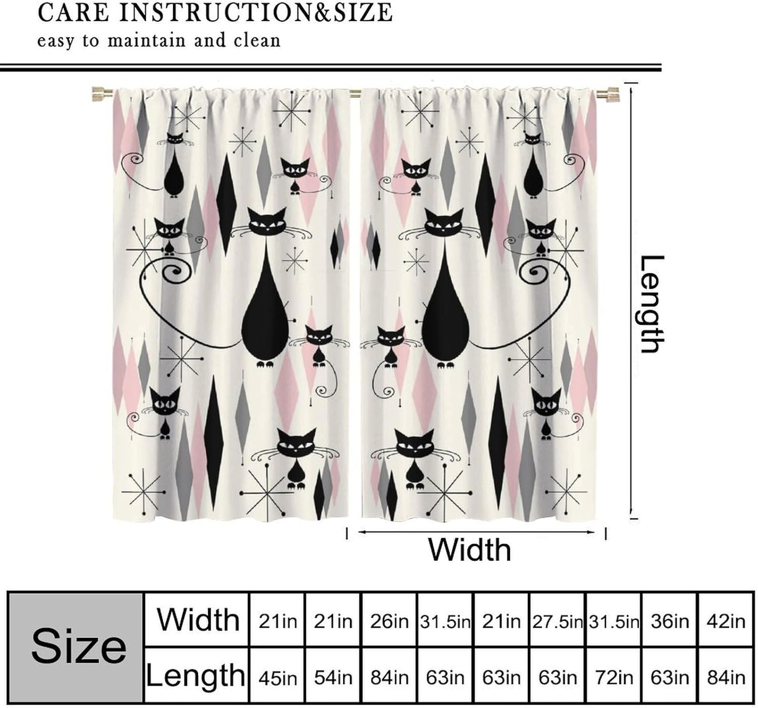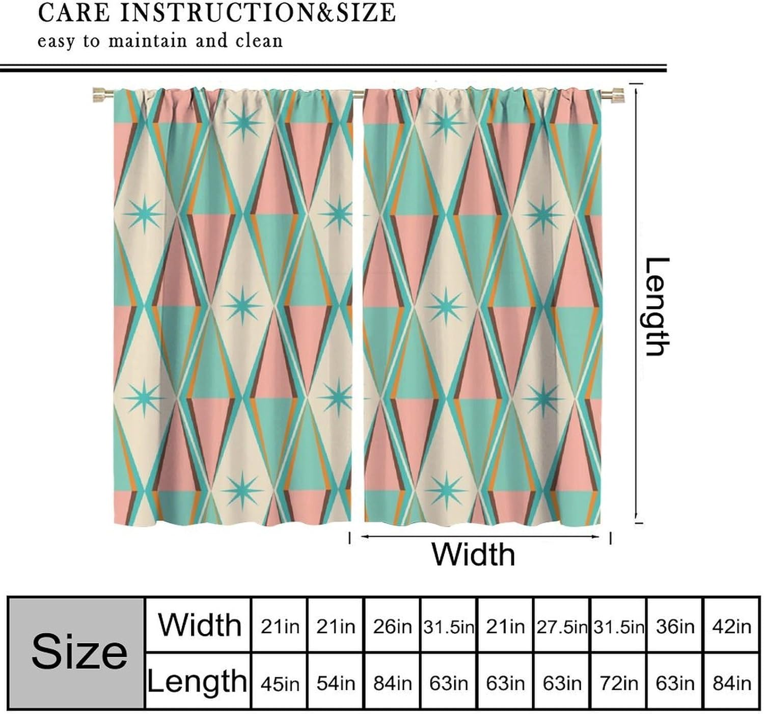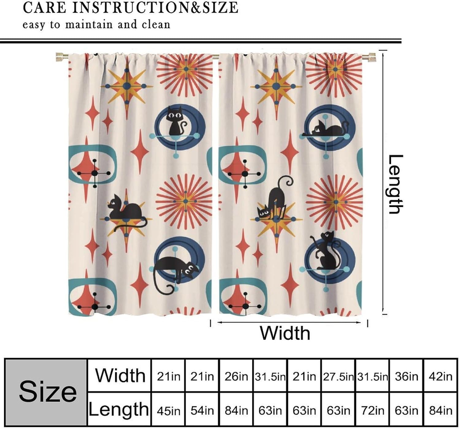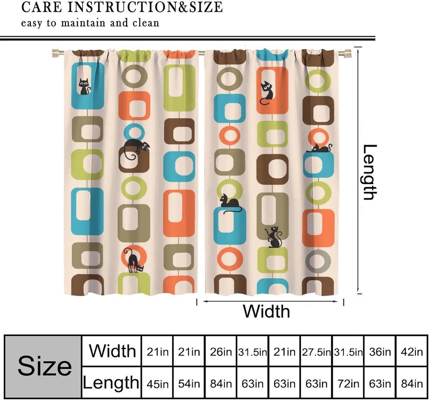 Curtains are suitable for living room, bedroom, kitchen, children's room, office, caravan. It is also suitable for all types of people of all ages.Easy to install, durable, washable, not easy to fade, beautiful home decoration.Please keep sharp objects away from curtains.There will be a small range of size error and color difference Please forgive .Please pick the size you need, please be careful not to pick the wrong size.I hope you will like my products, best wishes!