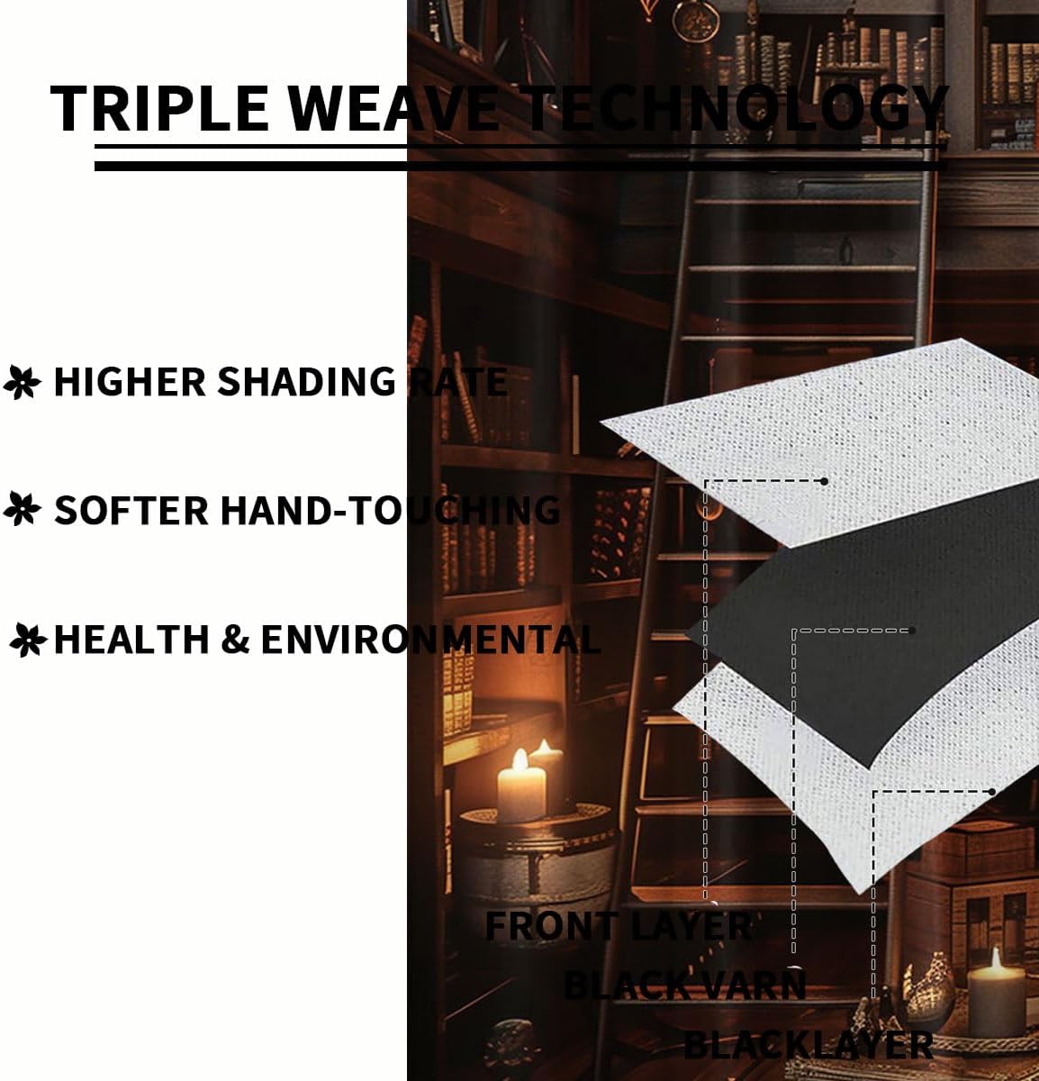 These print curtains are perfect for Living room, bedroom, kids room, kitchen, yard, patio, parlor, sliding door with Vintage Bookshelf Bookcase, Old Retro Library pattern.- Unique design:· Save energy costs by insulating against heat and cold.· Reduce noises from busy streets and high-traffic areas.· Protect furniture from sun damage and fading.· Provides complete privacy when needed· Perfect for any bedroom, office kids room and living room.- Package Included:· Blackout window curtains 2 Pcs set ( two panels).- Material:· Our Blackout Curtain Liners are crafted from a long lasting soft and thick triple weaved blackout fabric which can block out sunlight and UV rays. The darker color of the fabric, the more light it can block.- Easy Care Instructions:· Machine washable in cold water· Do not bleach.· tumble dry on low· low temperature ironing- Notes:· For your curtains to be more perfect, please choose a size 5-10 Inch larger than the actual window width.· here may be slight differences in colors on different displays.